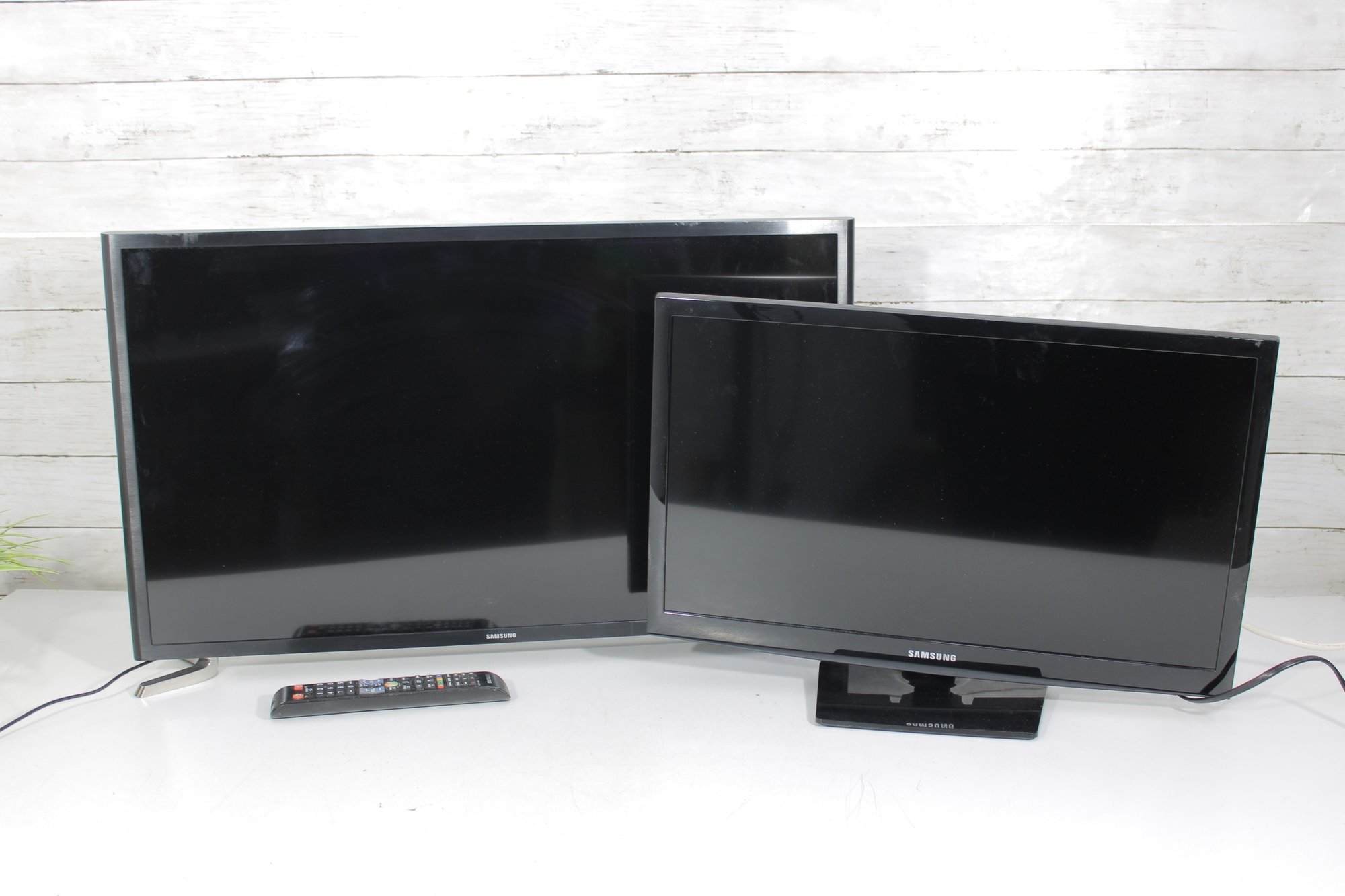 Both units feature slim profiles and tabletop stands. A single remote control is included (works with one unit). TVs offer standard input options for connecting cable boxes, streaming devices, gaming consoles, and more.
