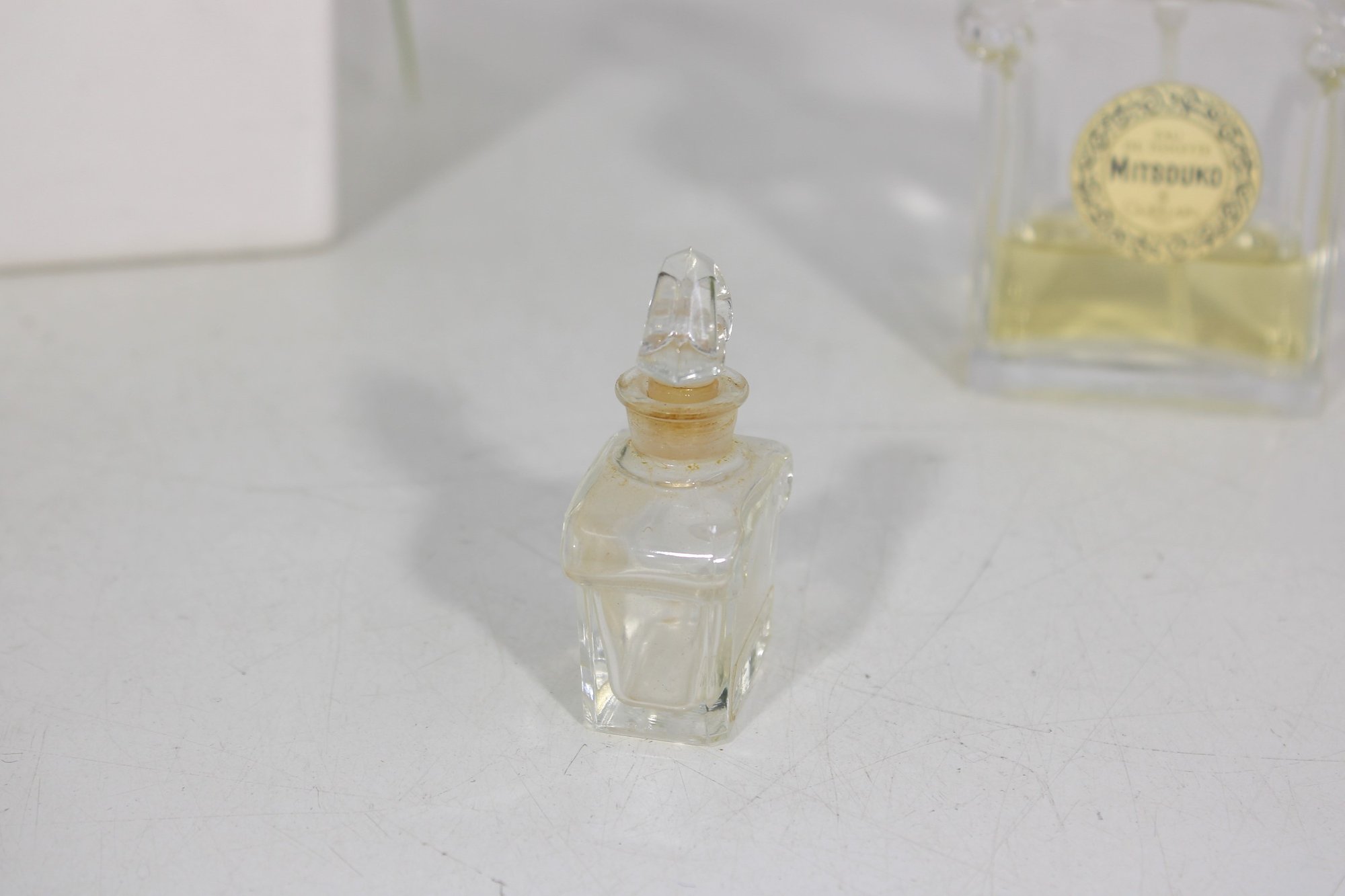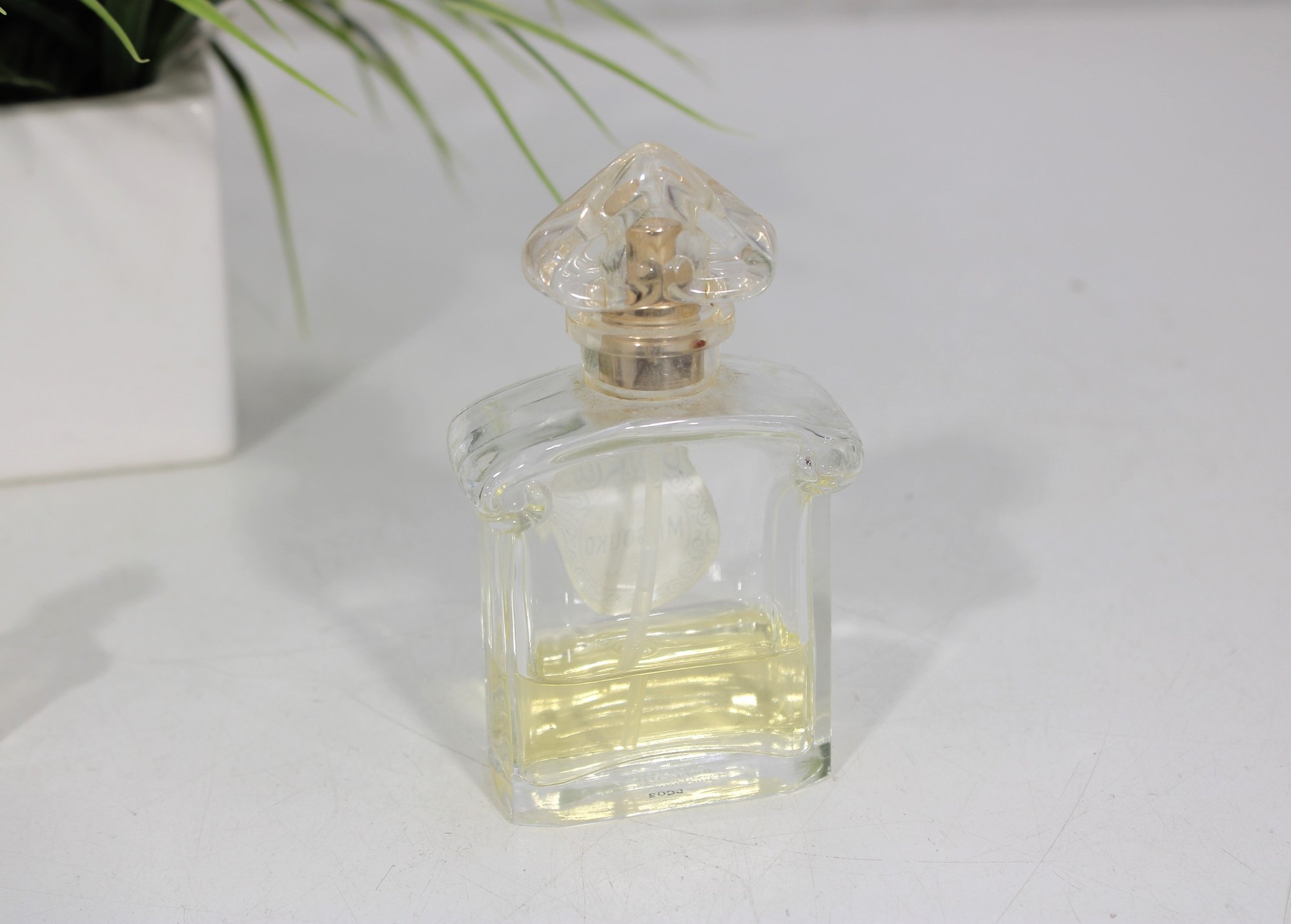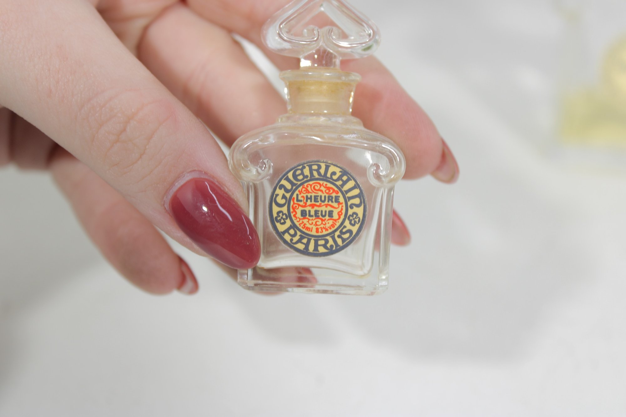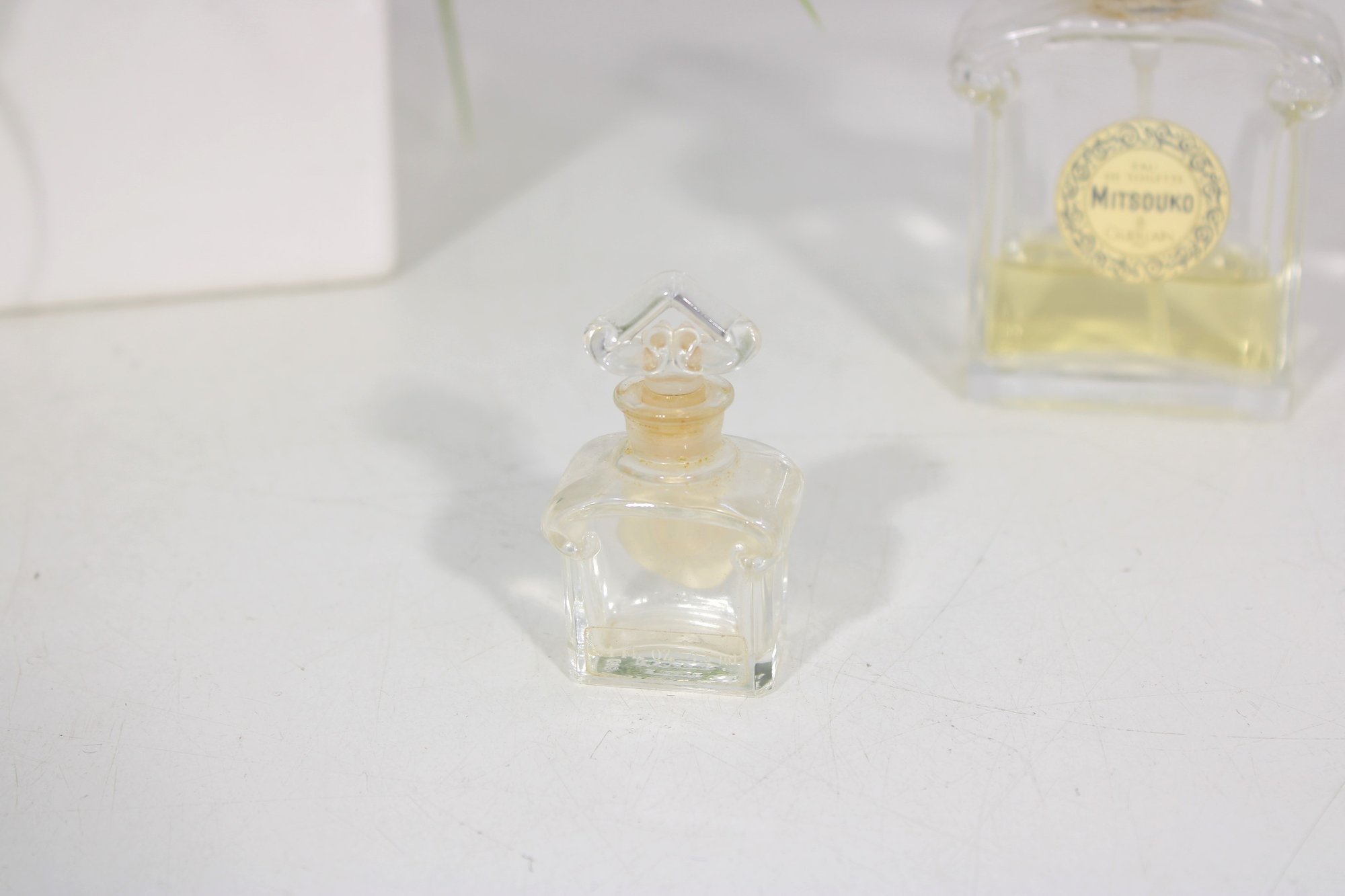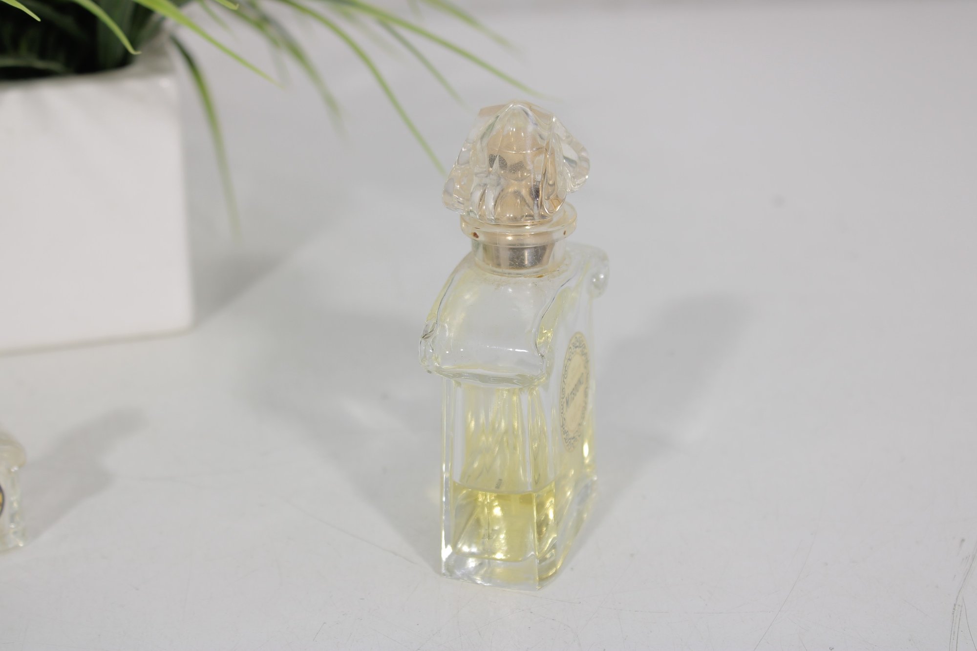 Both bottles are in nice vintage condition with light wear consistent with age. The L’Heure Bleue bottle is empty. The Mitsouko bottle retains approximately 25% of the original fragrance. Please review all photos carefully as they are part of the description and show fill levels and condition.