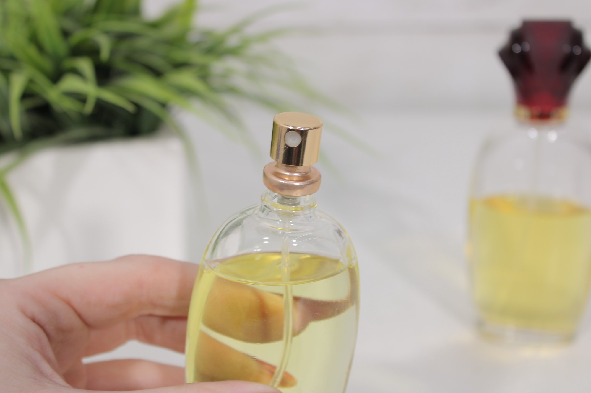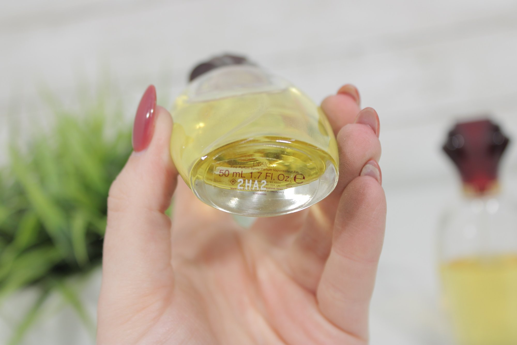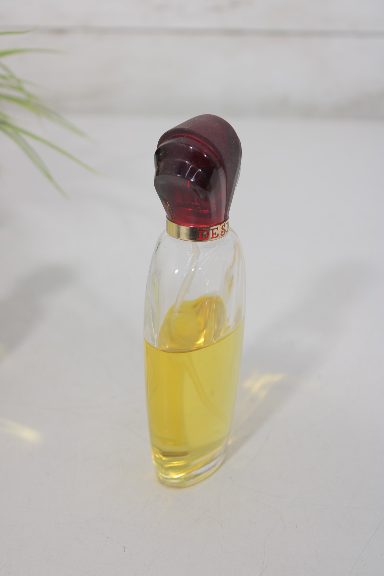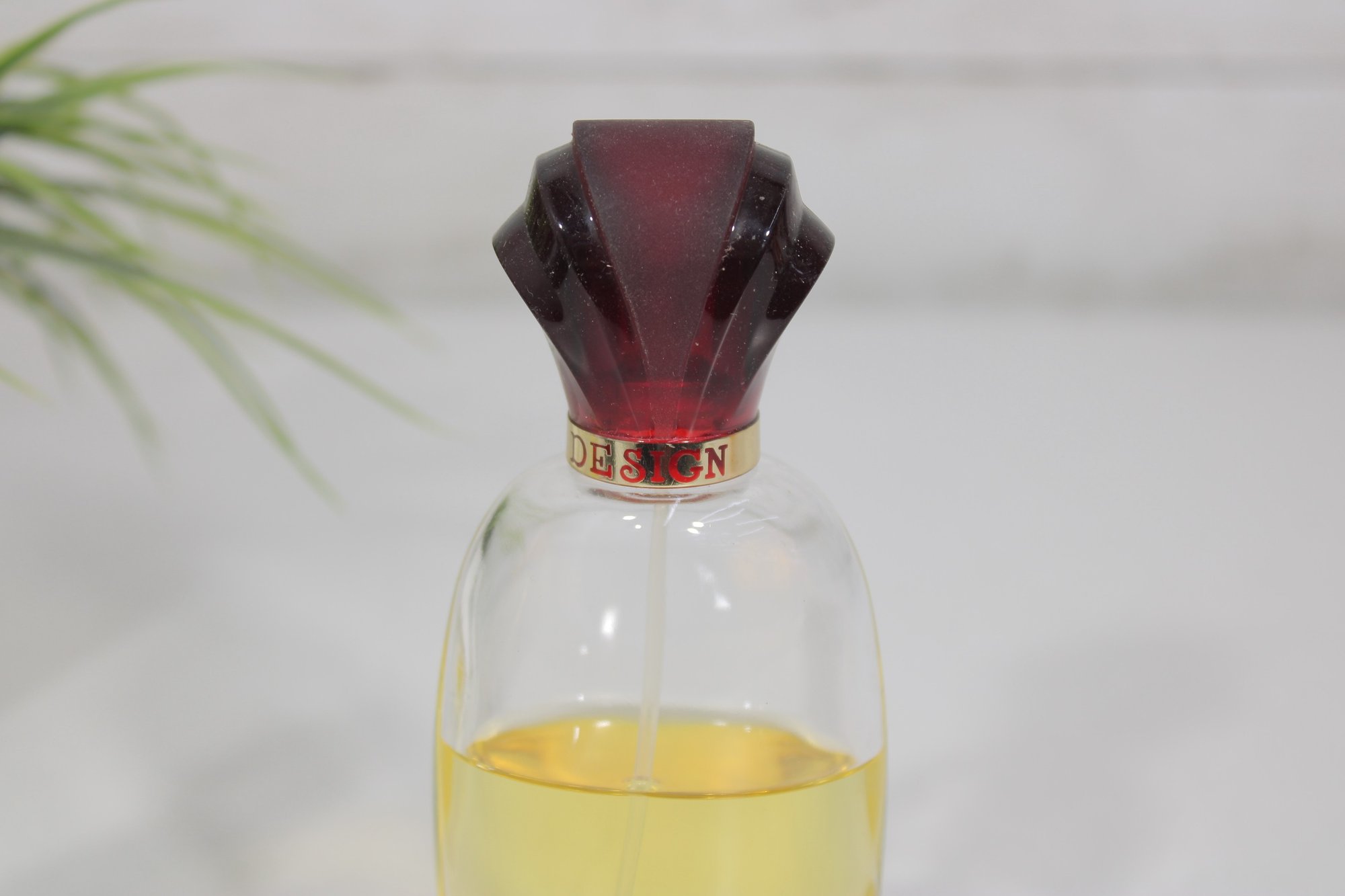 These classic women’s fragrances feature the iconic oval glass bottles with distinctive deep burgundy sculpted caps and gold-tone neck bands marked “DESIGN.”