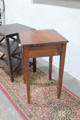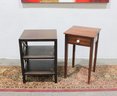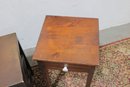 Lot of two wooden accent tables, perfect for use as end tables, bedside tables, or small storage stands. Each piece features a different design, offering versatile functionality for a living room, bedroom, or office space.