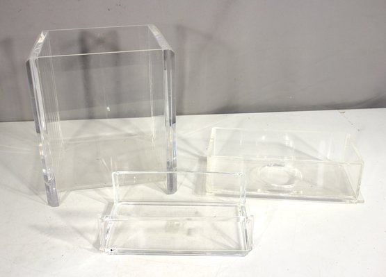 Lot Of 3 Acrylic Tissue Holder & Waste Basket And Napkin Holder - Modern Minimalist