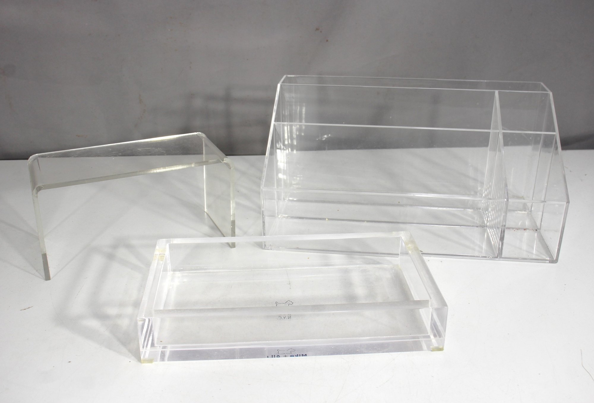 Lot Of 3 Clear Acrylic Display Stands Retail Riser, Tray & Organizer Bin
