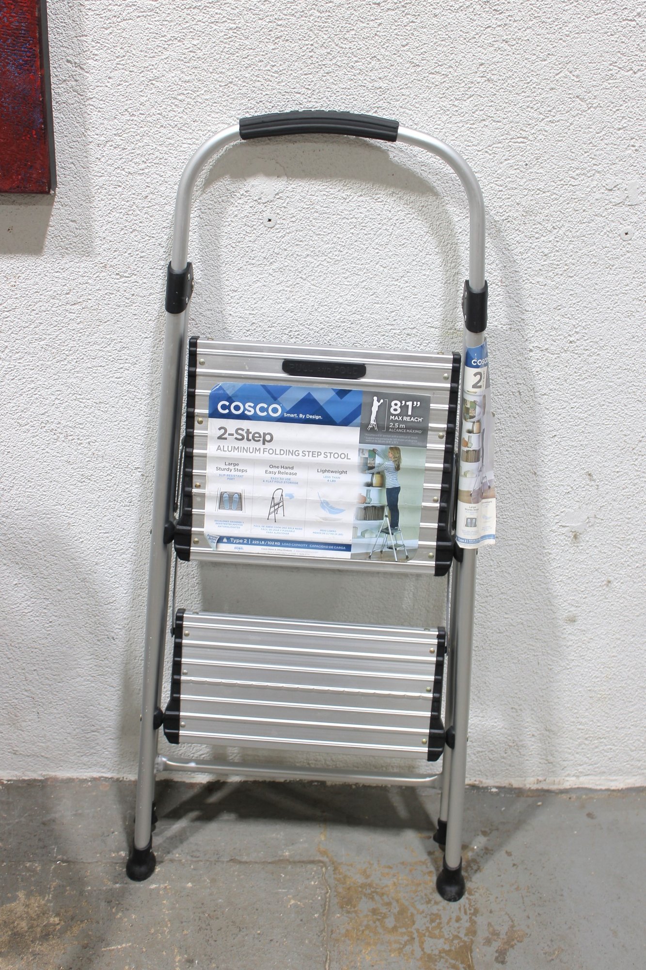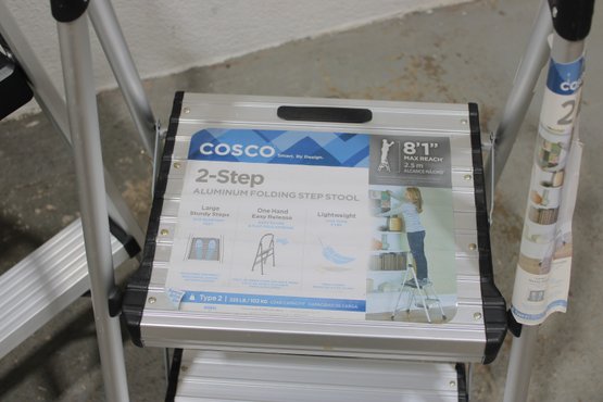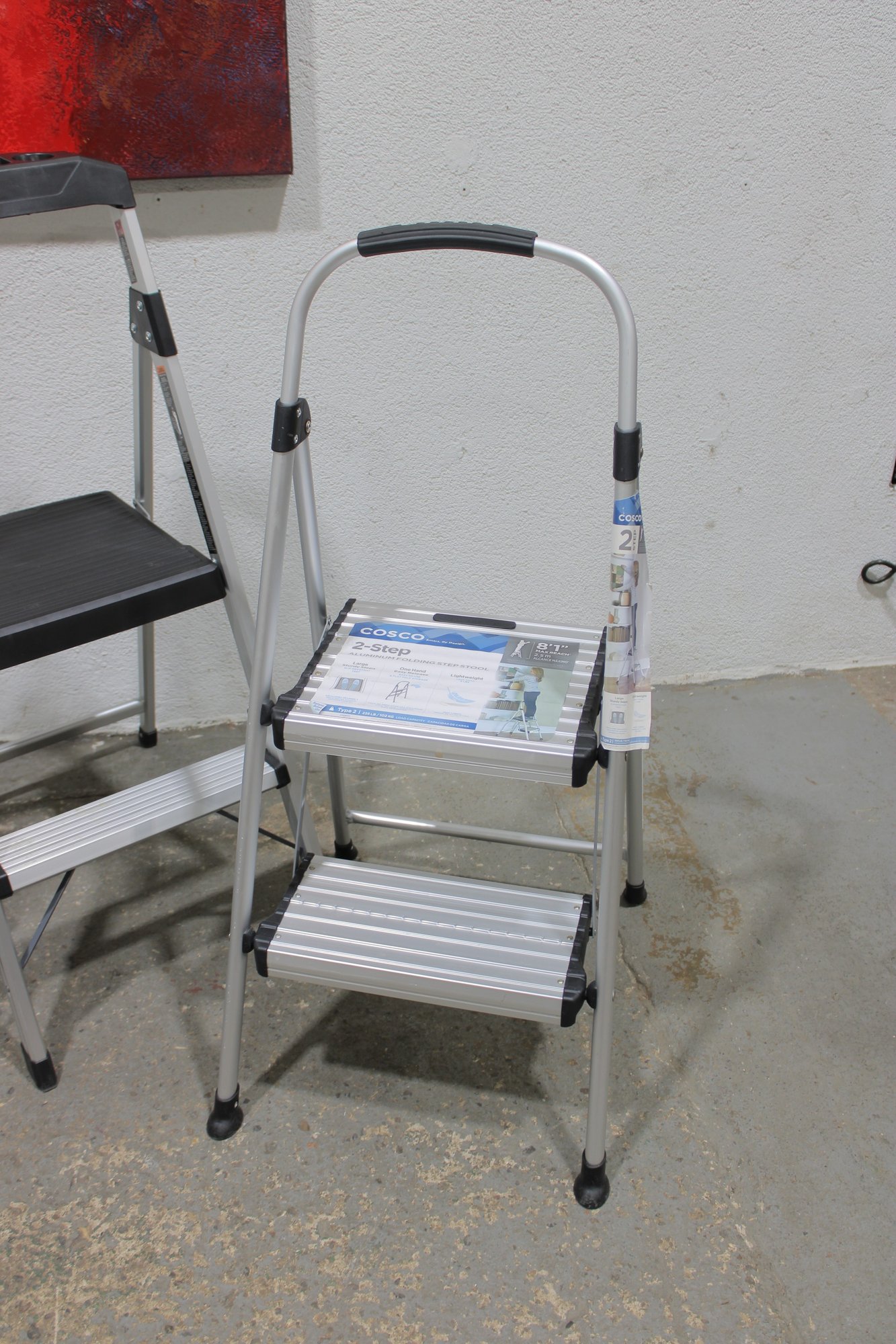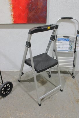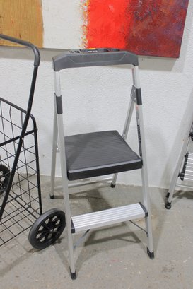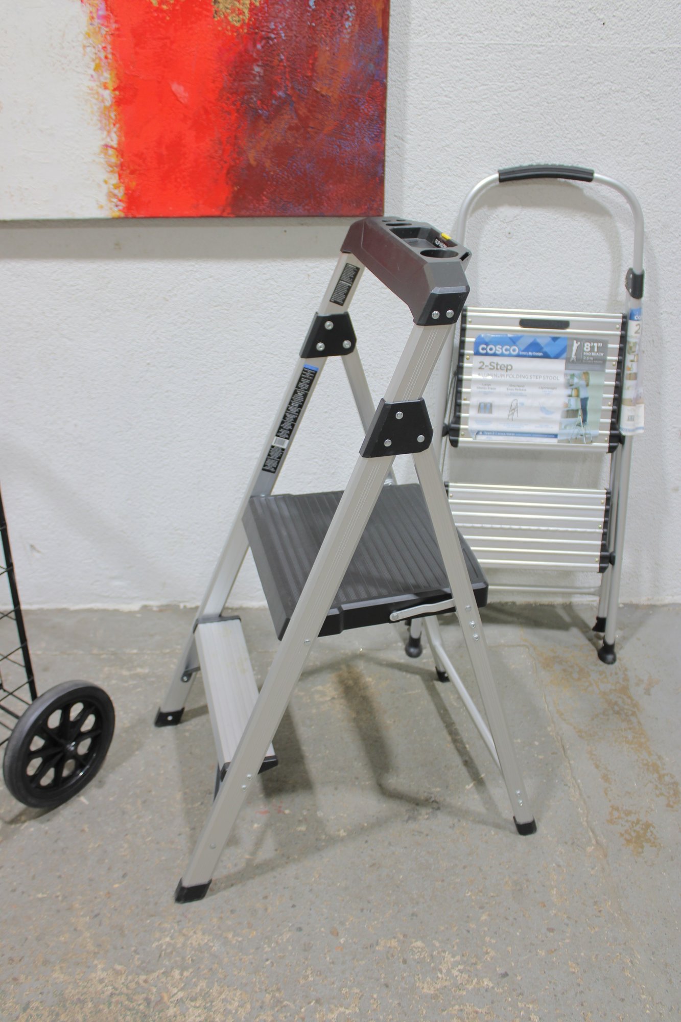 Lot Of 3 Utility Items Rolling Cart, Step Ladder & Folding Step Stool