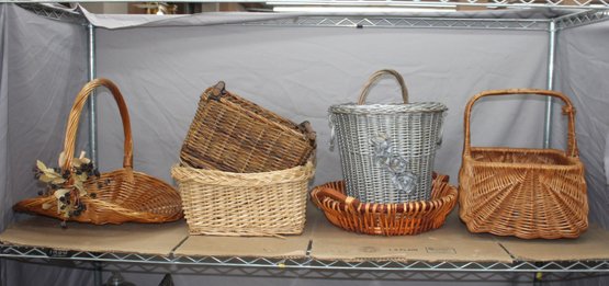 Lot Of 6 Assorted Woven & Decorative Baskets Various Shapes & Sizes