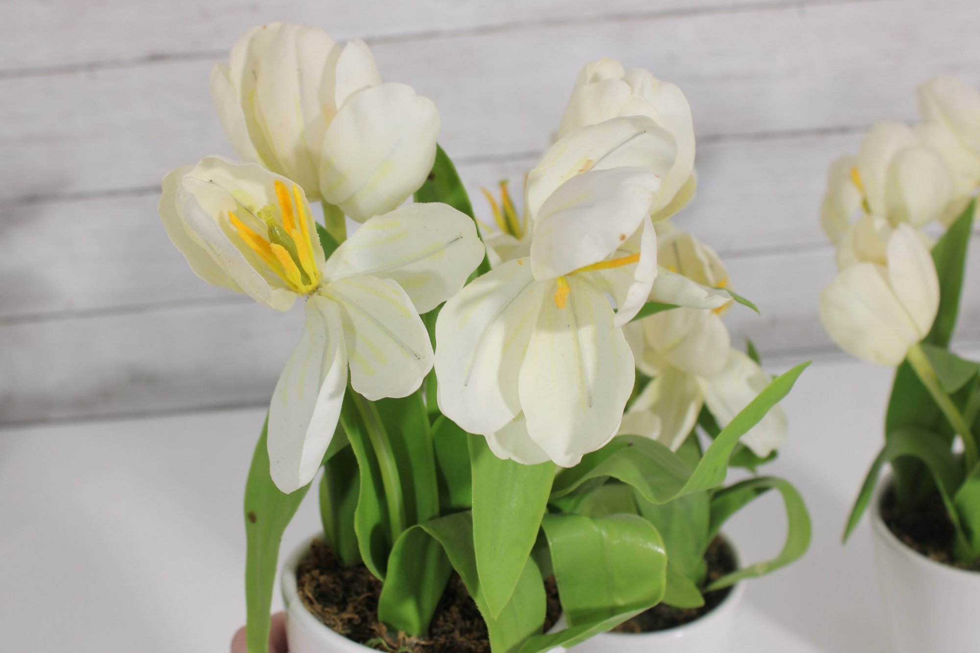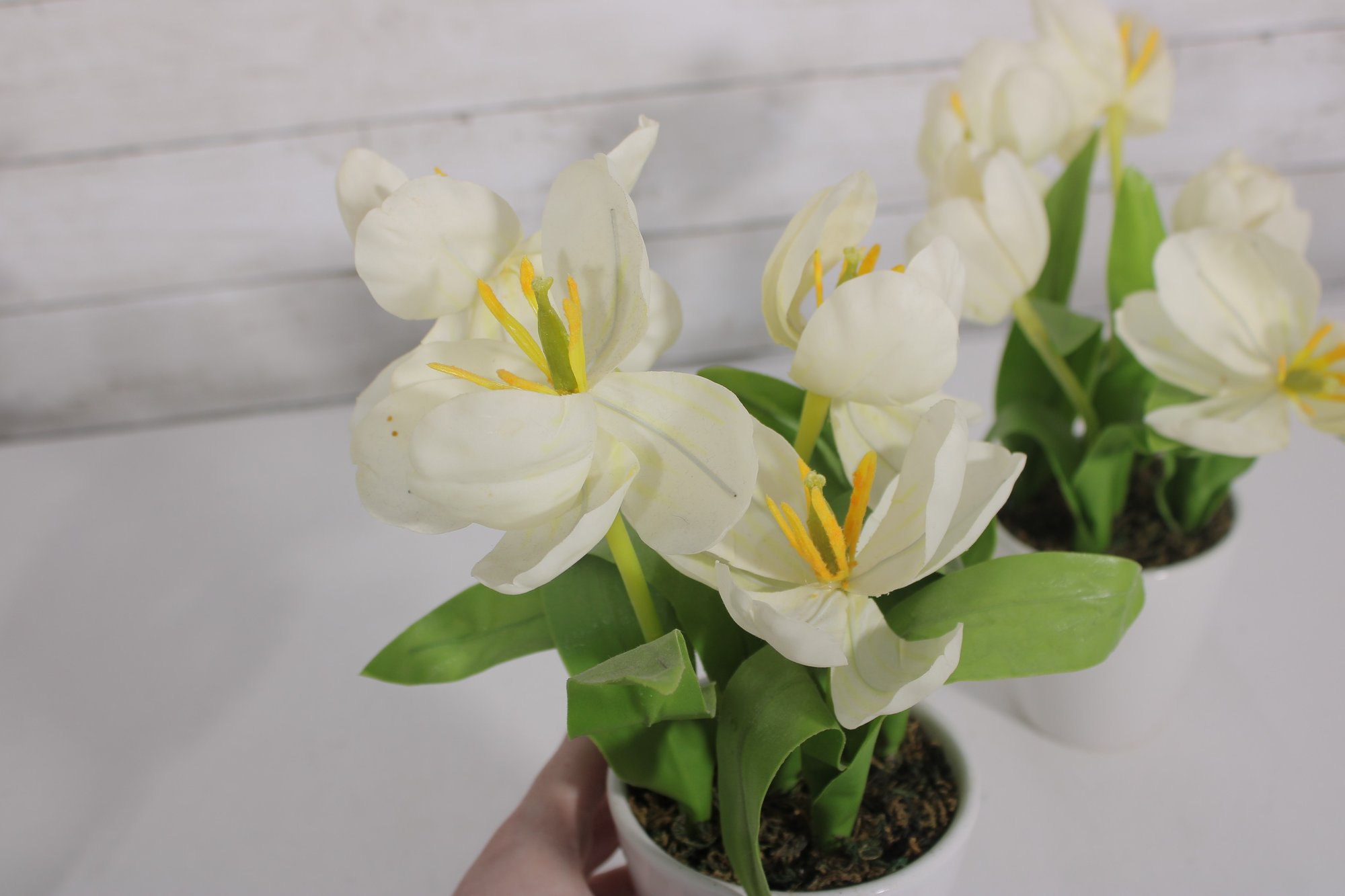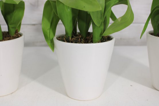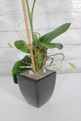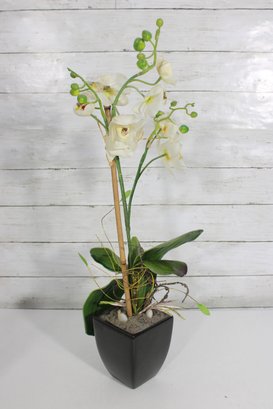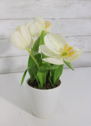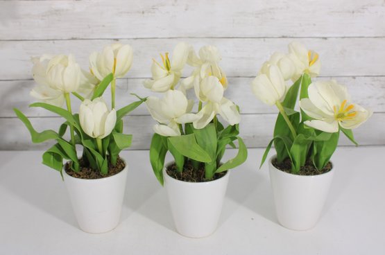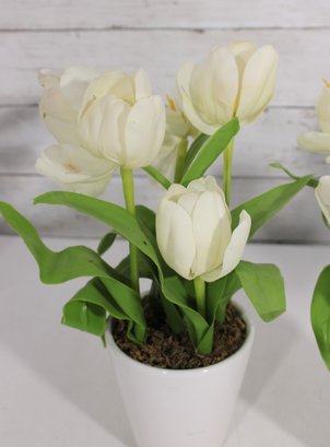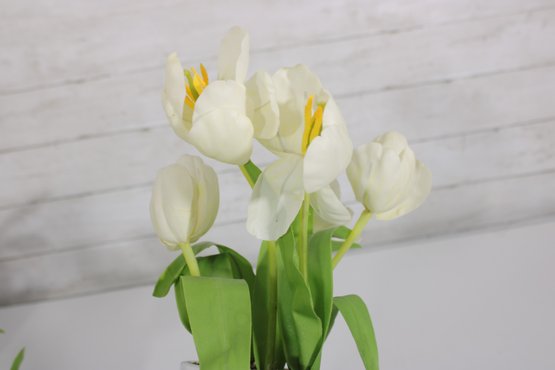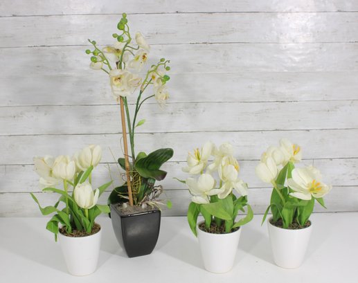Lot Of Artificial Flower Arrangements White Tulips & Orchid In Decorative Pots Home Dcor