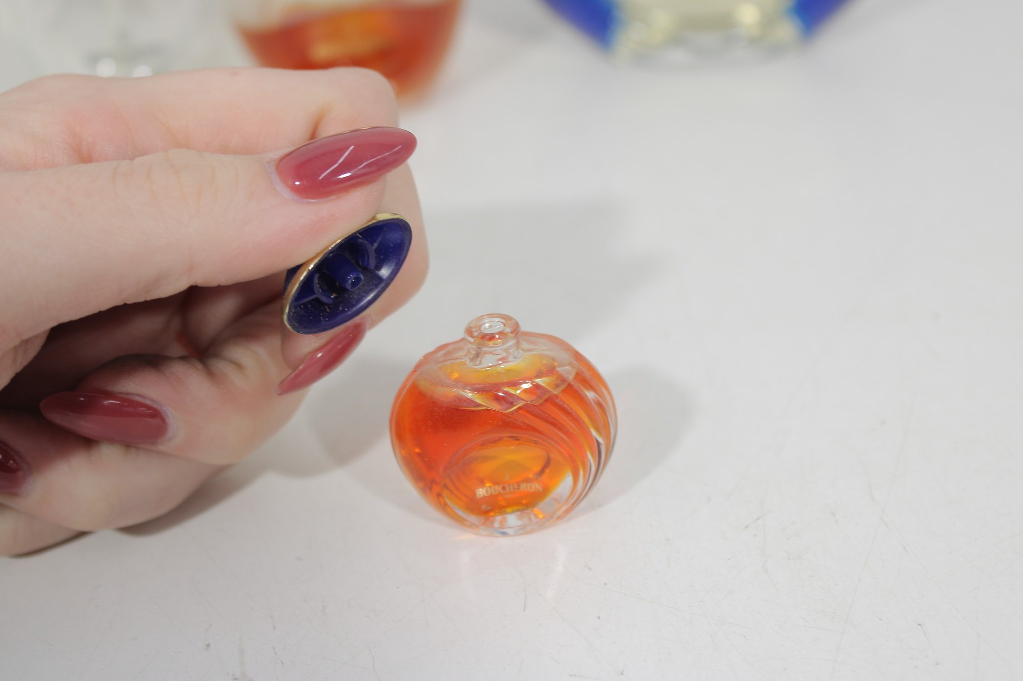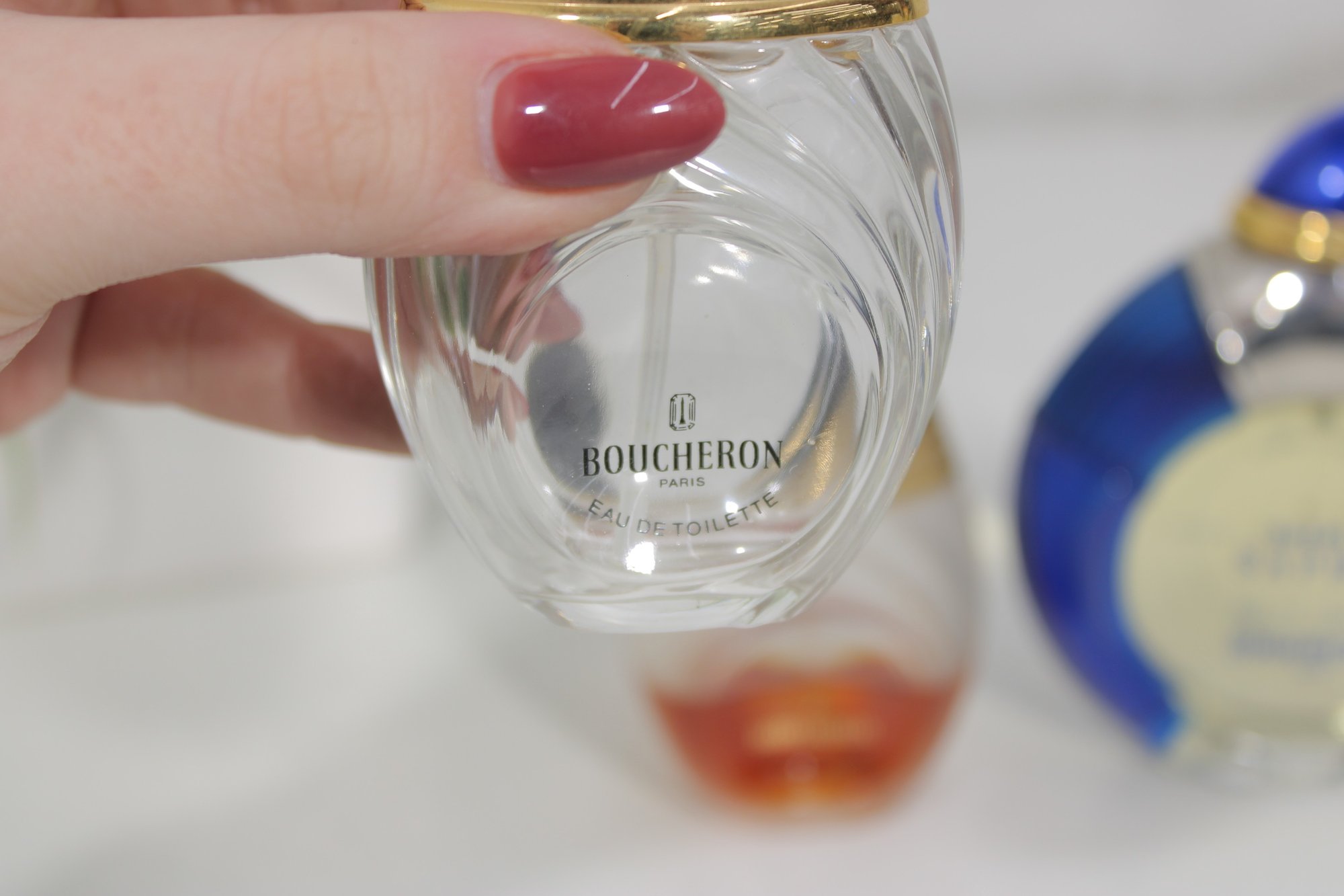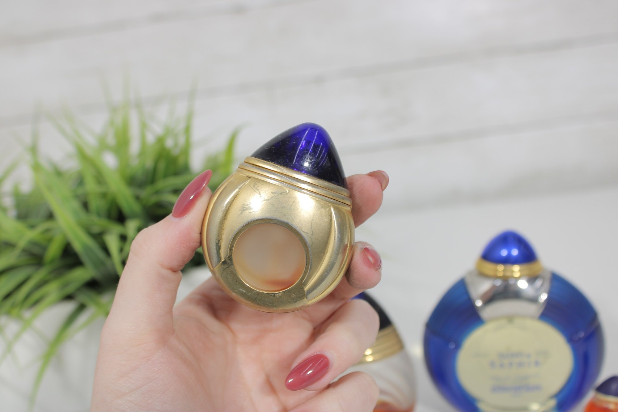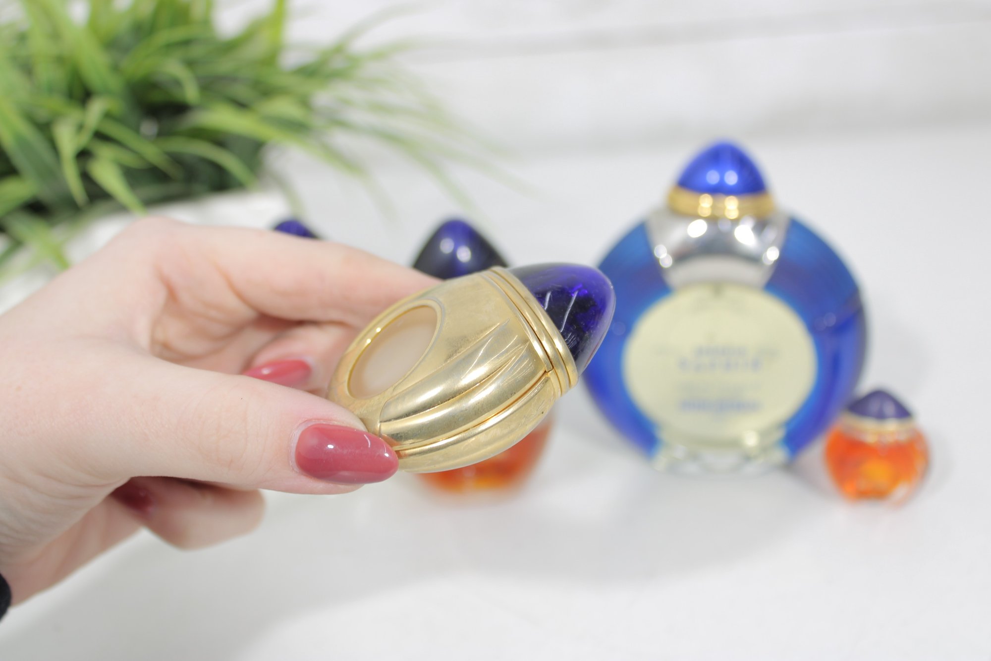 This grouping features the distinctive Jaipur Saphir design with deep blue caps and gold-tone accents, along with the signature round blue fluted bottle.