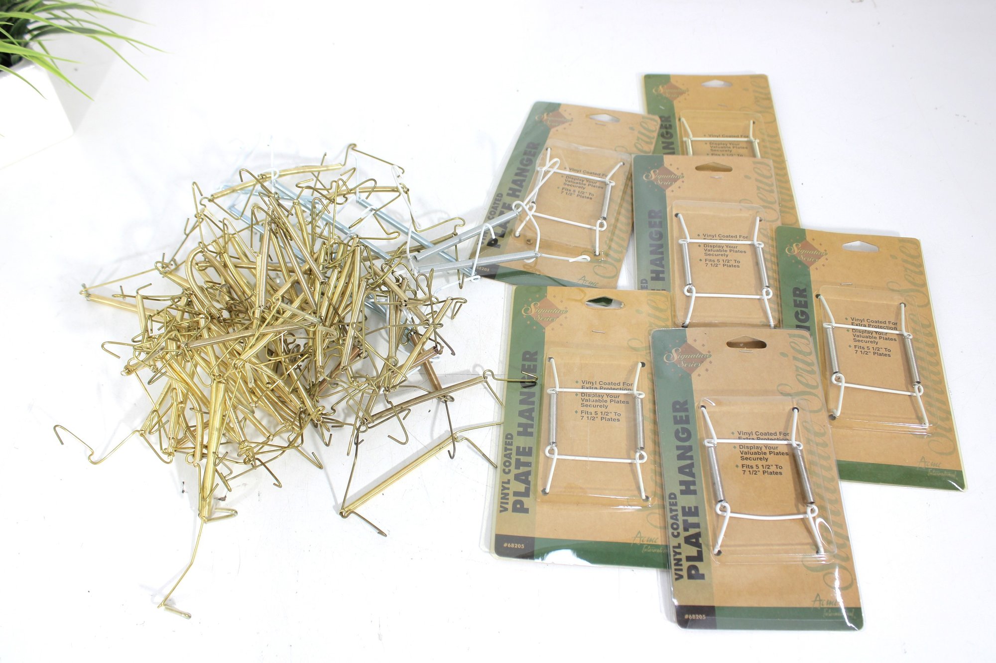 Lot Of Brass Plate Hangers Vintage & New-in-Package Display Hooks