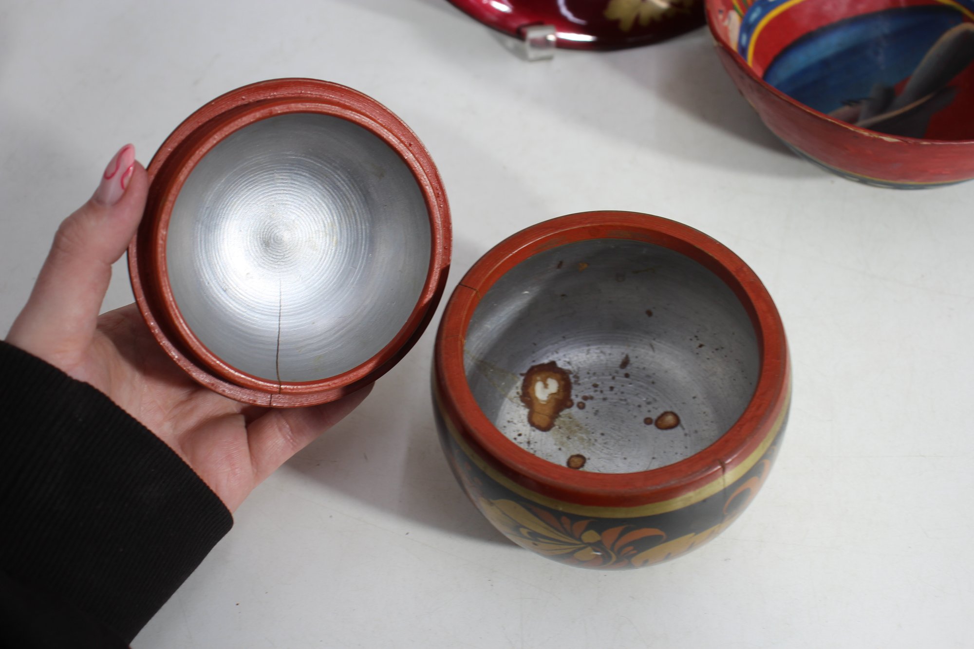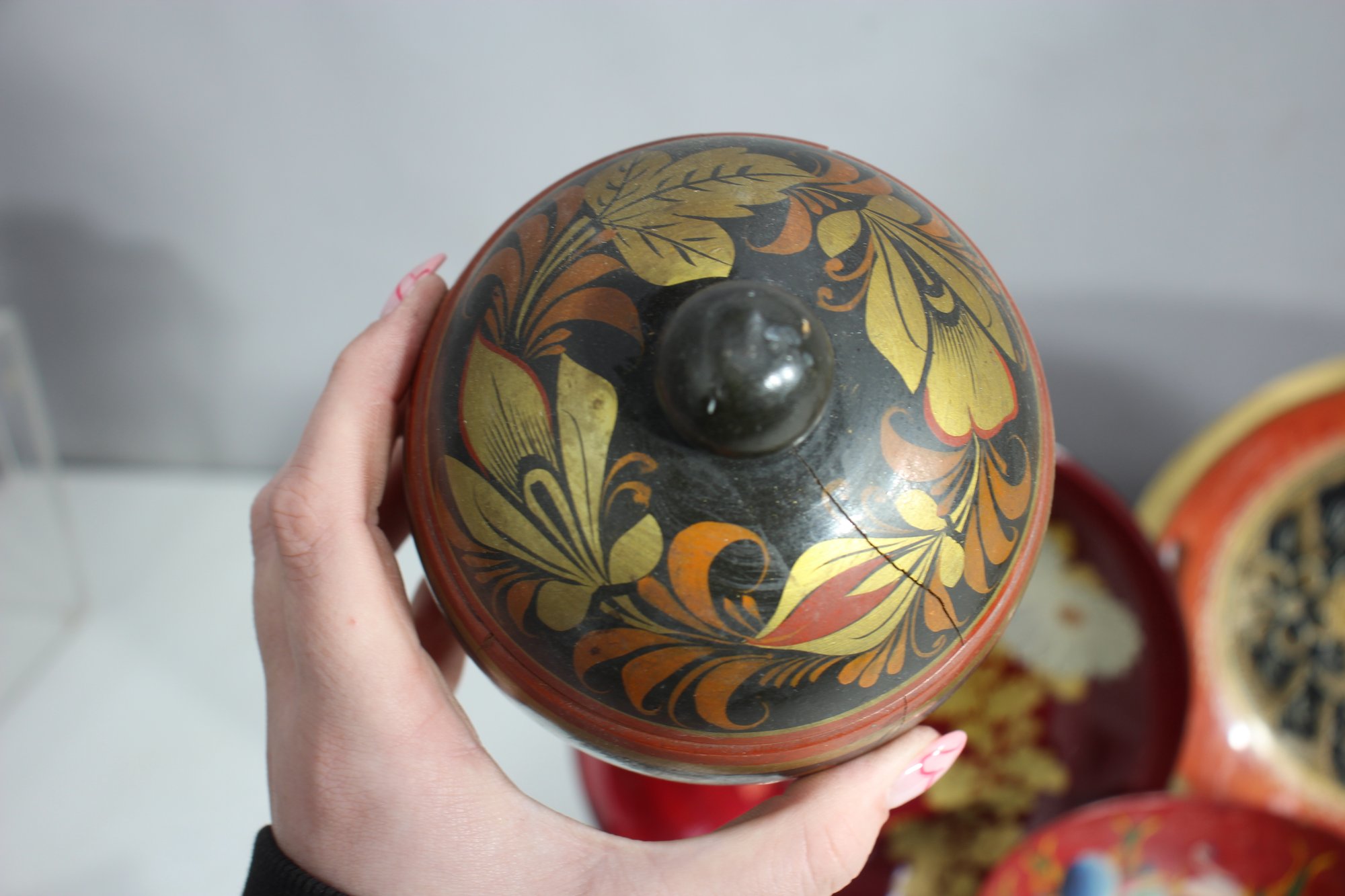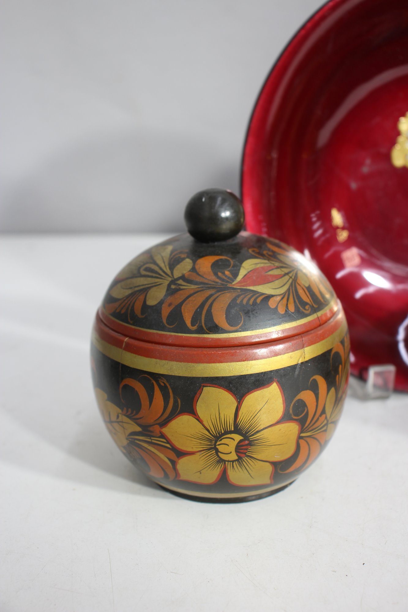 Small lidded container – Ornate hand-painted floral pattern in classic Russian folk art style.