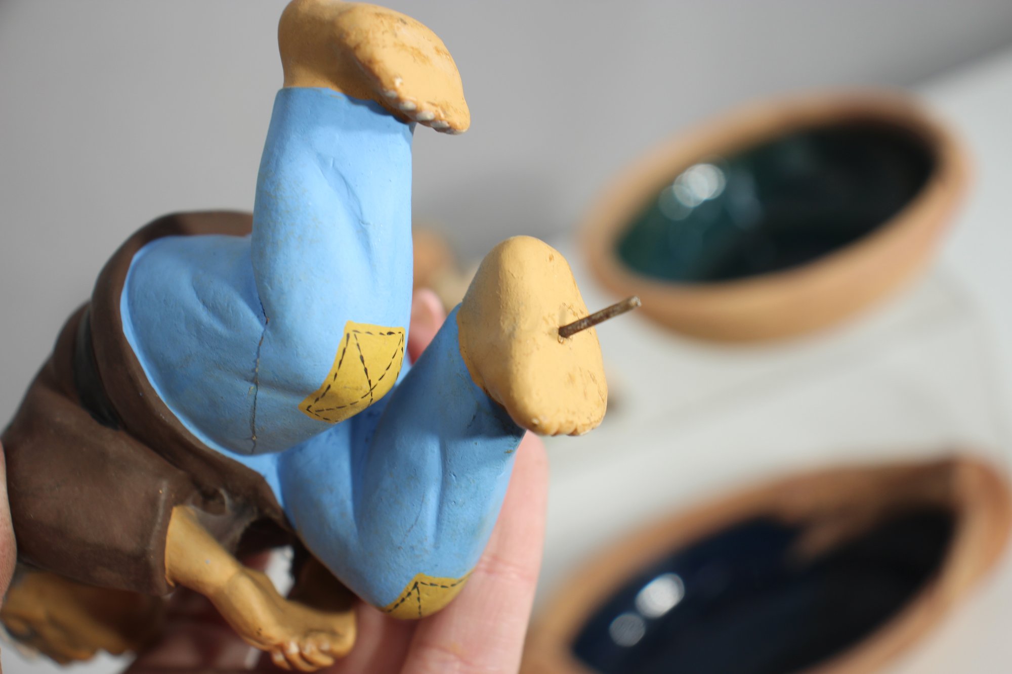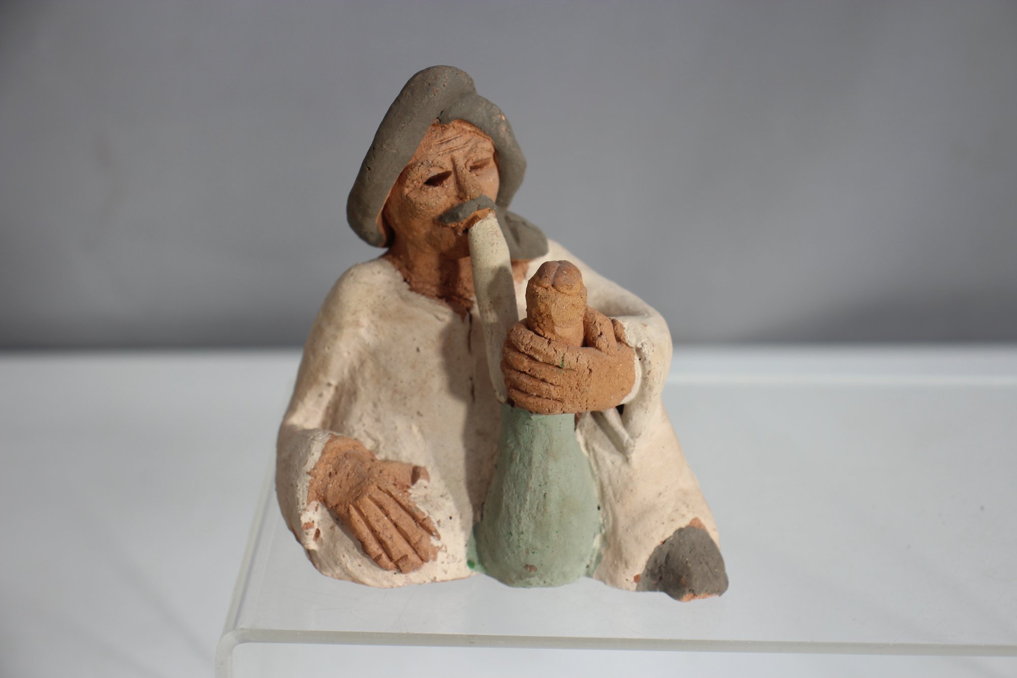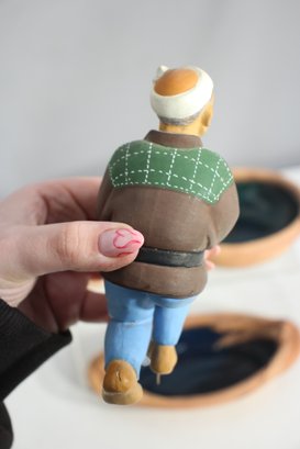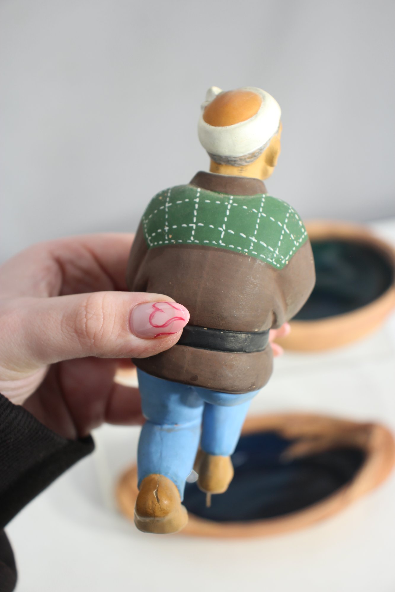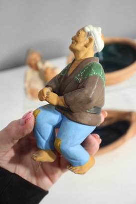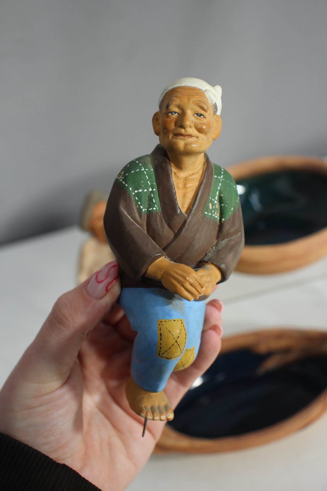 Hand-painted ceramic figurines – Includes a seated elderly man and a rustic artisan sculpture.