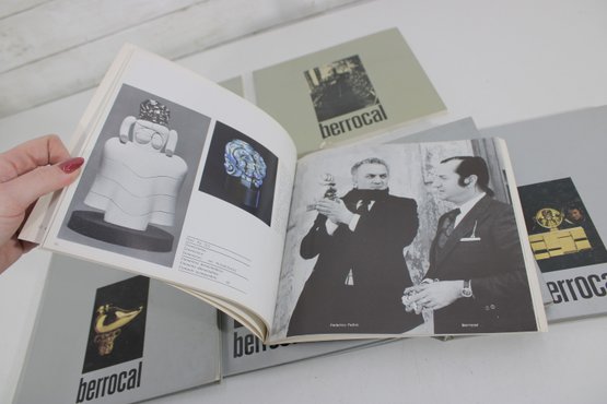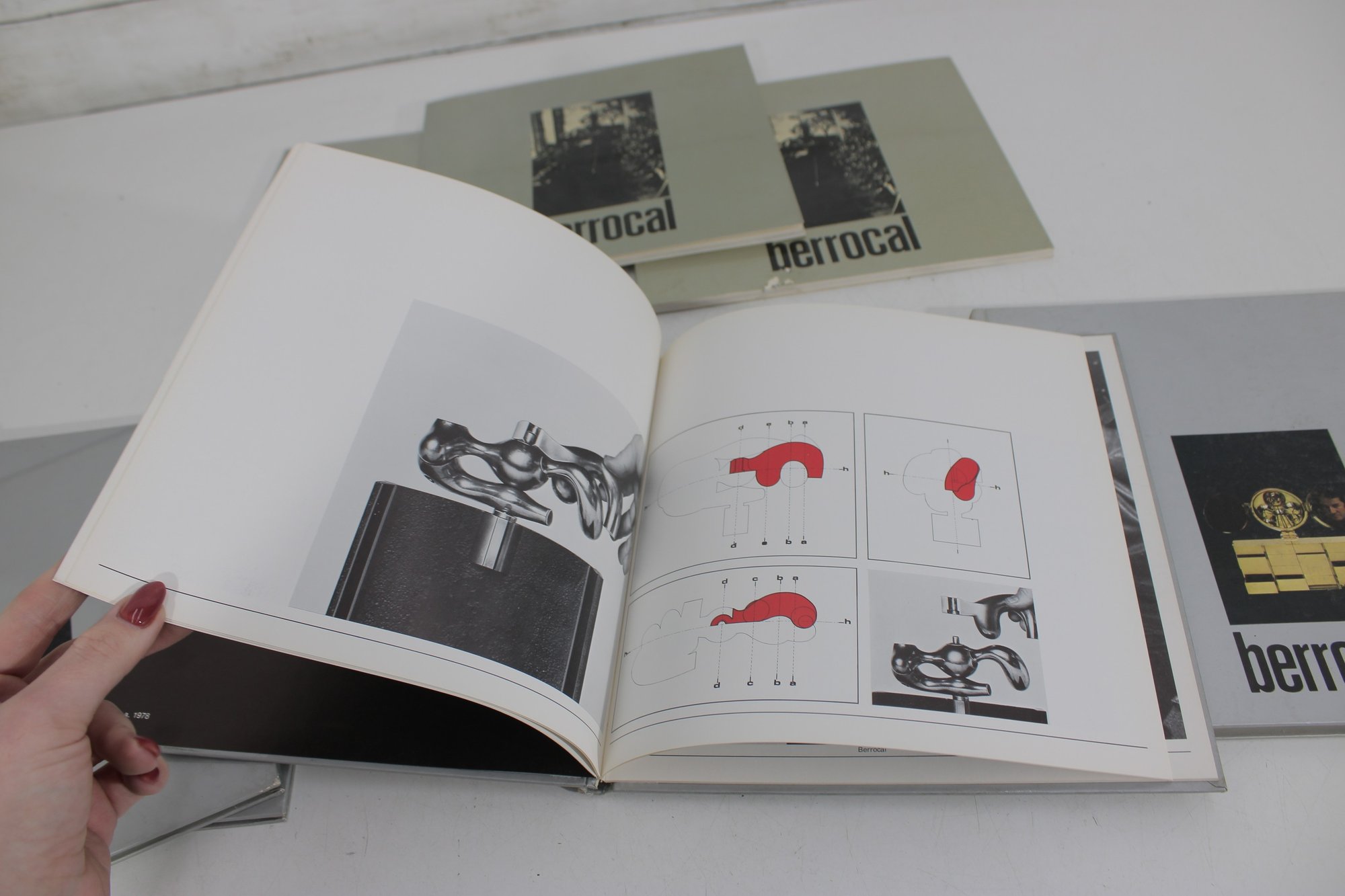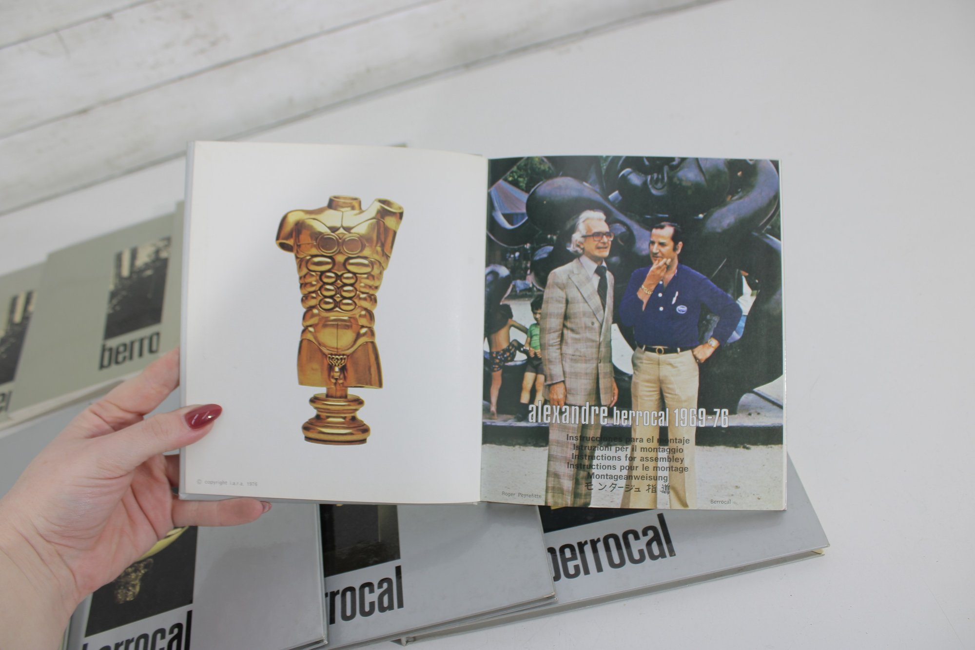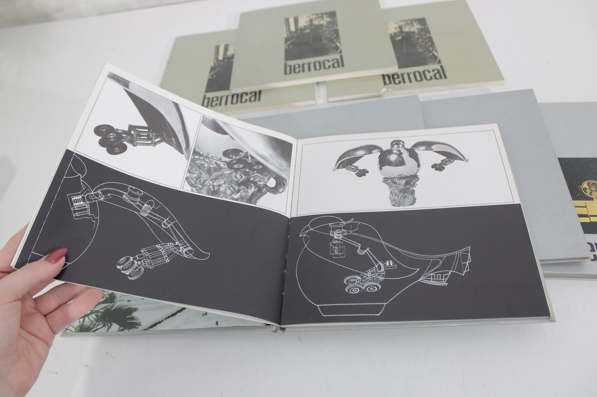 This lot includes multiple softcover exhibition catalogs and promotional publications featuring Berrocal’s iconic mechanical puzzle sculptures. The covers prominently display his name “berrocal,” and interiors