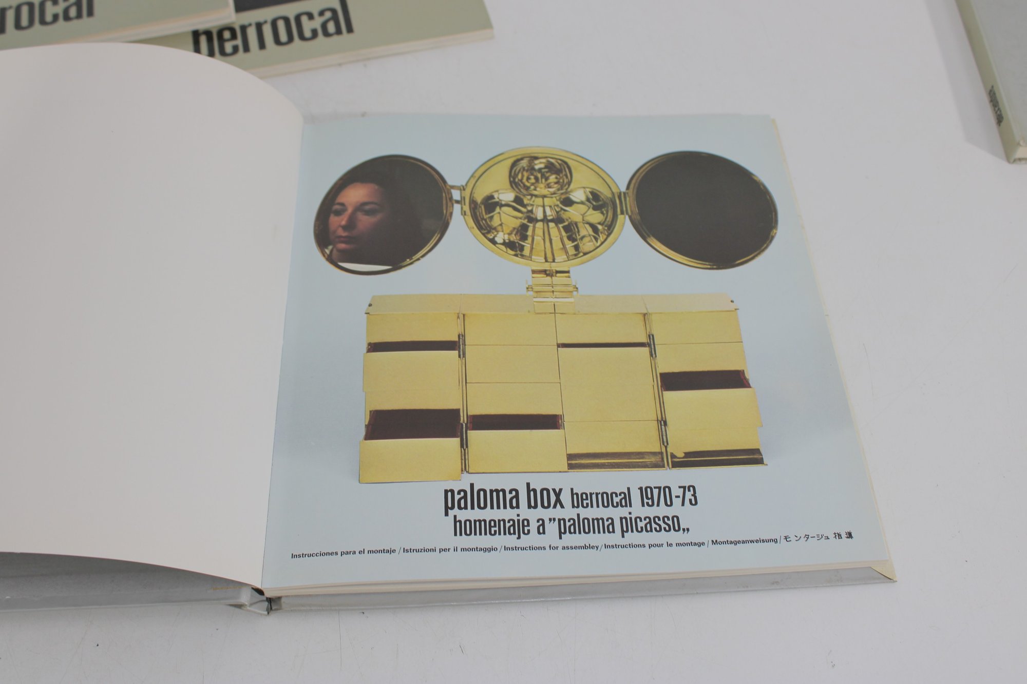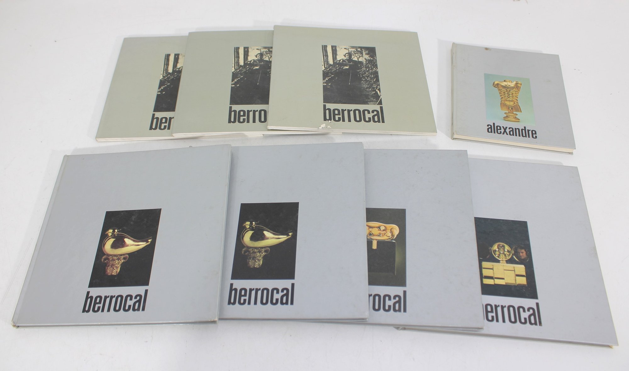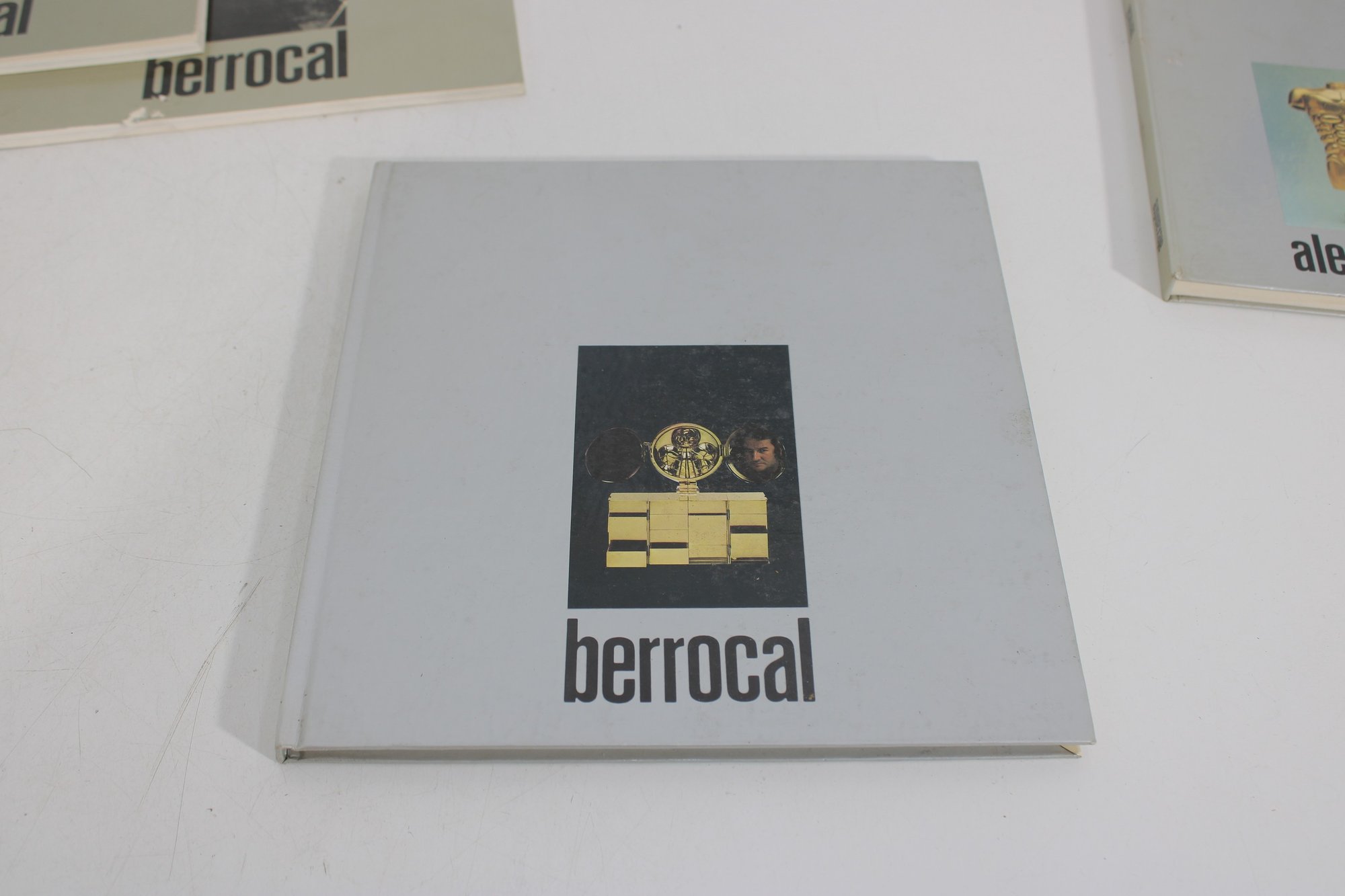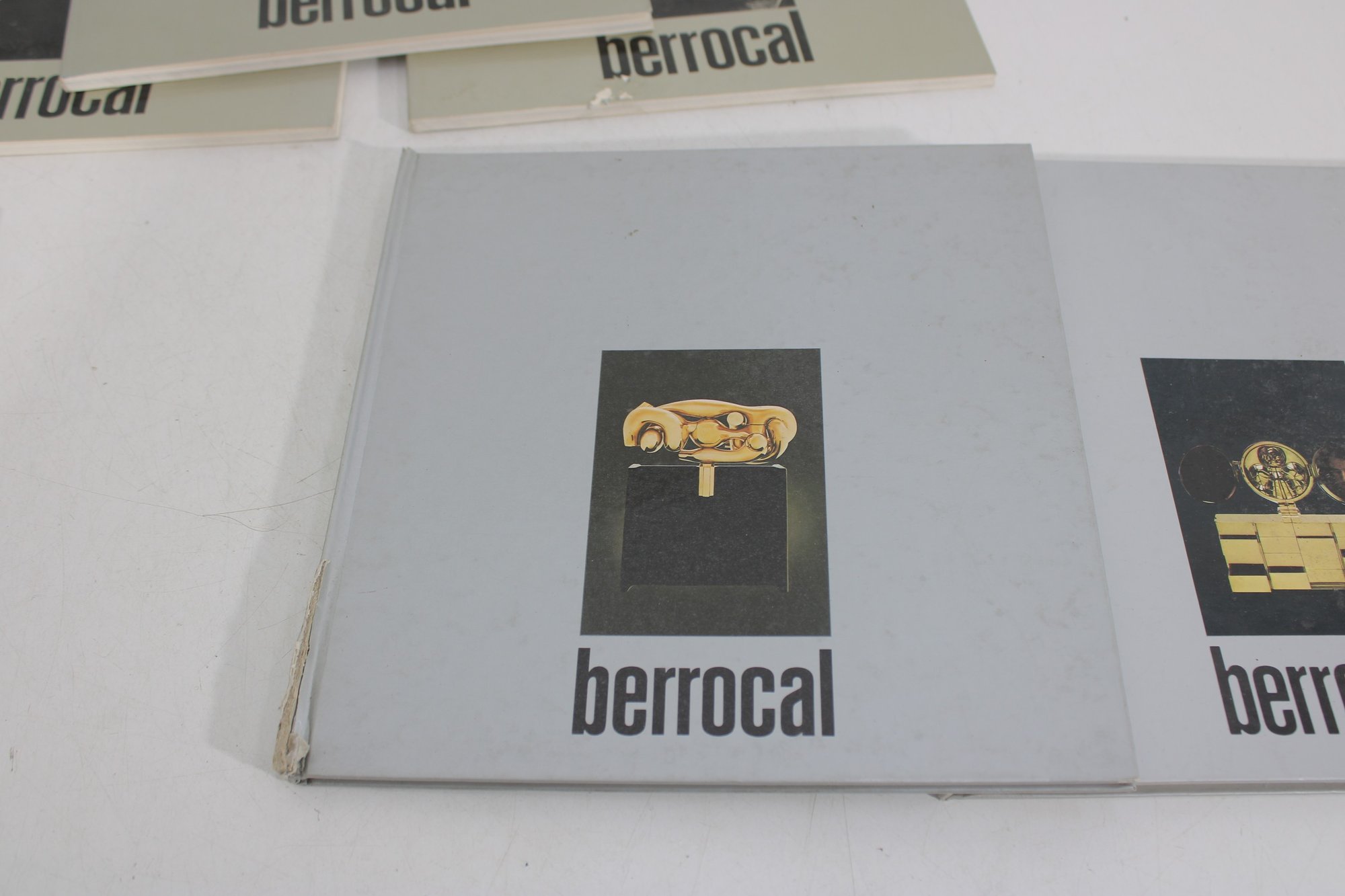 This lot includes multiple softcover exhibition catalogs and promotional publications featuring Berrocal’s iconic mechanical puzzle sculptures. The covers prominently display his name “berrocal,” and interiors