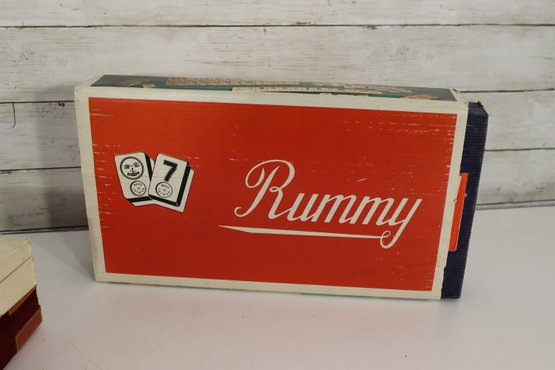 Vintage Rummy boxed tile game set (box shows wear, tiles inside as shown)