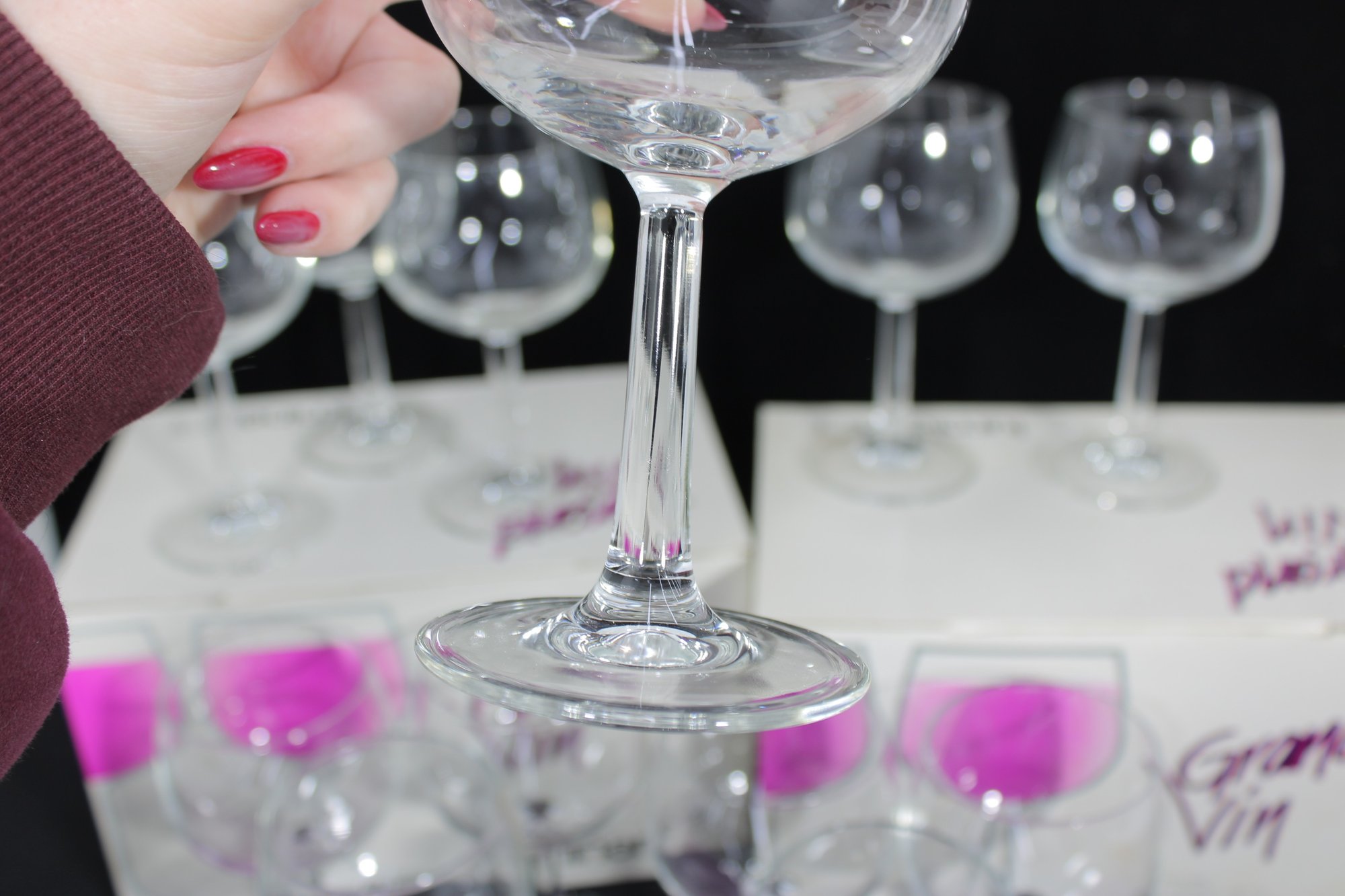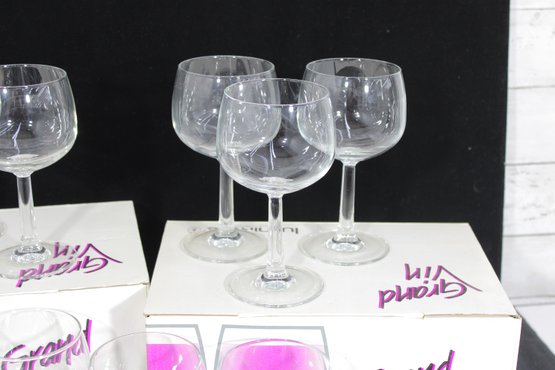 Set of 12 Luminarc “Grand Vin Lira” wine glasses, designed for wine tasting and everyday elegance. Each glass holds approximately 13 oz and features a classic bowl shape ideal for enhancing aroma and flavor.