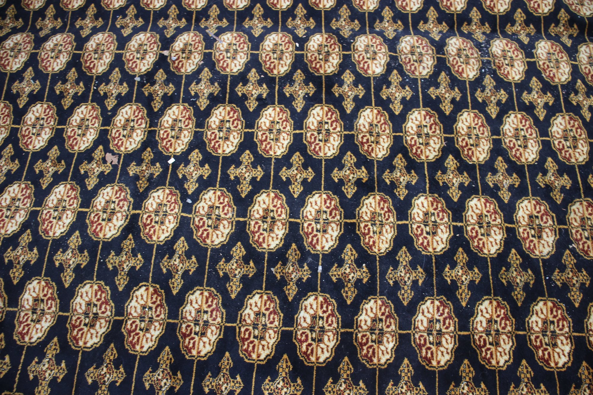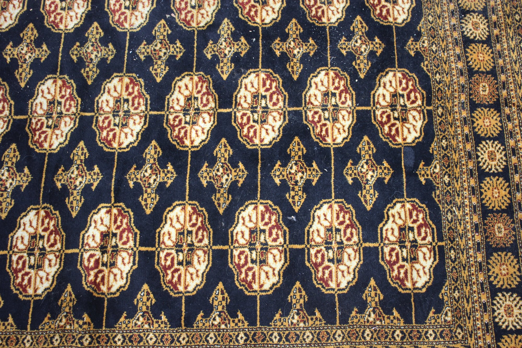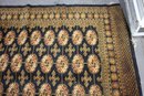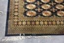 This magnificent hand-woven Bokhara rug combines rich colors and intricate patterns to create a statement piece for any space. With its bold black field, golden accents, and traditional motifs, this rug exemplifies timeless elegance and superior craftsmanship.