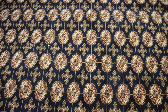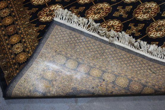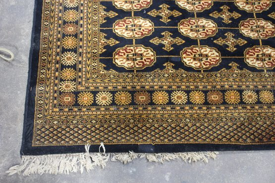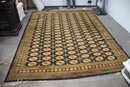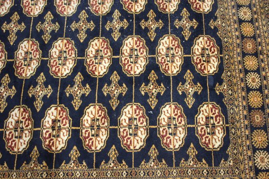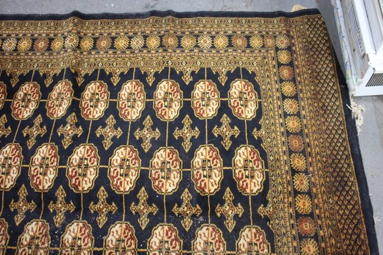 Hand-woven Bokhara Wool Rug - Black & Gold Geometric Design.