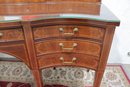 This sideboard features multiple drawers for organized storage, including a felt-lined drawer with compartments—ideal for flatware, serving pieces, or collectibles. The curved front, tapered legs, and brass hardware give it a refined traditional look that works well in dining rooms, entry halls, offices, or living spaces.