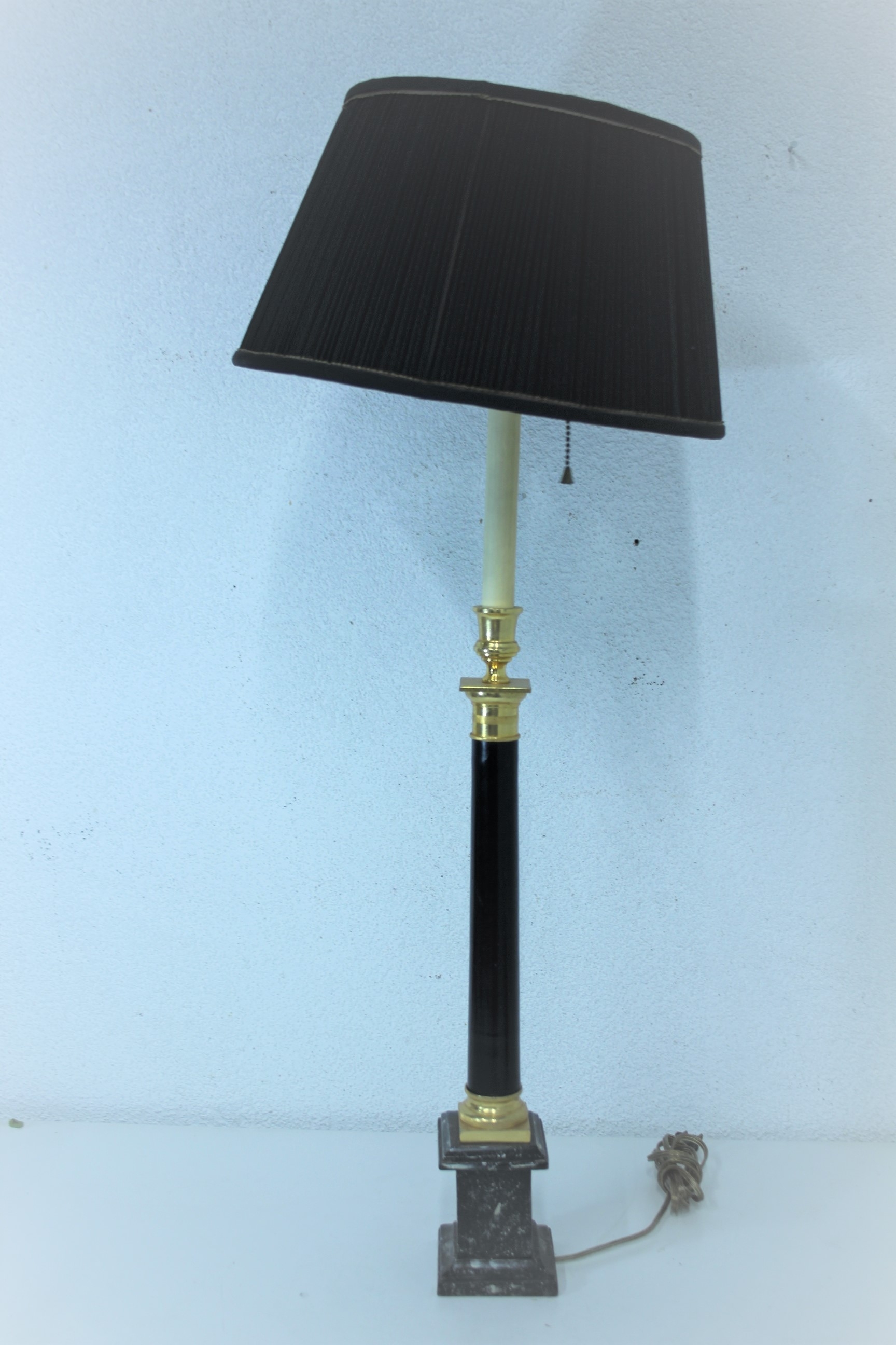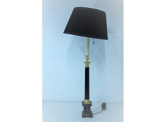 Marble Base Black & Brass Column Lamp - Twin Bulbs & Black Skinny Flute Shade