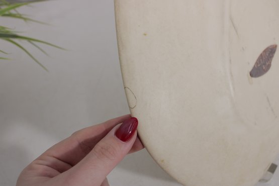 This versatile piece can be used as a serving platter, decorative tray, or ashtray, with subtle indentations along the edge. The organic, freeform shape adds to its artistic appeal.