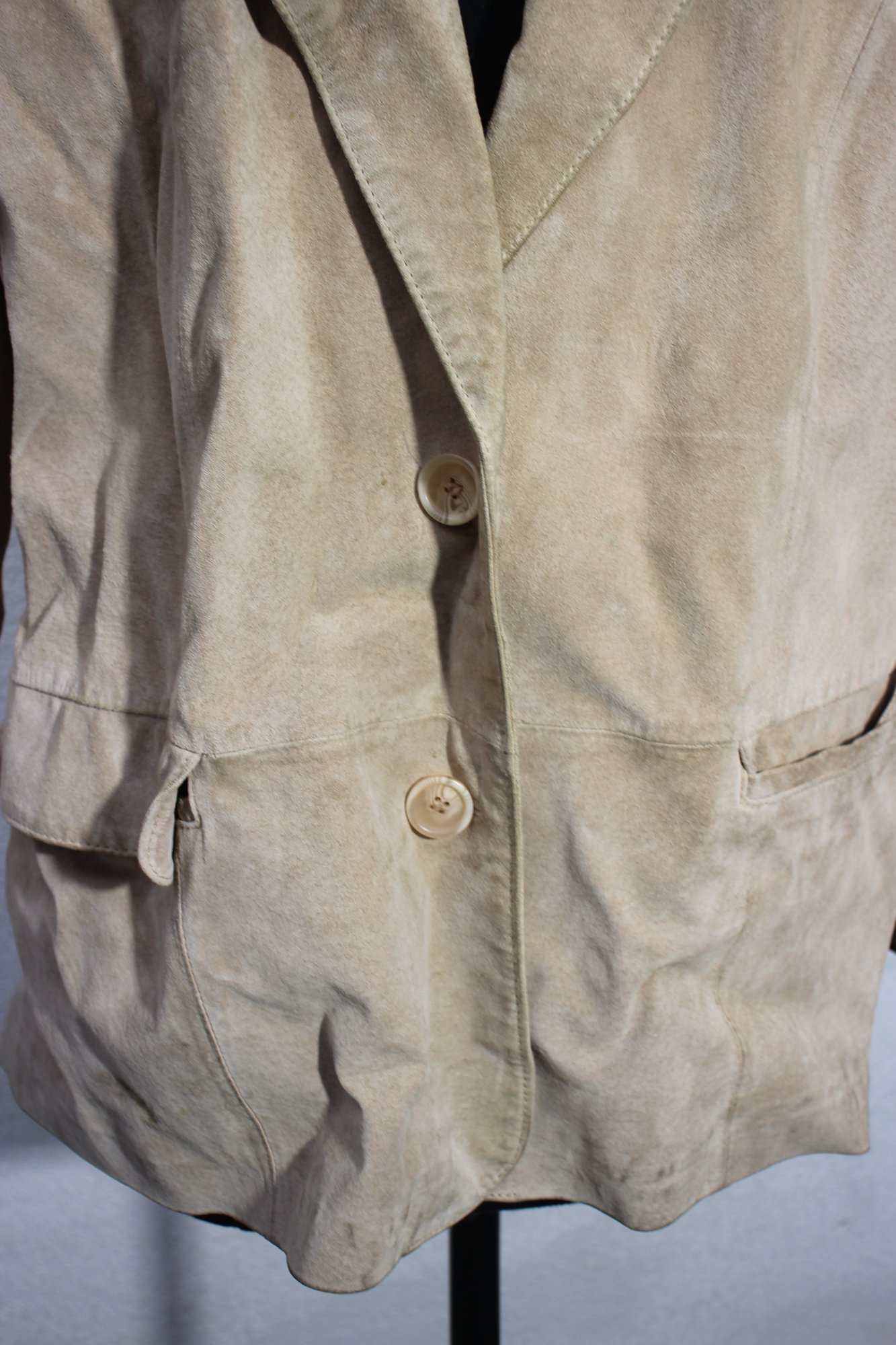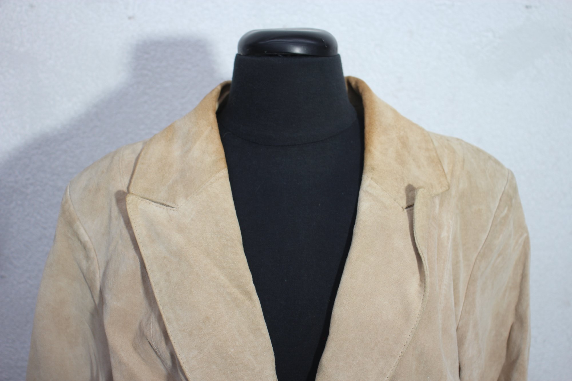 Step into effortless elegance with this Margaret Godfrey women’s suede blazer jacket, designed in a classic tan color for a timeless, sophisticated look. Made from soft genuine suede, this piece is perfect for layering over casual or formal outfits.