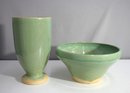 This elegant matching set includes a tall ceramic vase and a wide ceramic bowl, both glazed in a soothing green finish with natural accents at the base. The minimalist design and subtle color palette make this set versatile for a variety of interior styles, from modern to rustic.