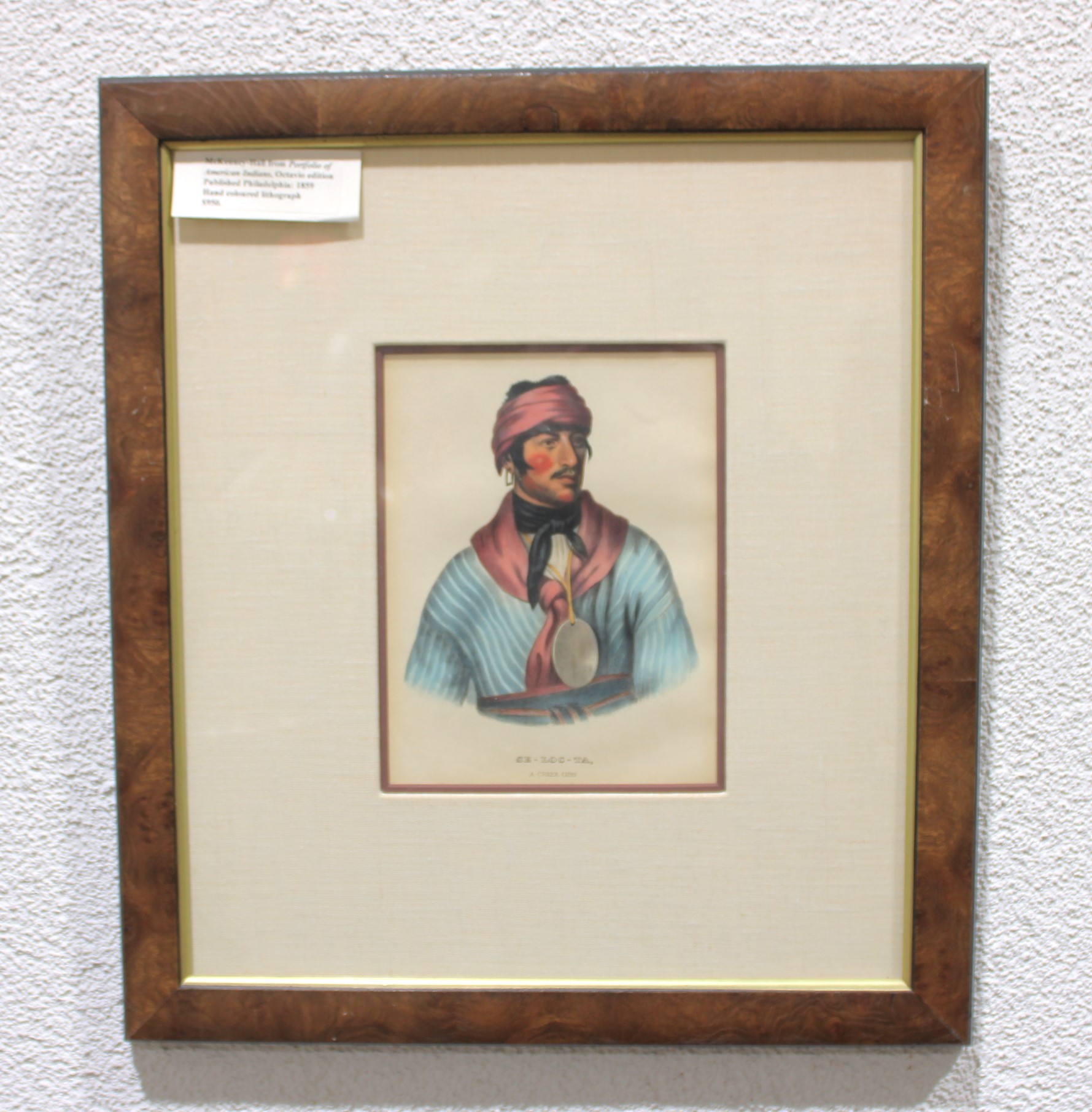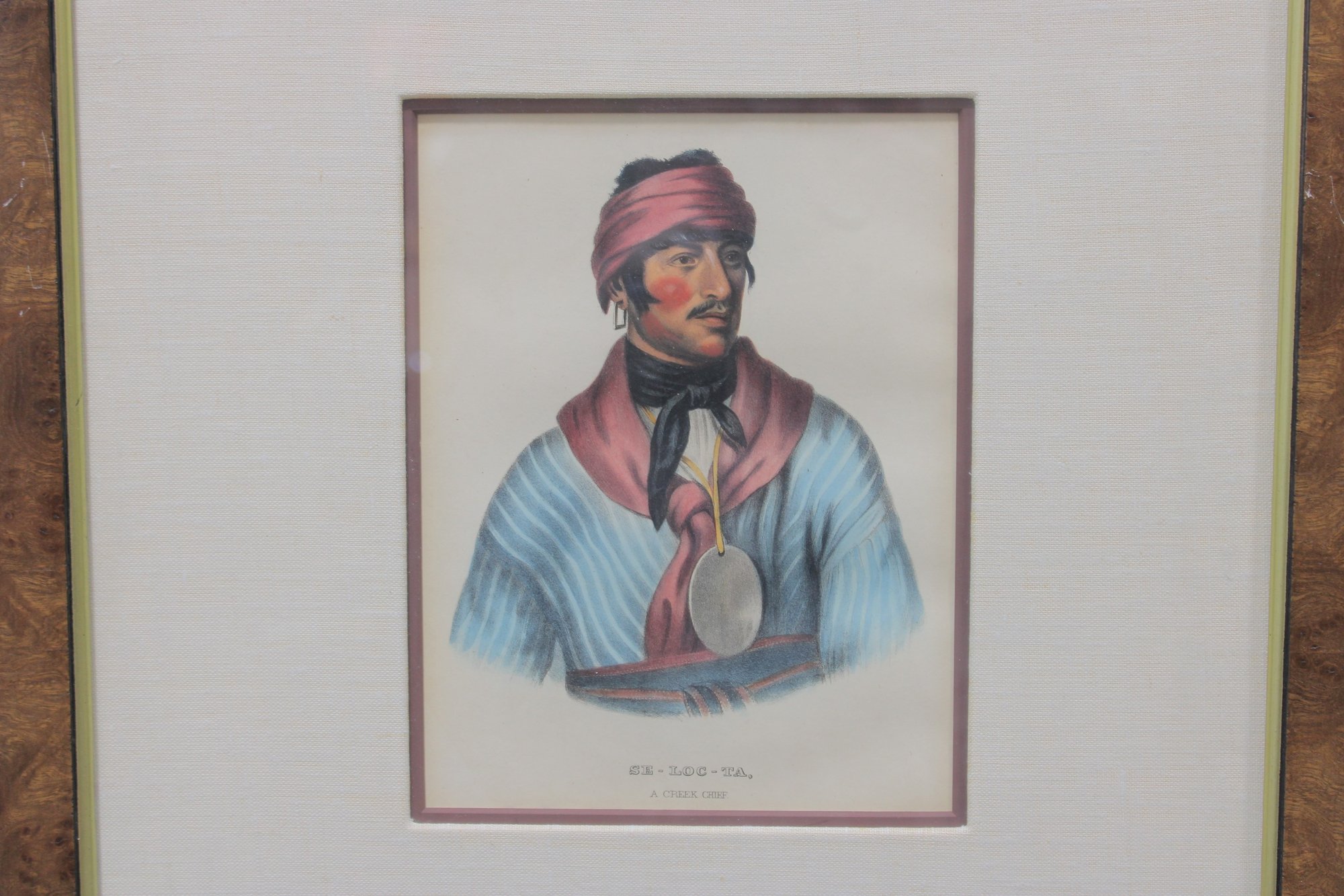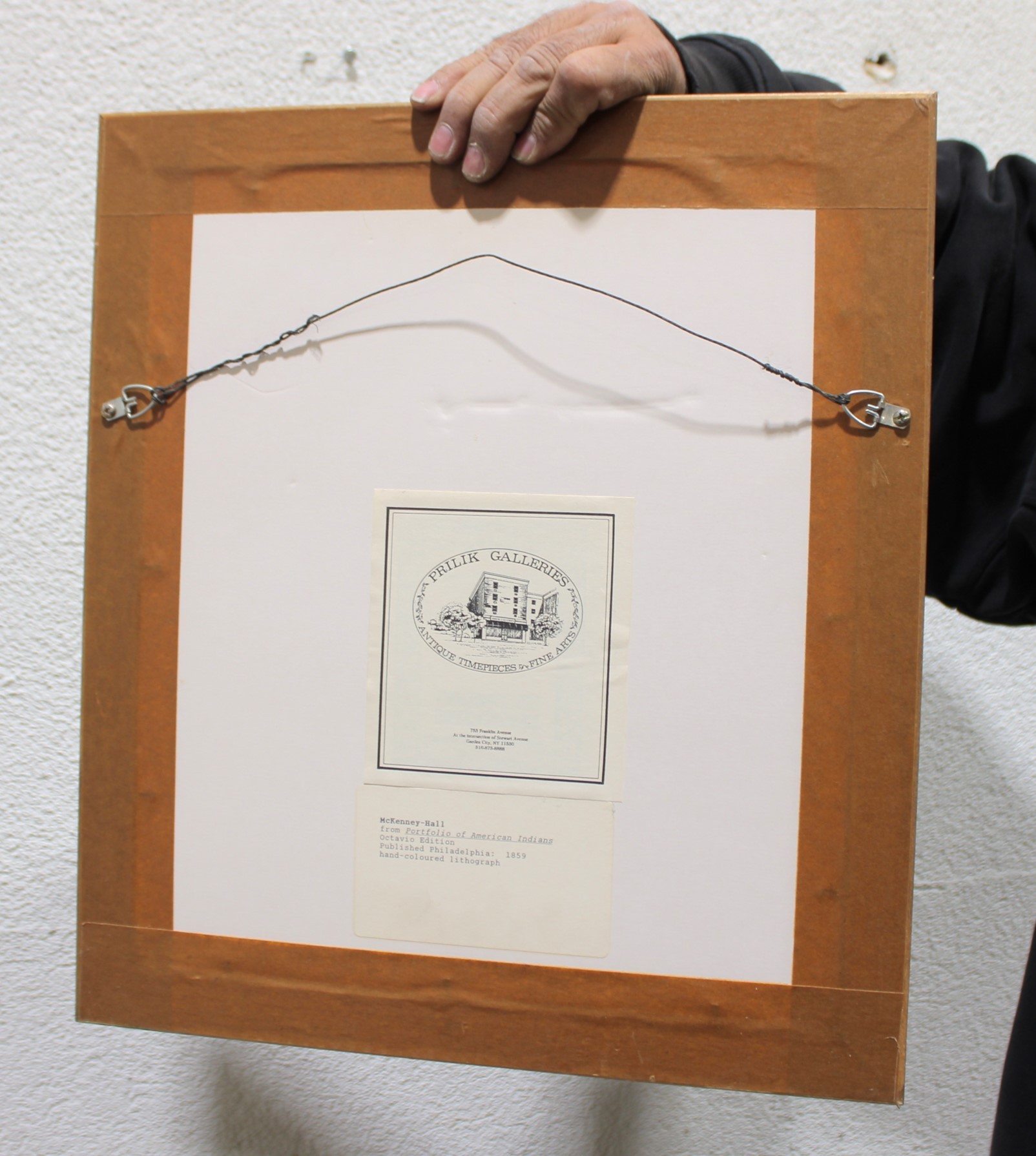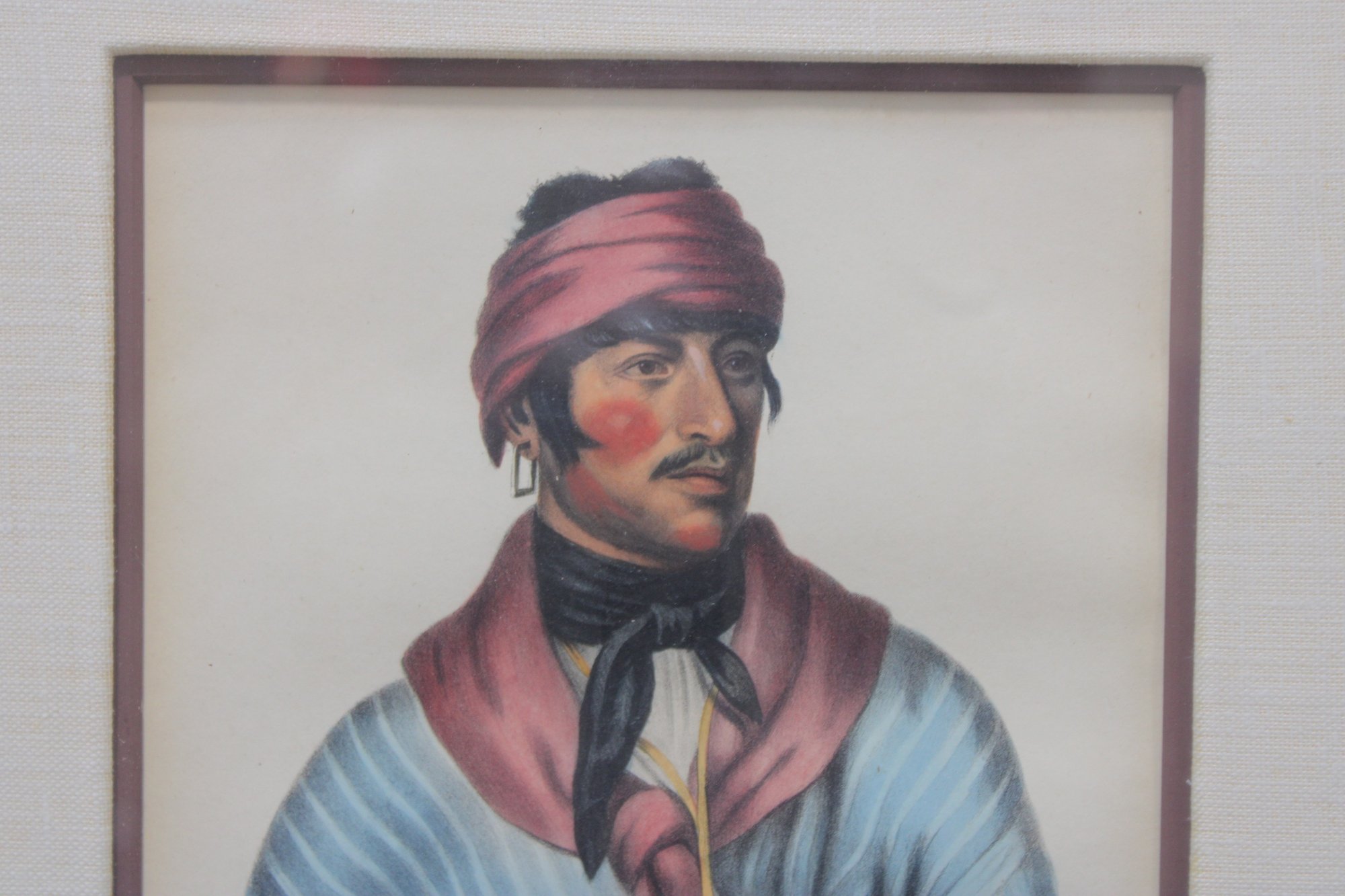 an authentic hand-colored lithograph from McKenney & Hall’s celebrated Portfolio of American Indians, Octavo Edition. This classic 19th-century image is known for its finely detailed portraiture and rich hand-applied color, representing one of the most important visual records of Native American leaders and culture produced in early American history.