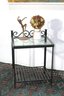 This stylish metal and glass side table is the perfect blend of modern and classic design. Featuring a sleek glass tabletop and decorative scrollwork accents, it brings both functionality and charm to any space.