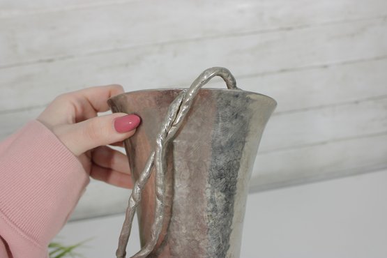 Beautiful Michael Aram Calla Lily vase (2003) showcasing the designer’s signature organic aesthetic and handcrafted quality. This piece features a softly flared form in a hammered nickelplate finish, giving it a rich, textured surface that reflects light with subtle variation.