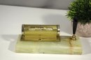 Mid-Century Genuine Onyx & Brass Perpetual Calendar & Pen Holder