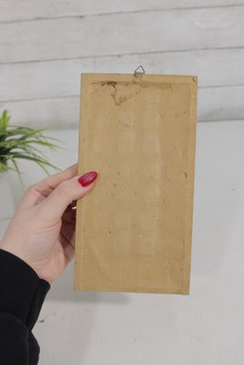 Framed in wood and ready to hang, this piece embodies classic mid-century modern aesthetics with bold colors and clean, graphic lines. A wonderful example of Greek decorative art from the period.