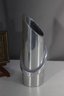 Crafted from polished aluminum, this piece has a reflective surface that enhances its contemporary aesthetic. Ideal for use as a flower vase, sculptural décor, or centerpiece, it embodies the clean lines and bold geometric forms associated with mid-century modern design.