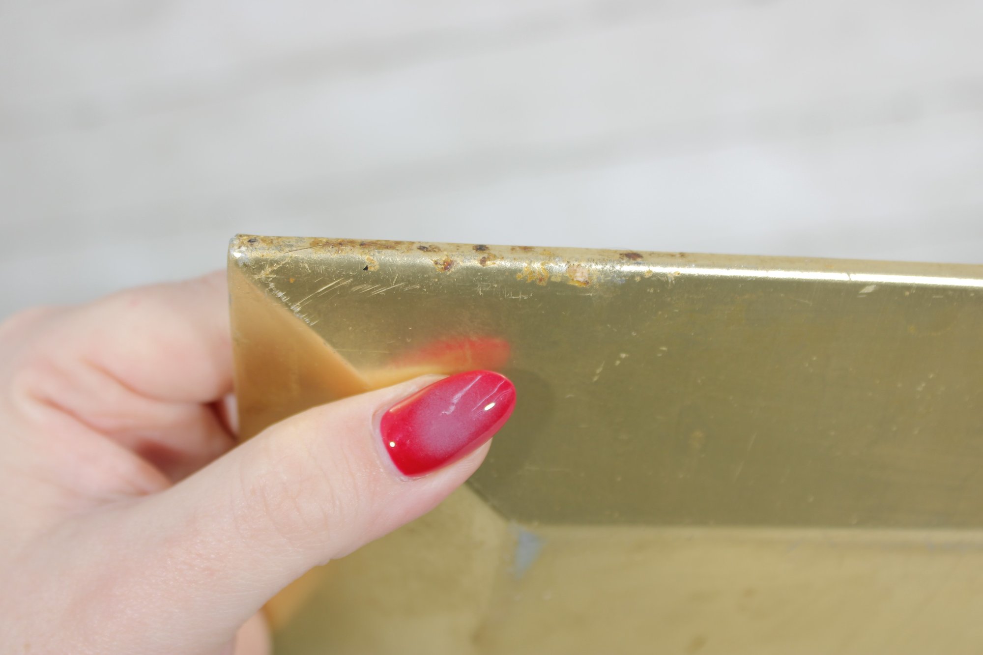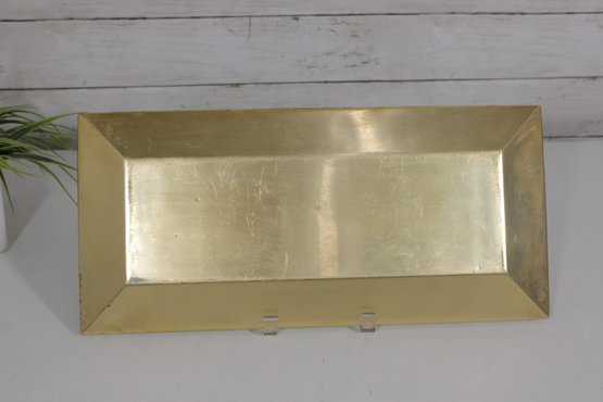 Measuring approximately 16.5" x 7.5", this rectangular tray is perfect for serving cocktails, appetizers, or as a decorative accent piece for a bar or coffee table. The underside features a gold-tone finish with raised edges for easy handling.