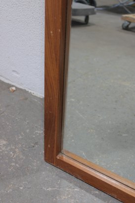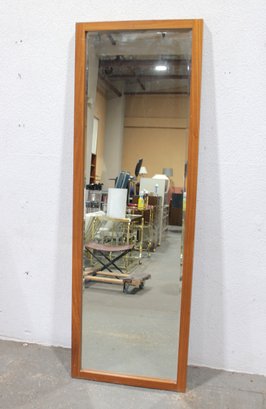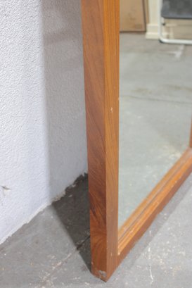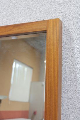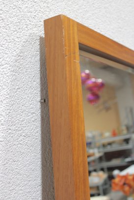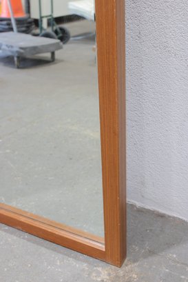 this elegant mid-century modern wall mirror, featuring a warm teak wood frame and a clean, minimalist design. Its tall, full-length proportions make it both a functional and stylish addition to any room.