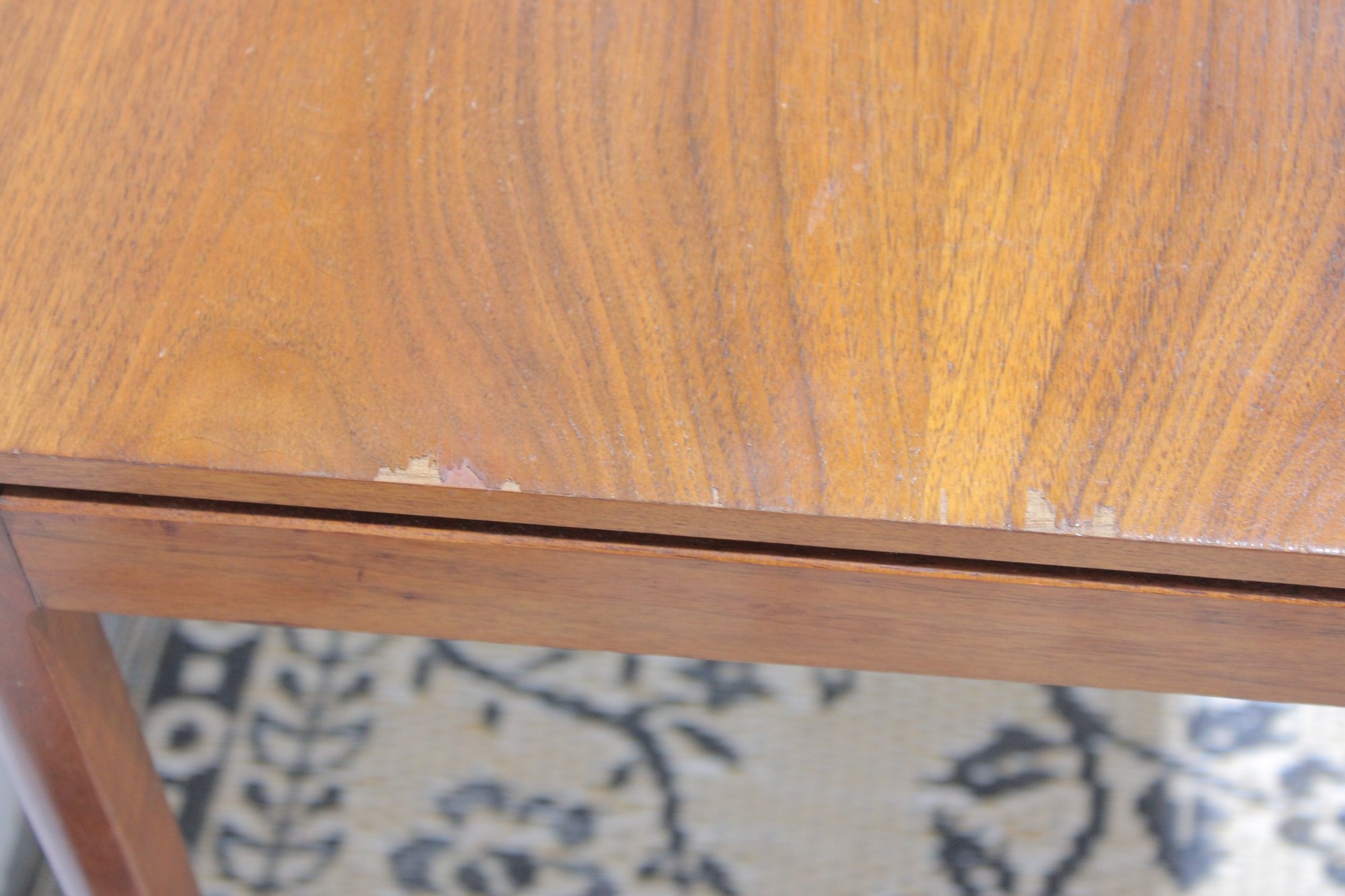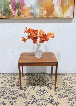 this mid-century modern accent table, featuring a warm wood grain and clean, minimalist design. Inspired by classic Danish modern styling, this piece offers both functionality and understated elegance.