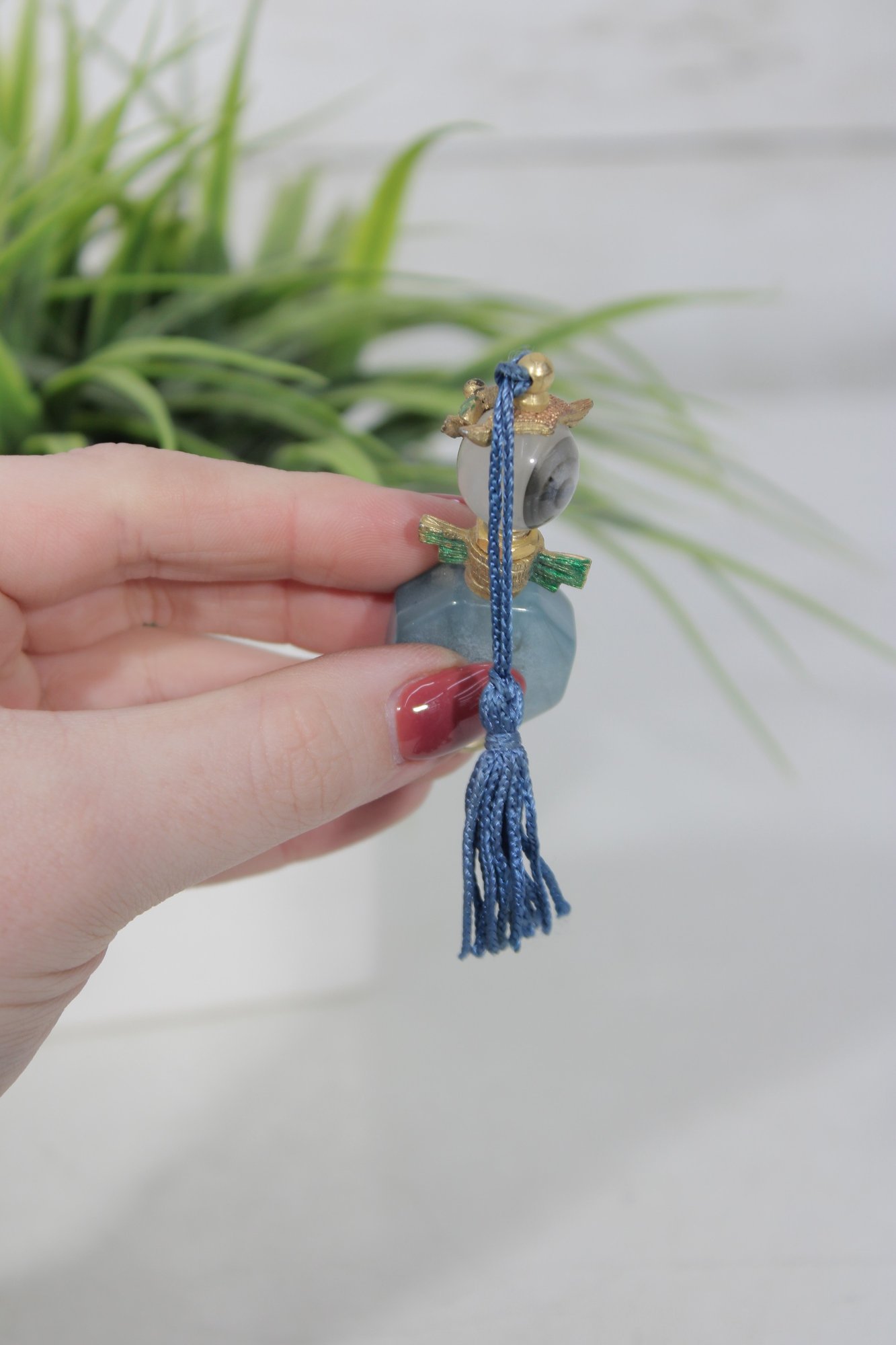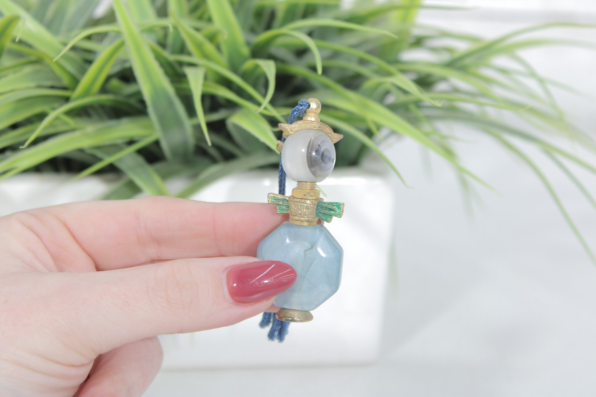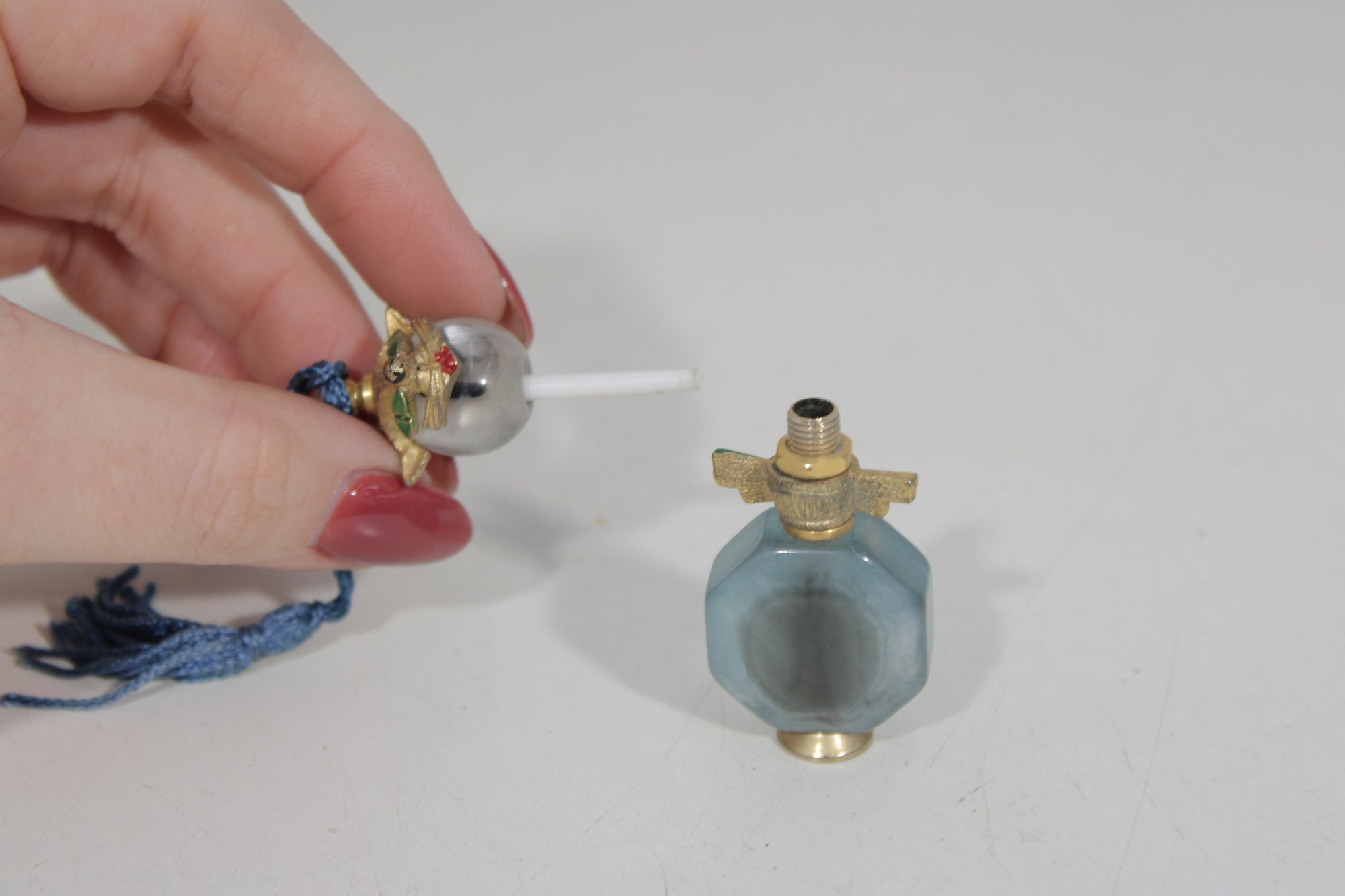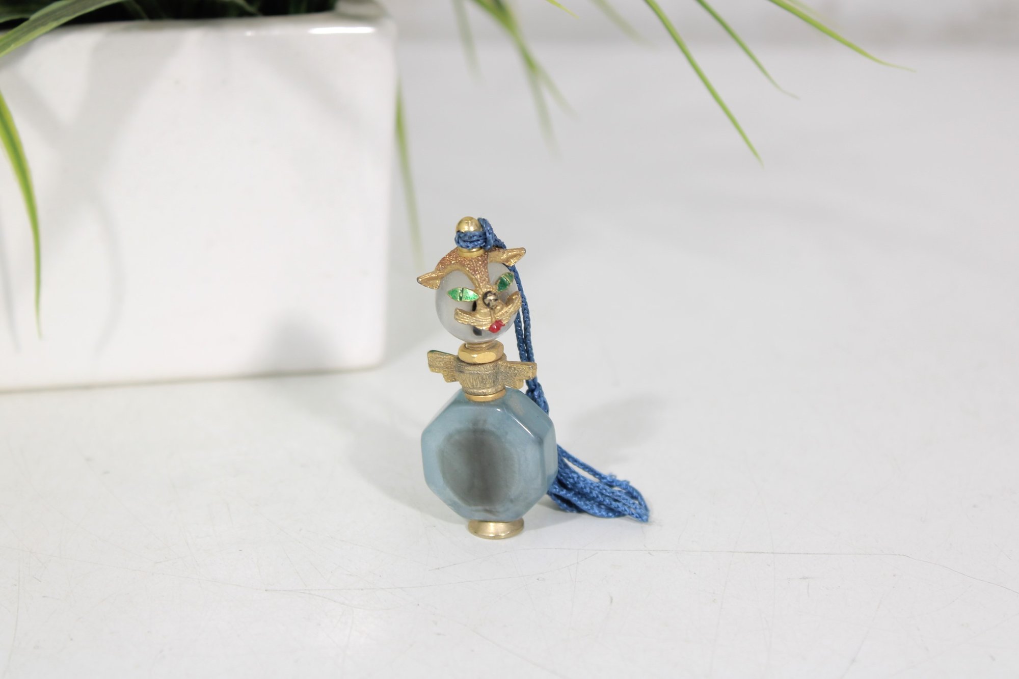 an adorable miniature crystal perfume bottle featuring a whimsical cat design.