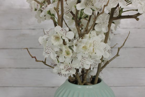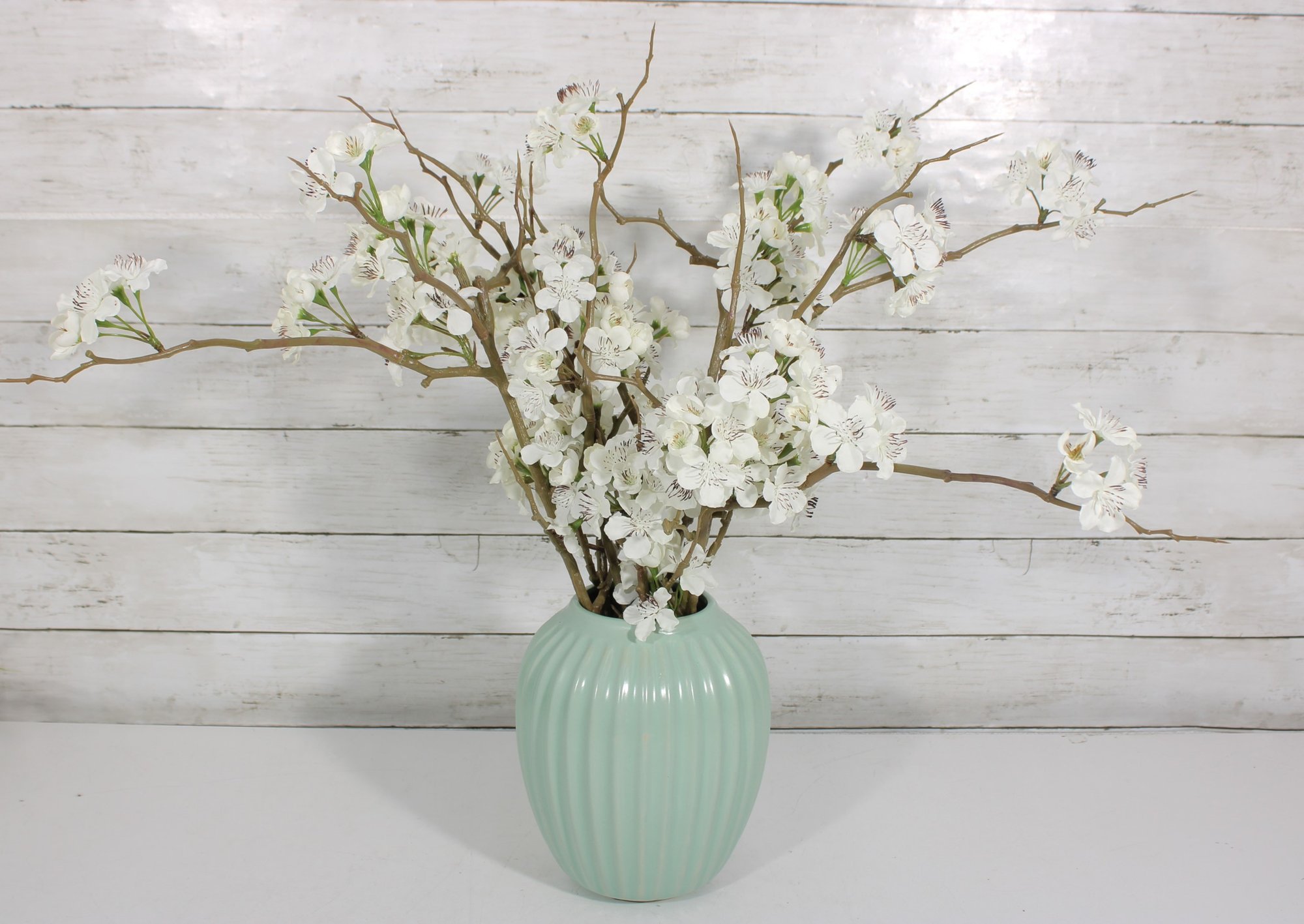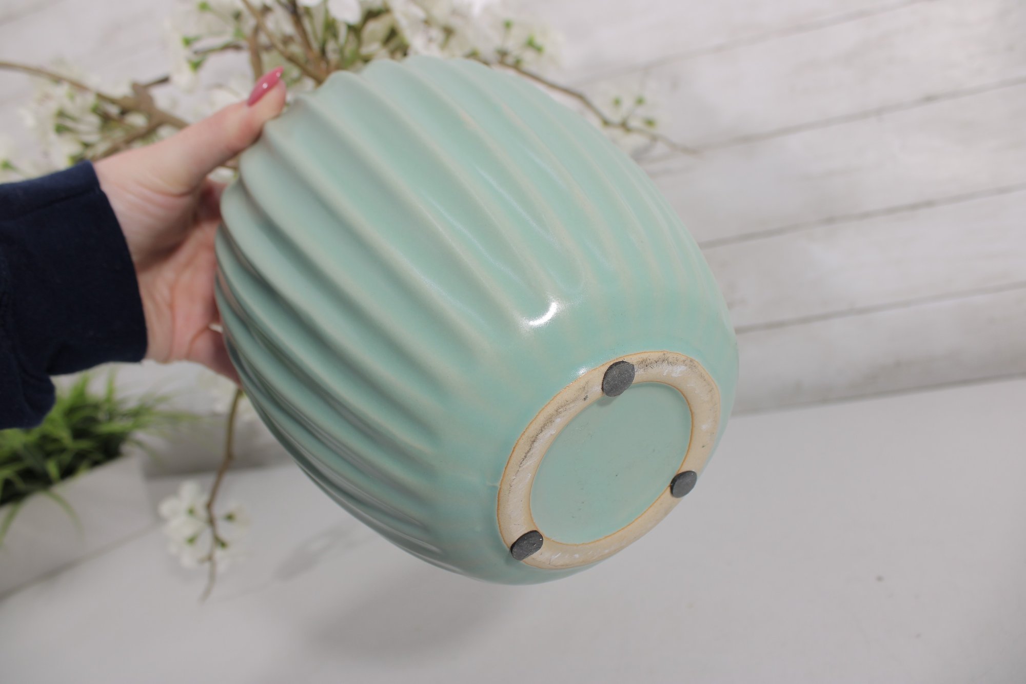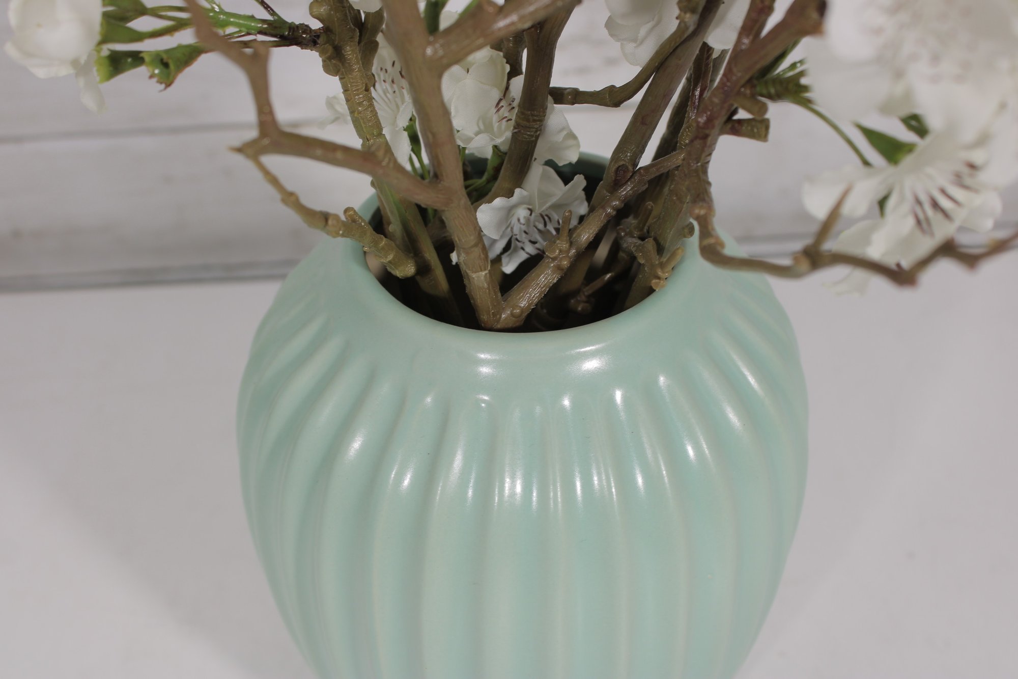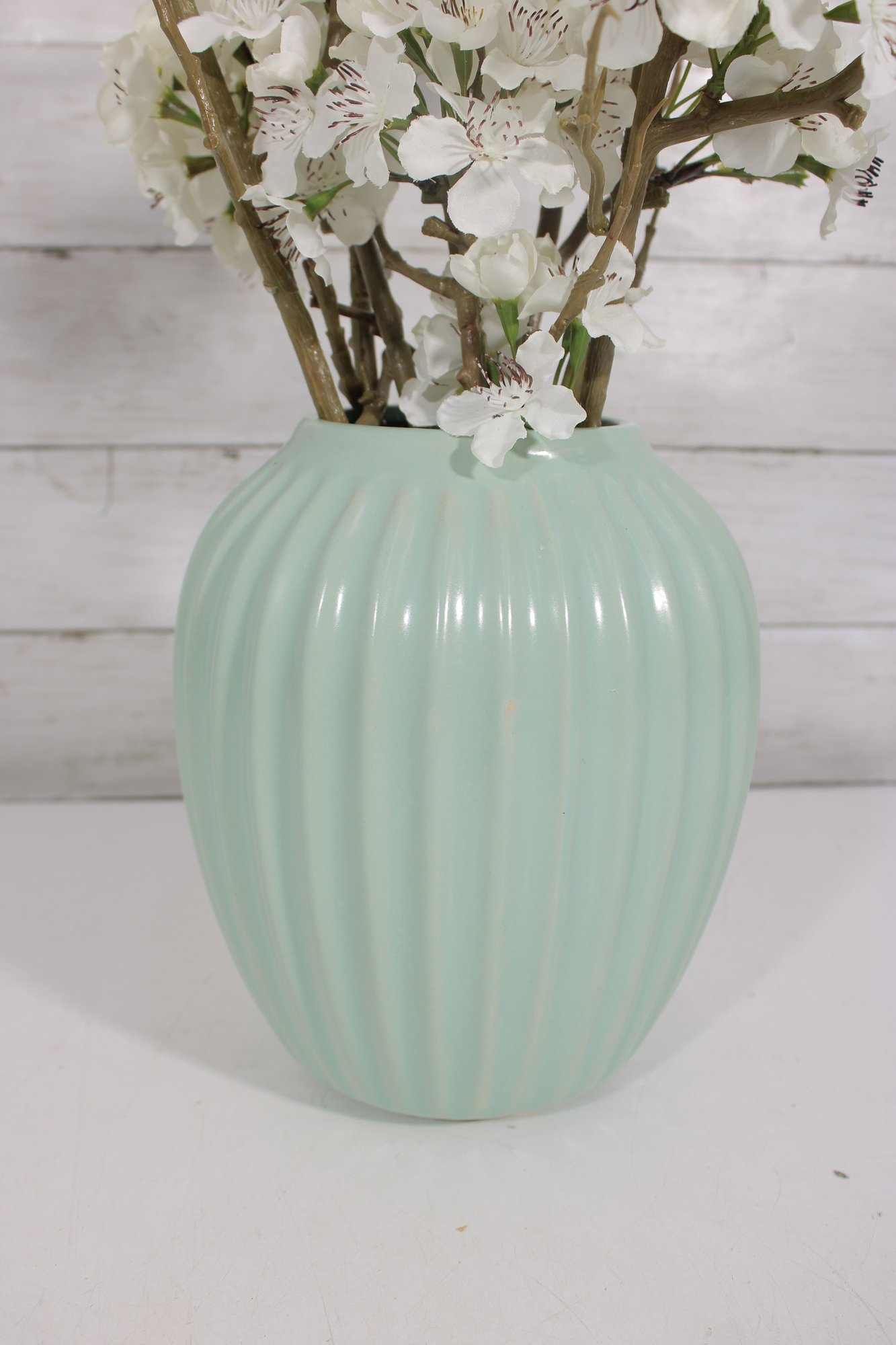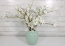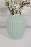Mint Green Ribbed Ceramic Vase Modern Decorative Vase 8" Tall