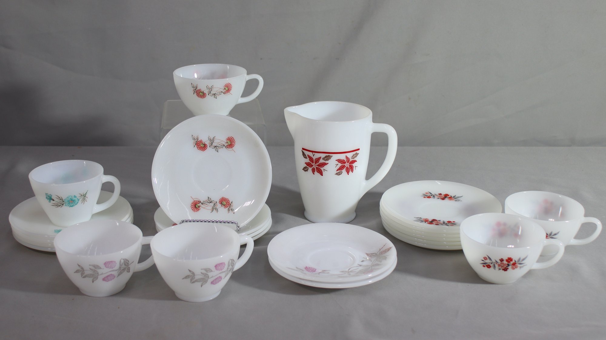 Mixed Group Lot Vintage Fire King & Federal Milk Glass Tea Cups And Saucers And More