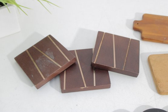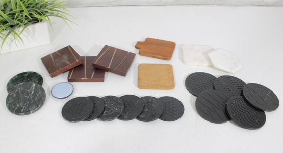 Mixed Lot Drink Coasters Wood Marble Cork Rubber Assorted Styles