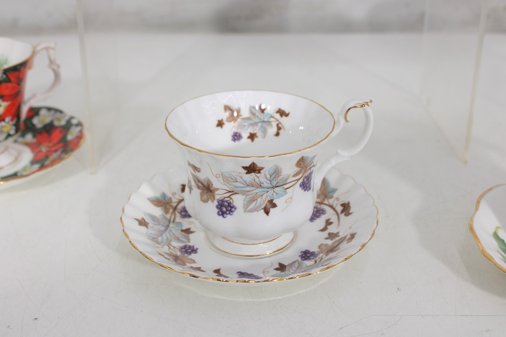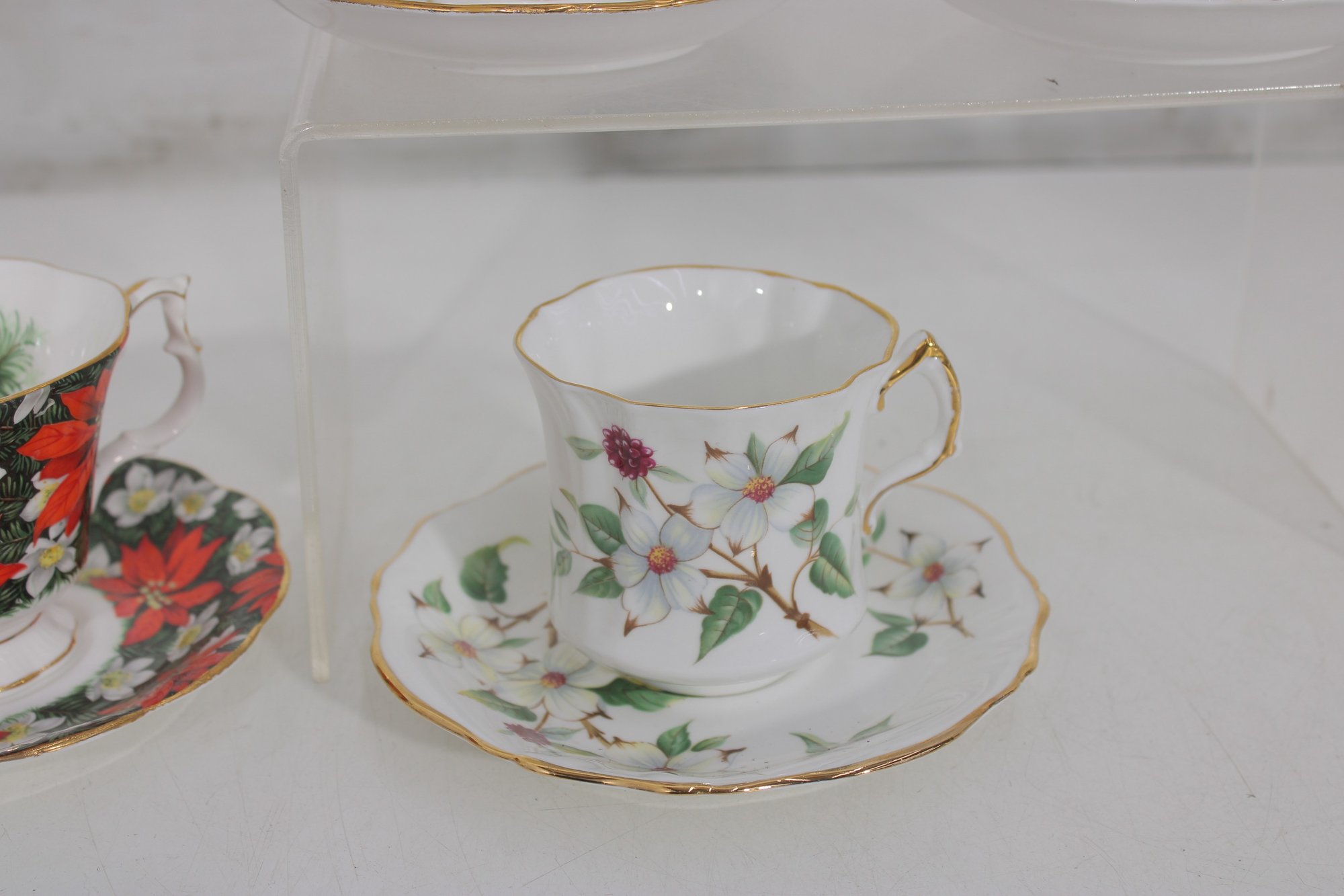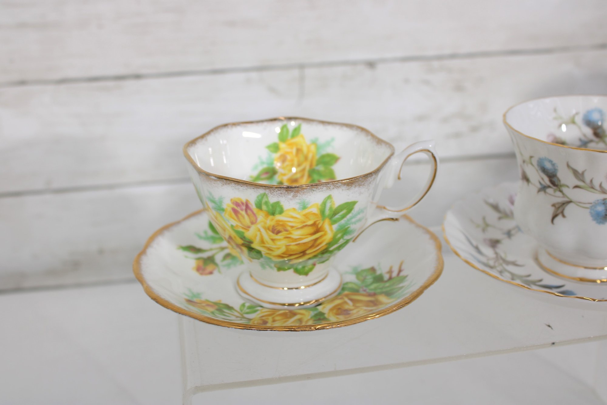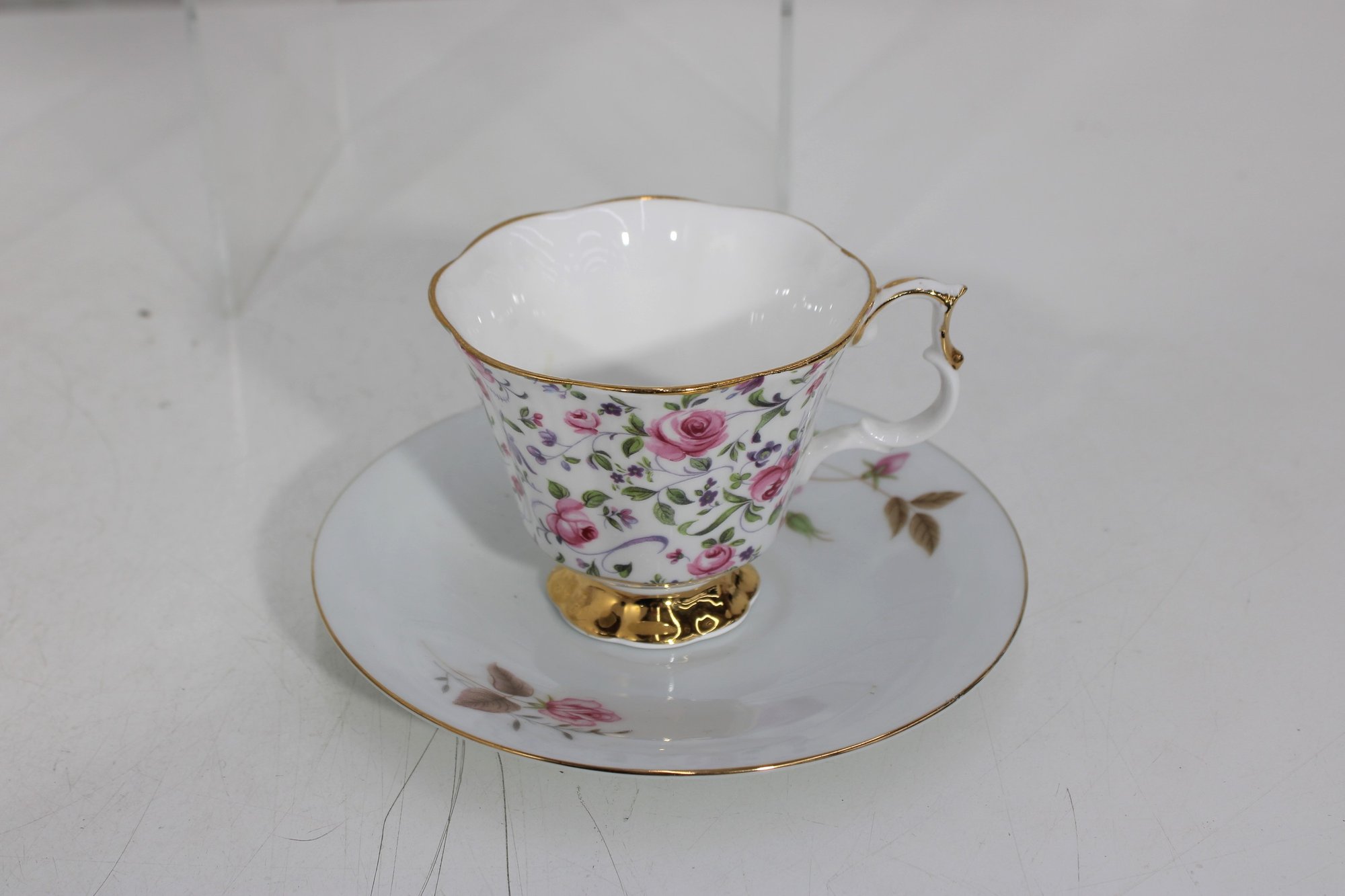 Each cup showcases delicate floral designs including roses, mixed bouquets, and gold trim accents. A lovely assortment of shapes and patterns—perfect for collectors, tea parties, display cabinets, weddings, or resale.