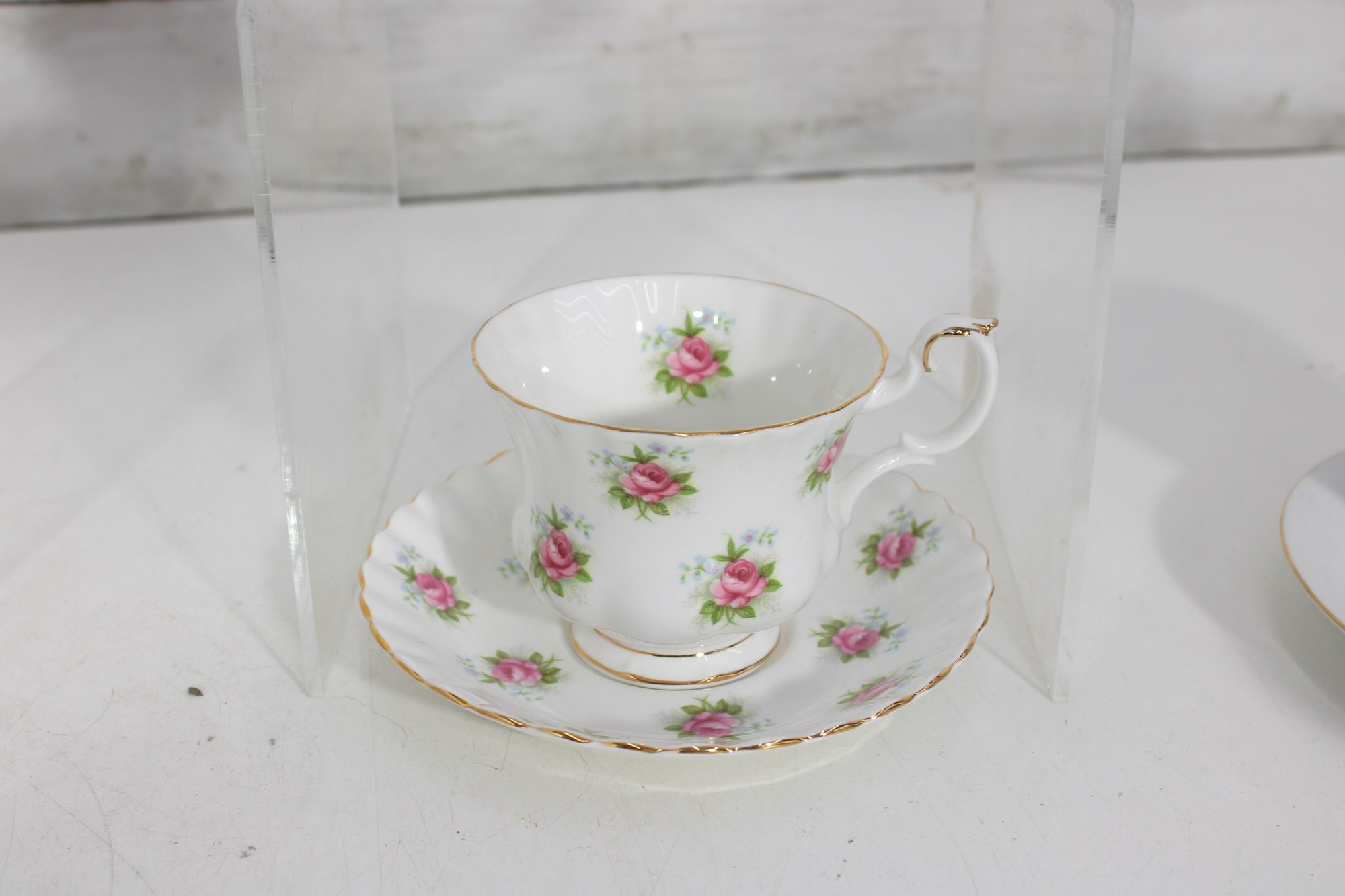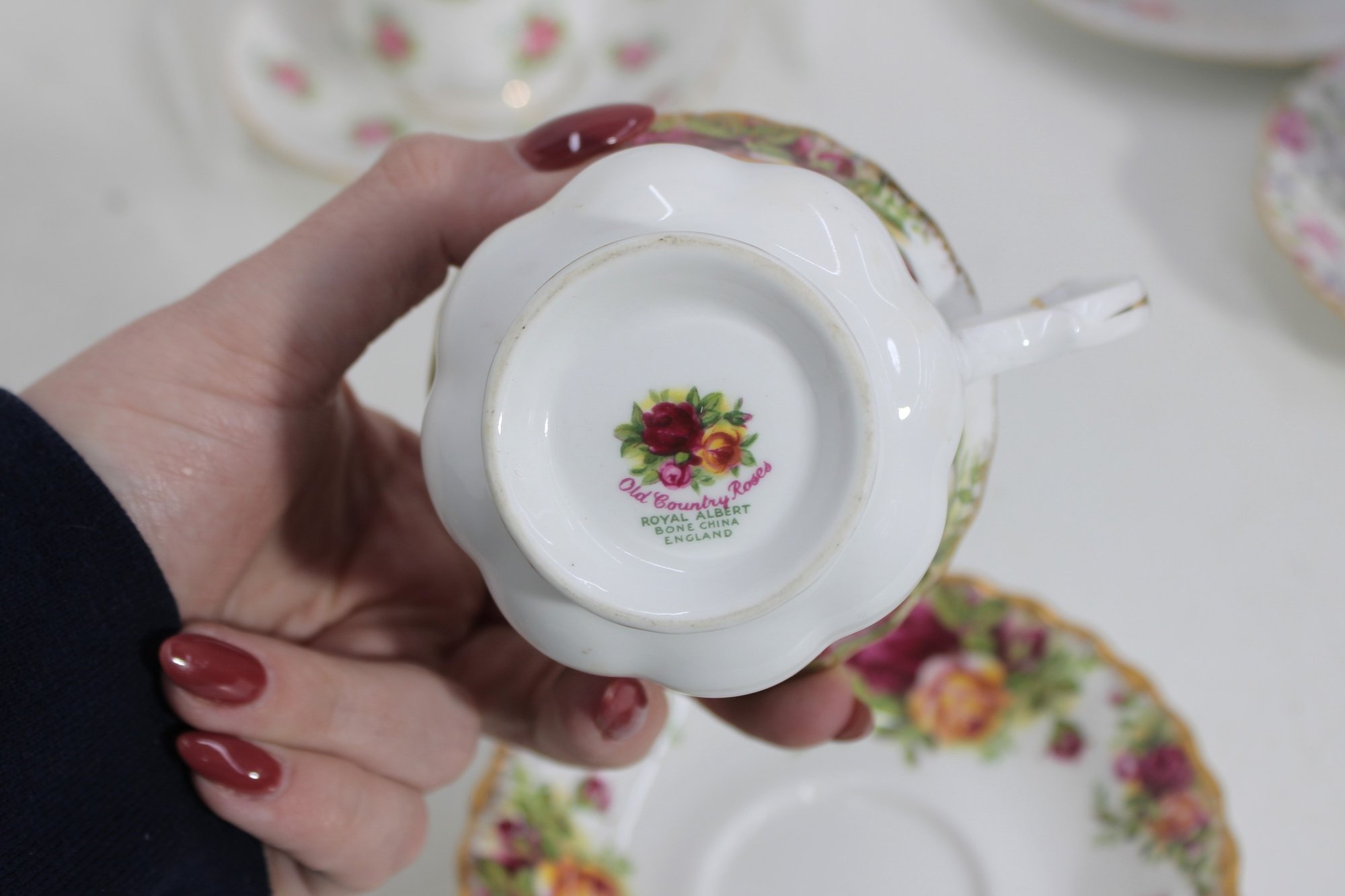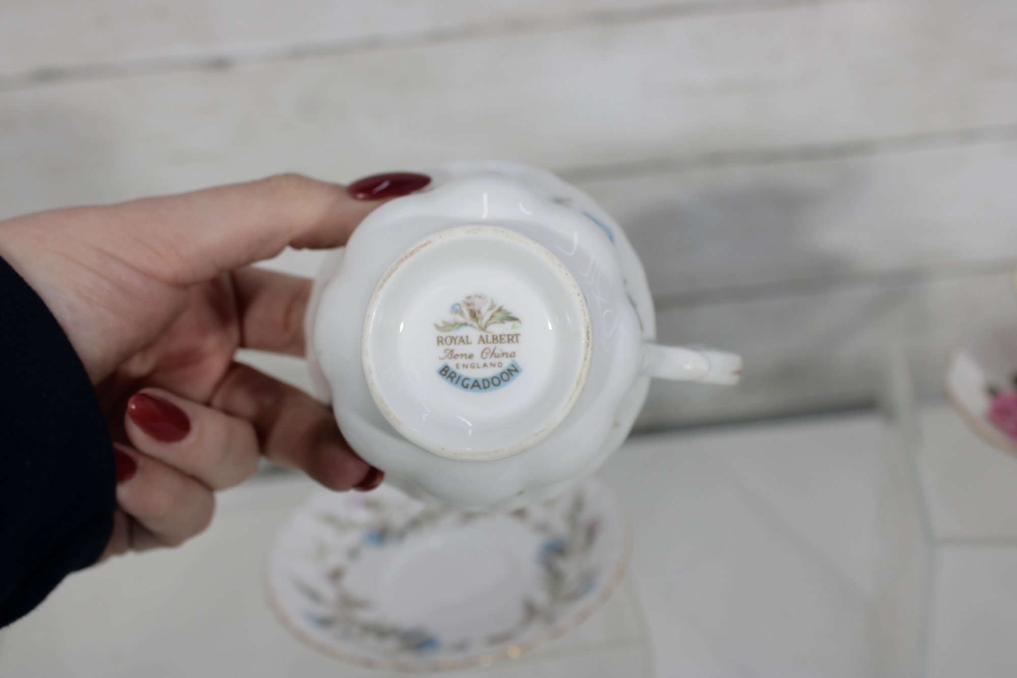 Charming mixed lot of vintage bone china teacups and saucers featuring beautiful floral patterns and classic English styling. This collection includes multiple makers such as Royal Albert, Paragon, Royal Vale, and other fine bone china brands (see underside marks shown in photos).