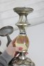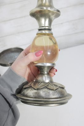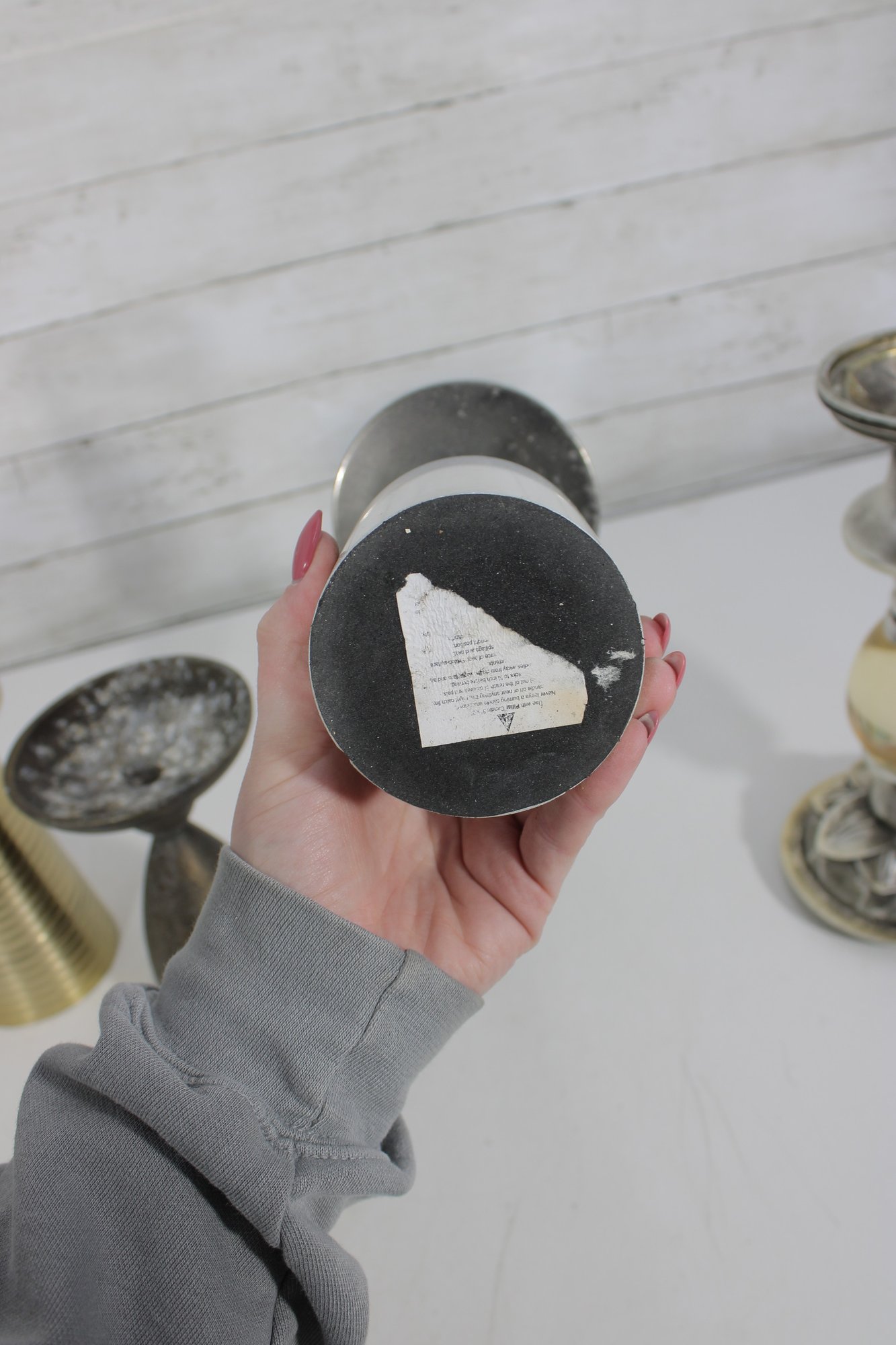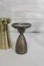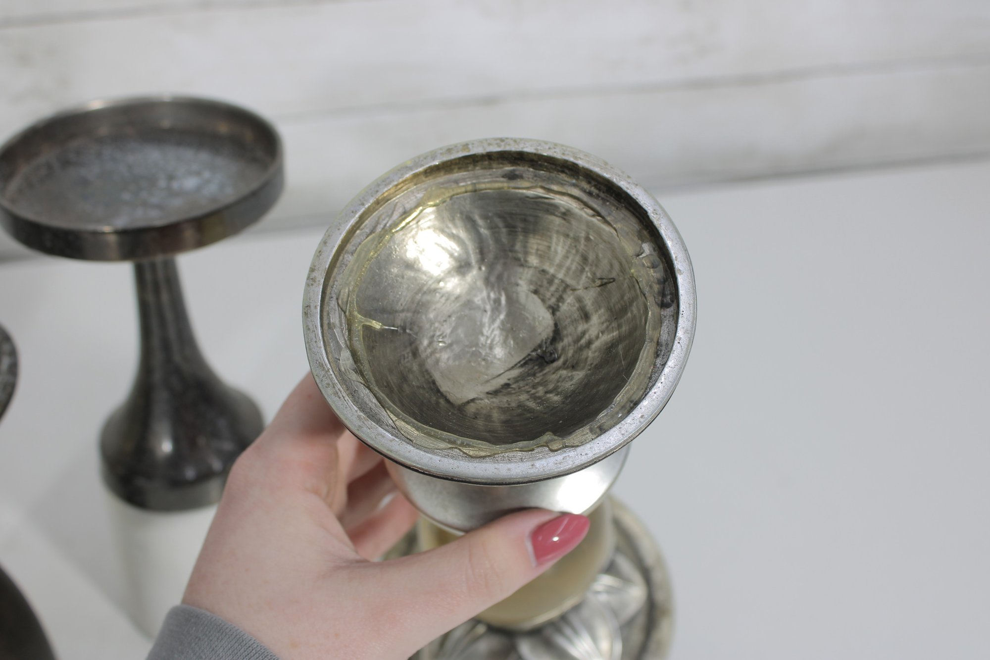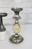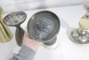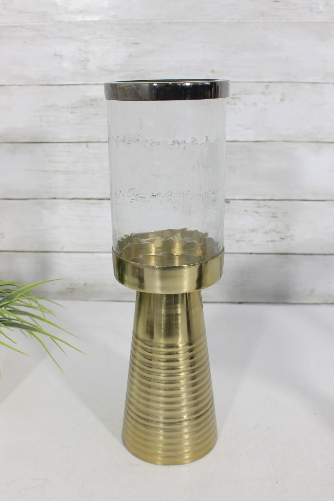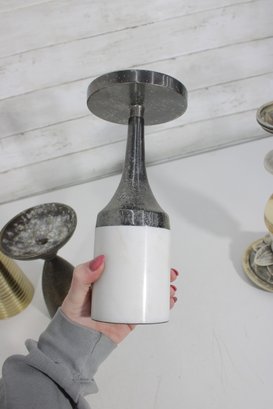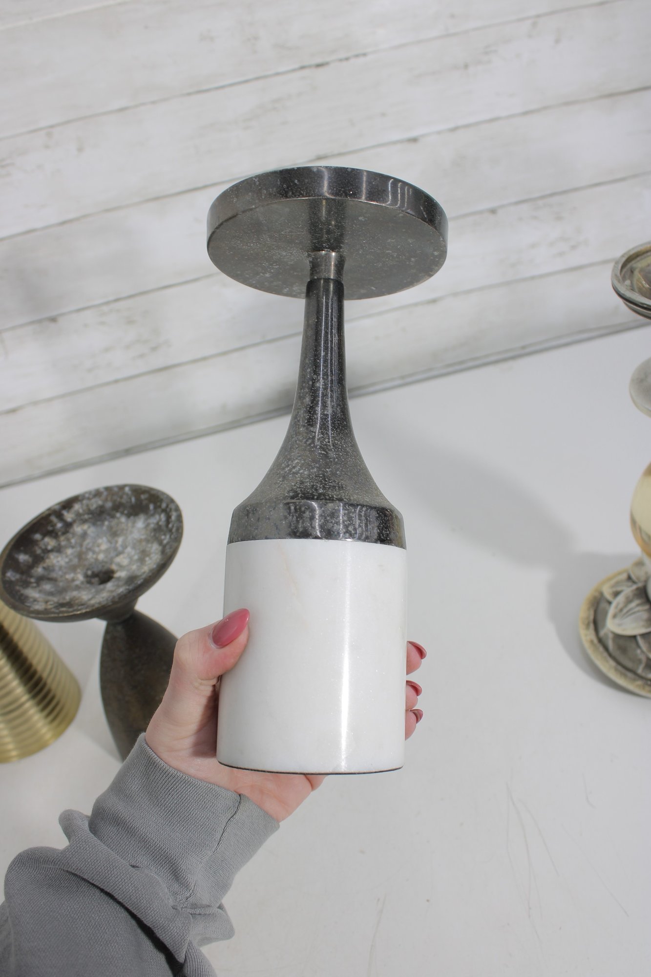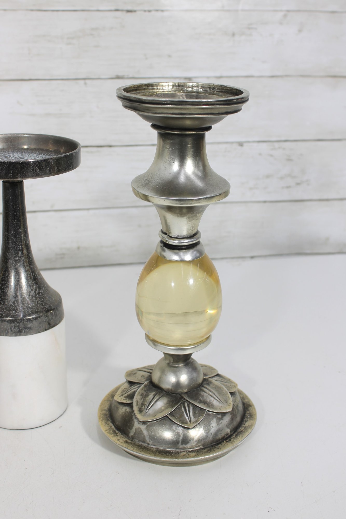 Stylish assortment of four candle holders featuring a mix of modern and vintage-inspired designs in metal and glass. This unique group offers a variety of shapes, finishes, and textures—perfect for creating an eye-catching display.