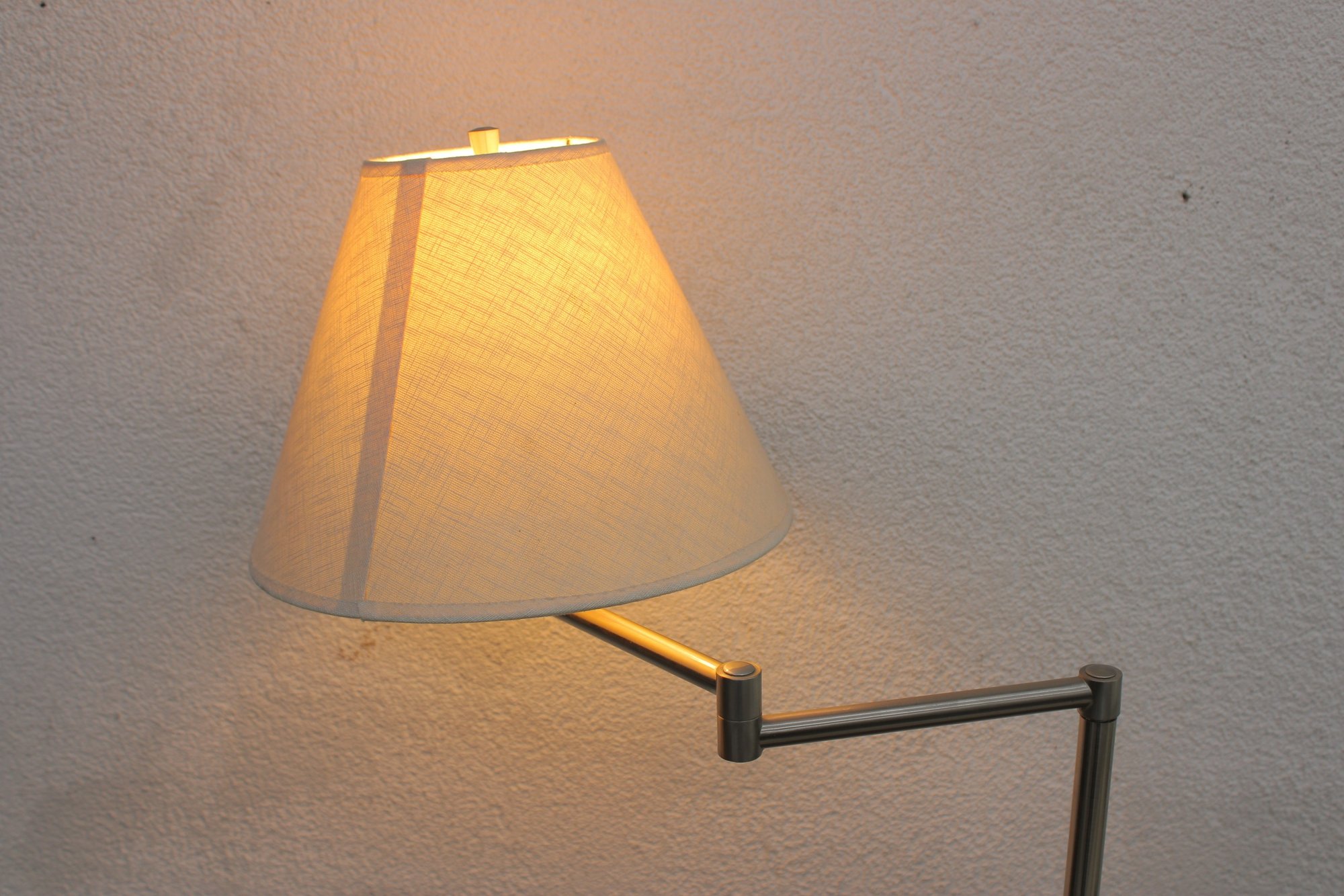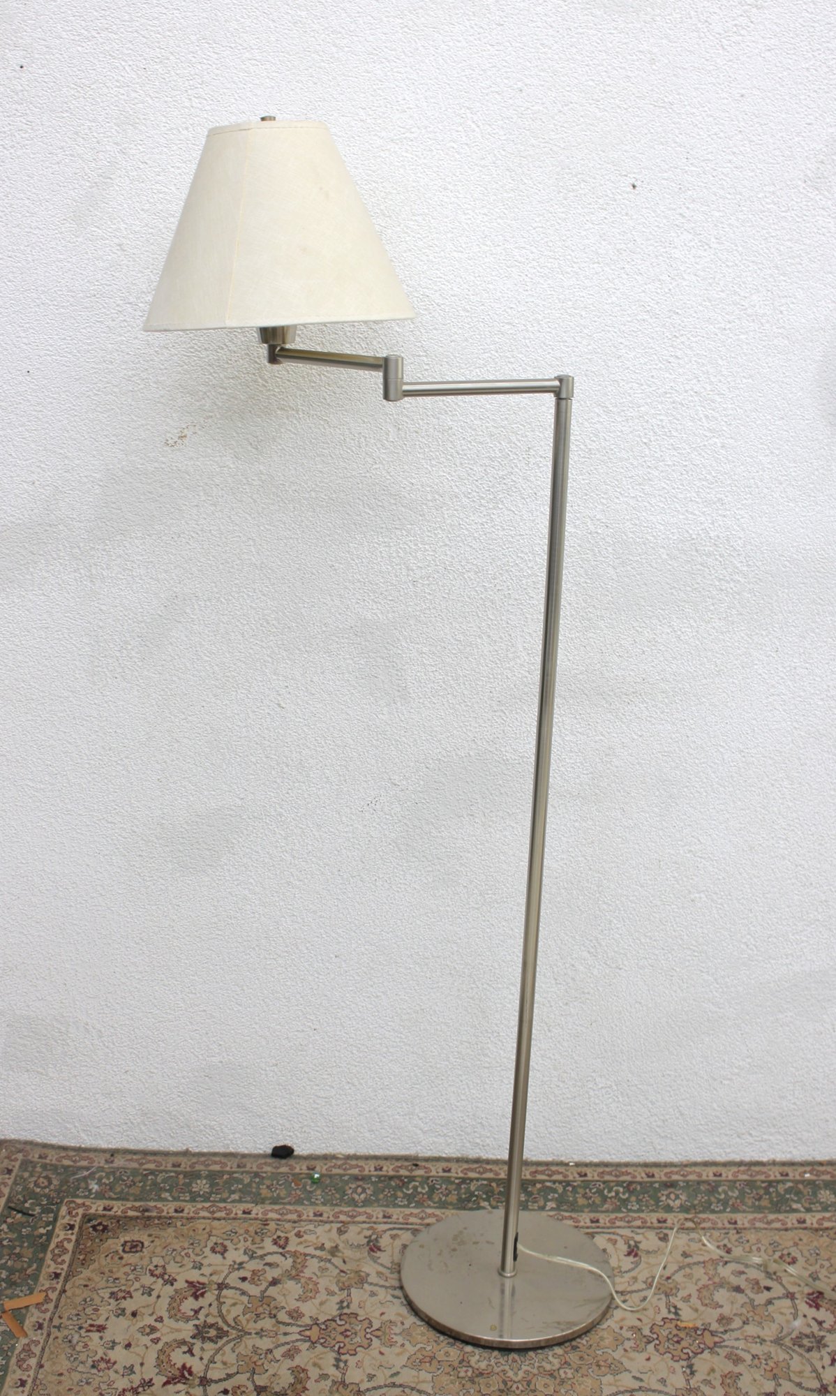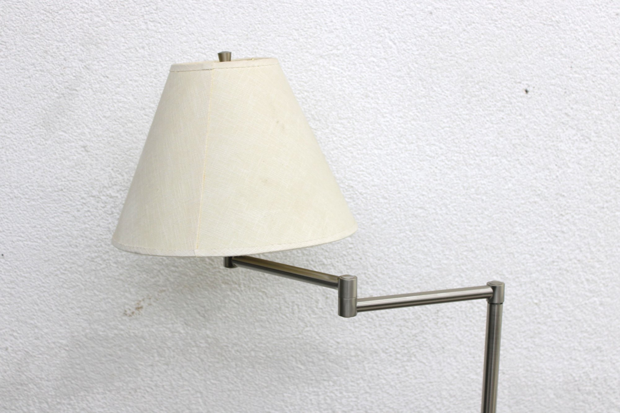 Sleek modern floor lamp featuring a minimalist brushed metal finish and an adjustable arm design, perfect for reading nooks, living rooms, or office spaces. The clean, contemporary silhouette blends easily with modern, industrial, or mid-century inspired décor while providing functional focused lighting.