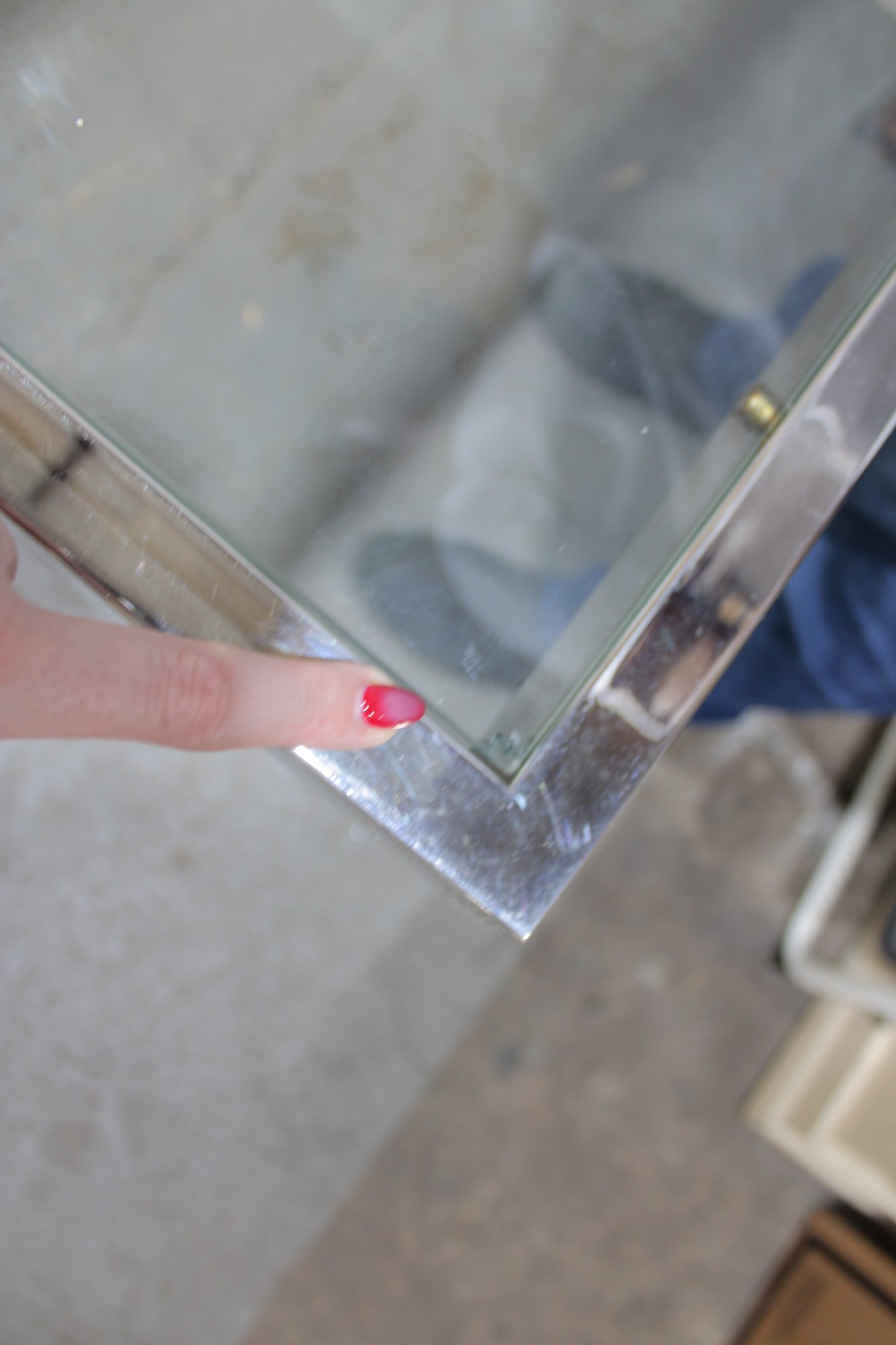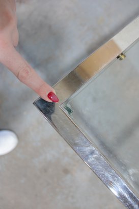 Good condition with signs of use. The glass may show light scratches or surface wear, and the chrome frame may have minor scuffs or slight discoloration. Structurally solid and functional, extension works as intended.