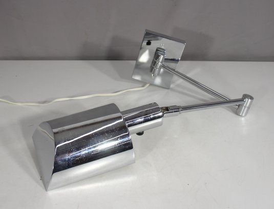 Sleek and functional, this single chrome swing-arm wall lamp brings a stylish modern touch to your space while offering directional lighting. The rectangular shade and geometric lines give it a clean, contemporary look, while the articulating arm allows for adjustable reach and positioning.