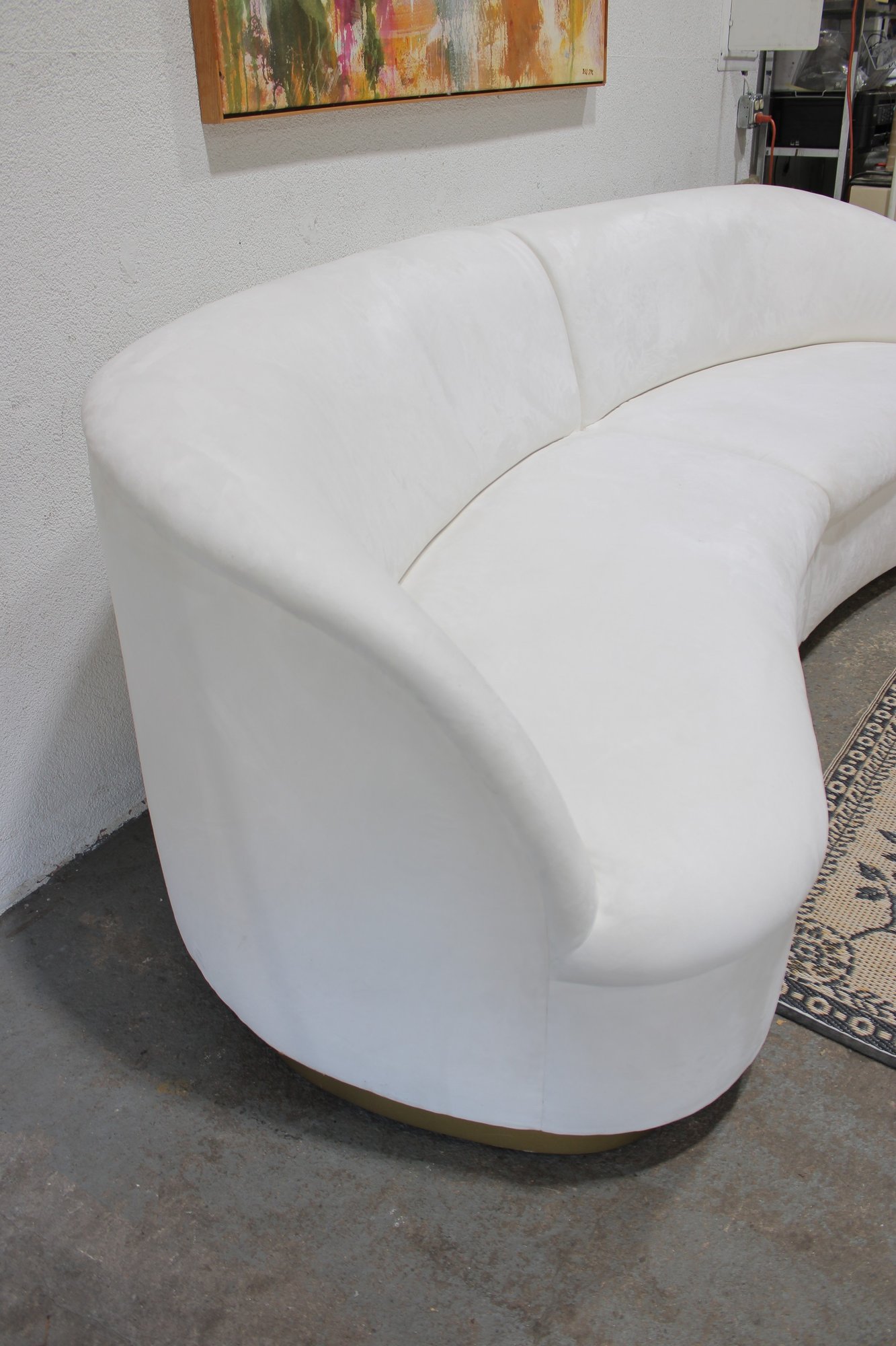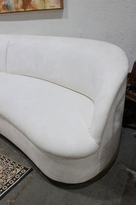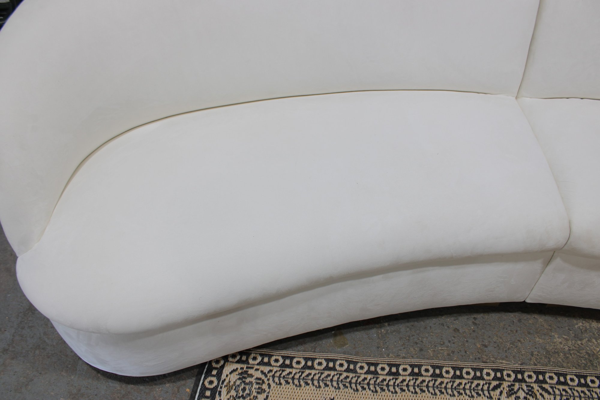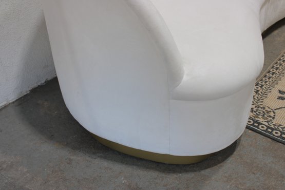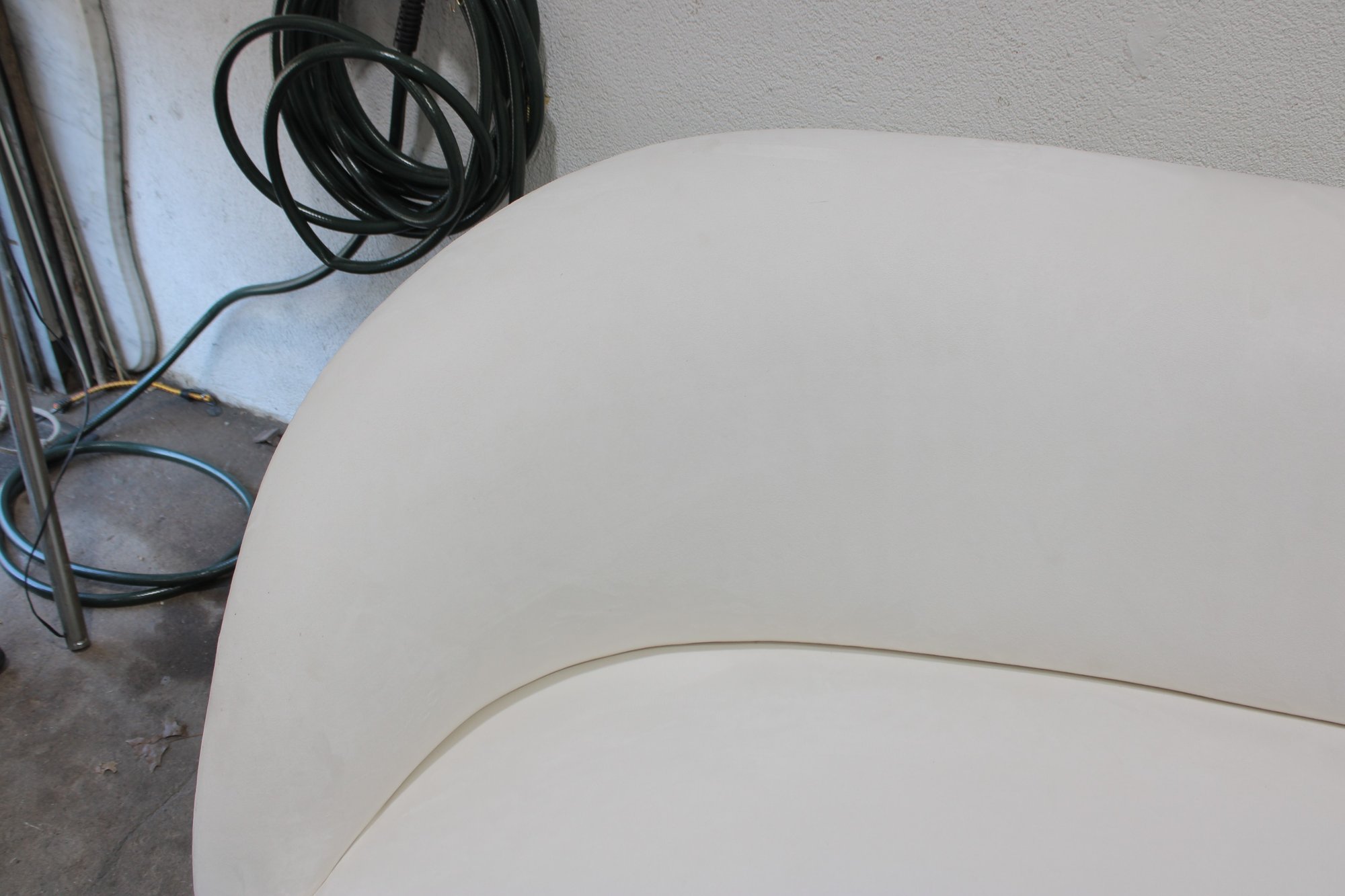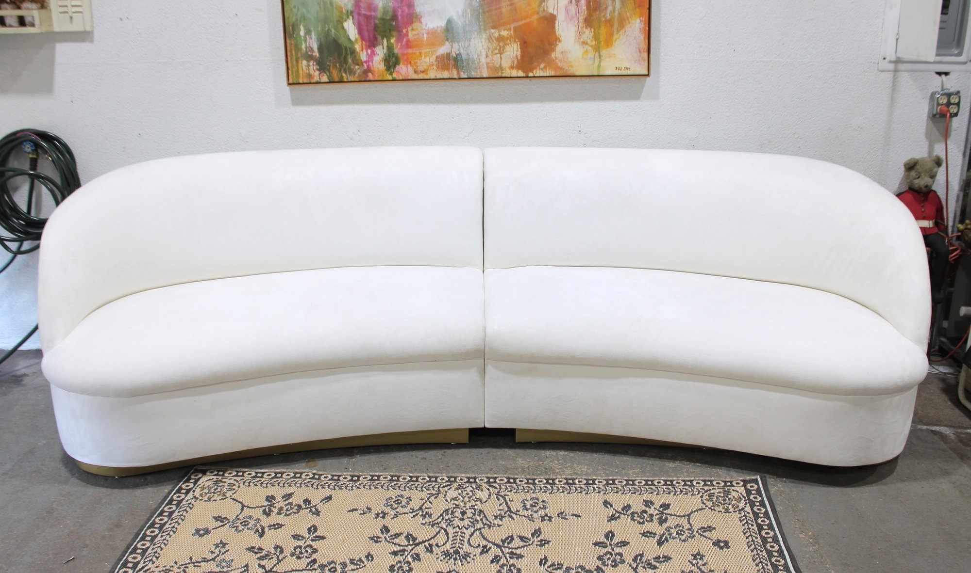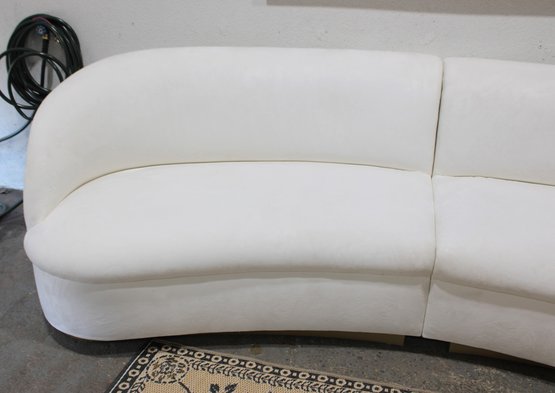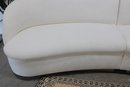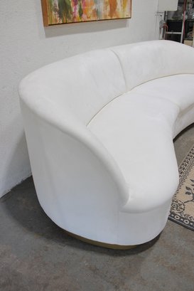 this stunning modern curved loveseat, featuring a sleek sculptural silhouette and elegant white upholstery. Designed with smooth, flowing lines, this piece brings a sophisticated, contemporary feel to any living space.