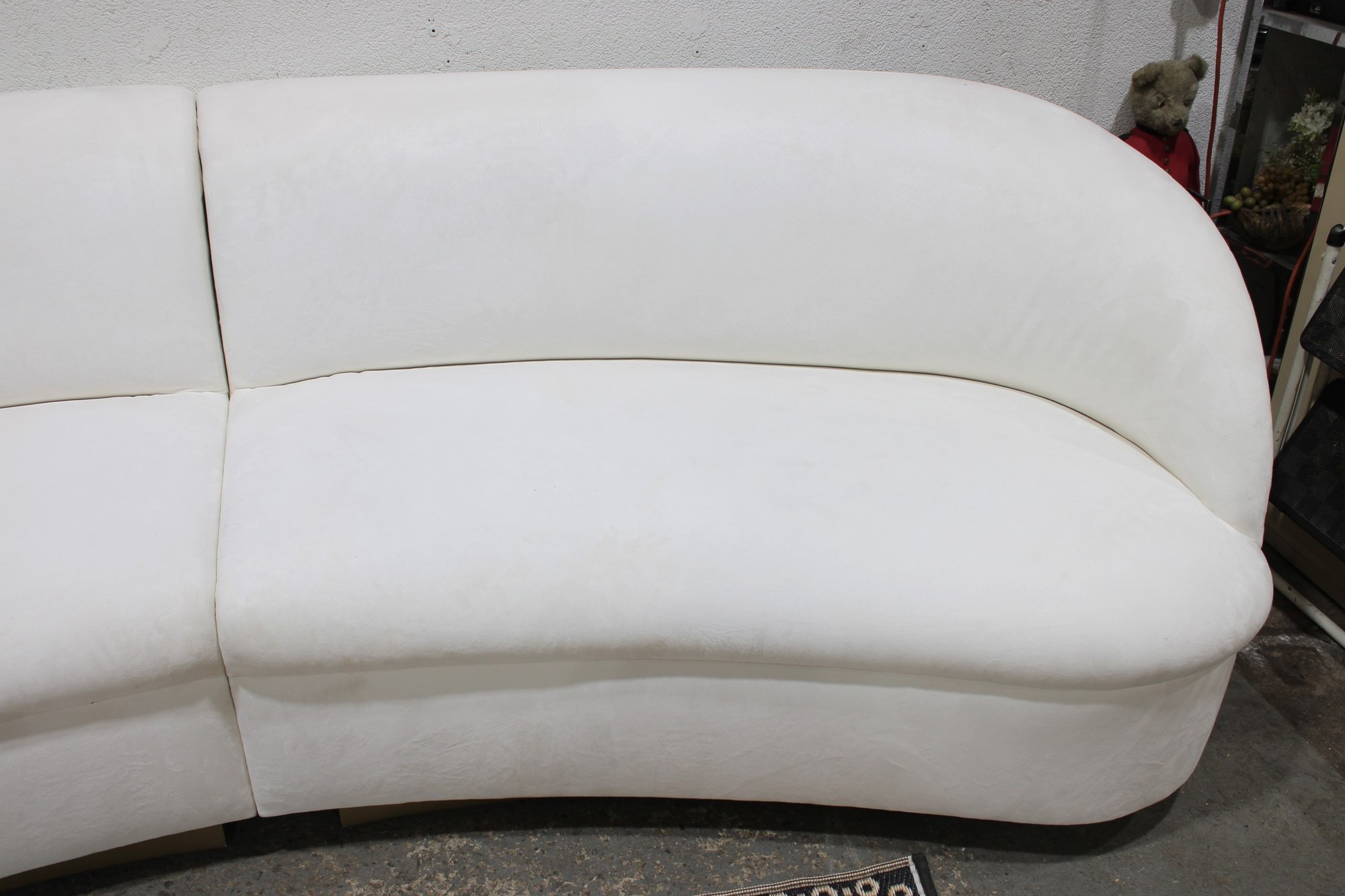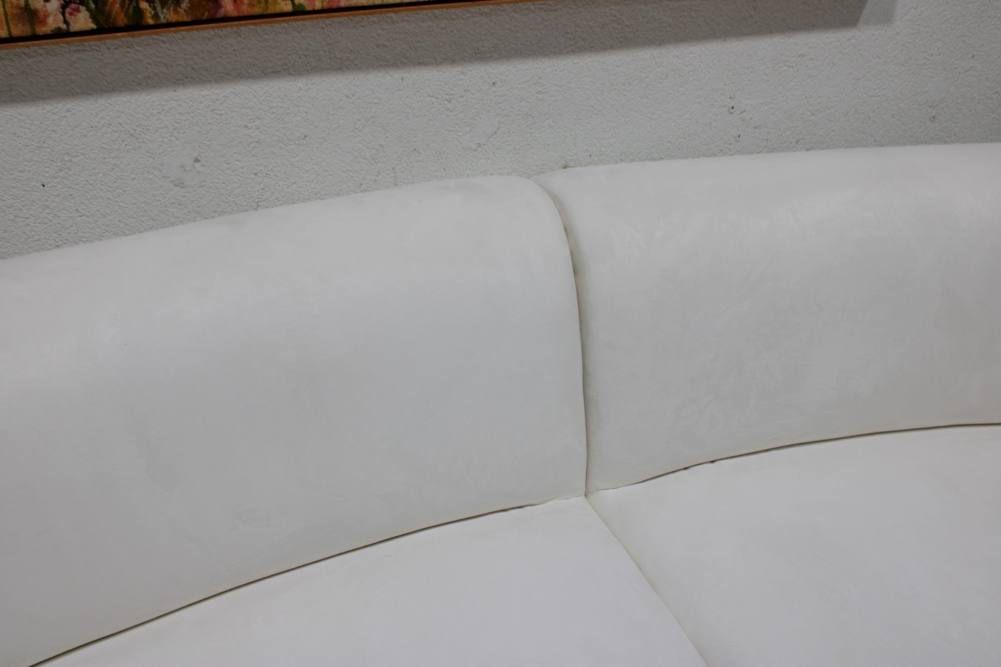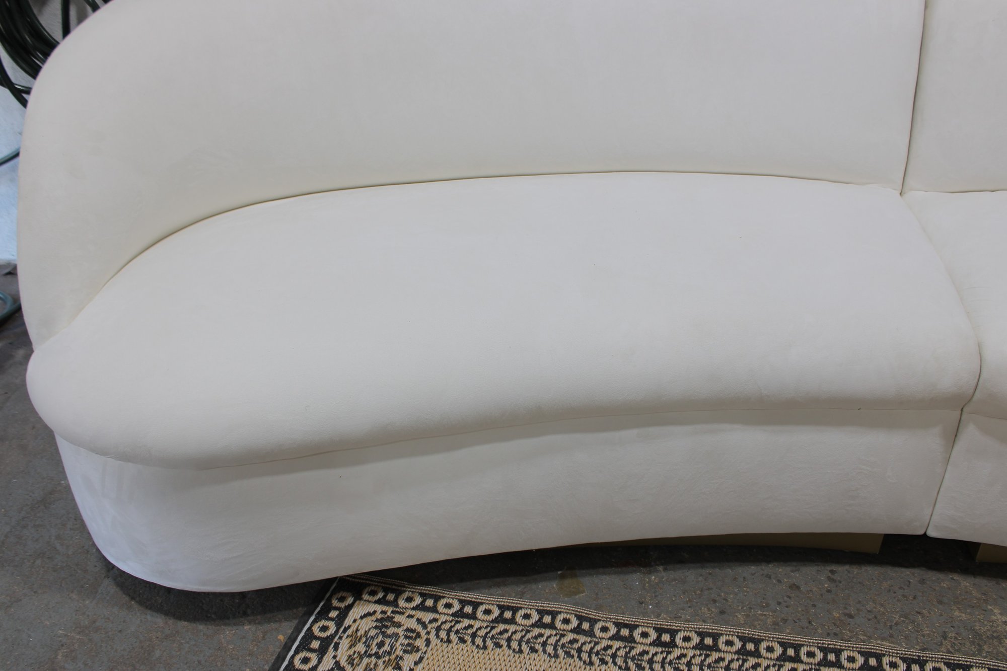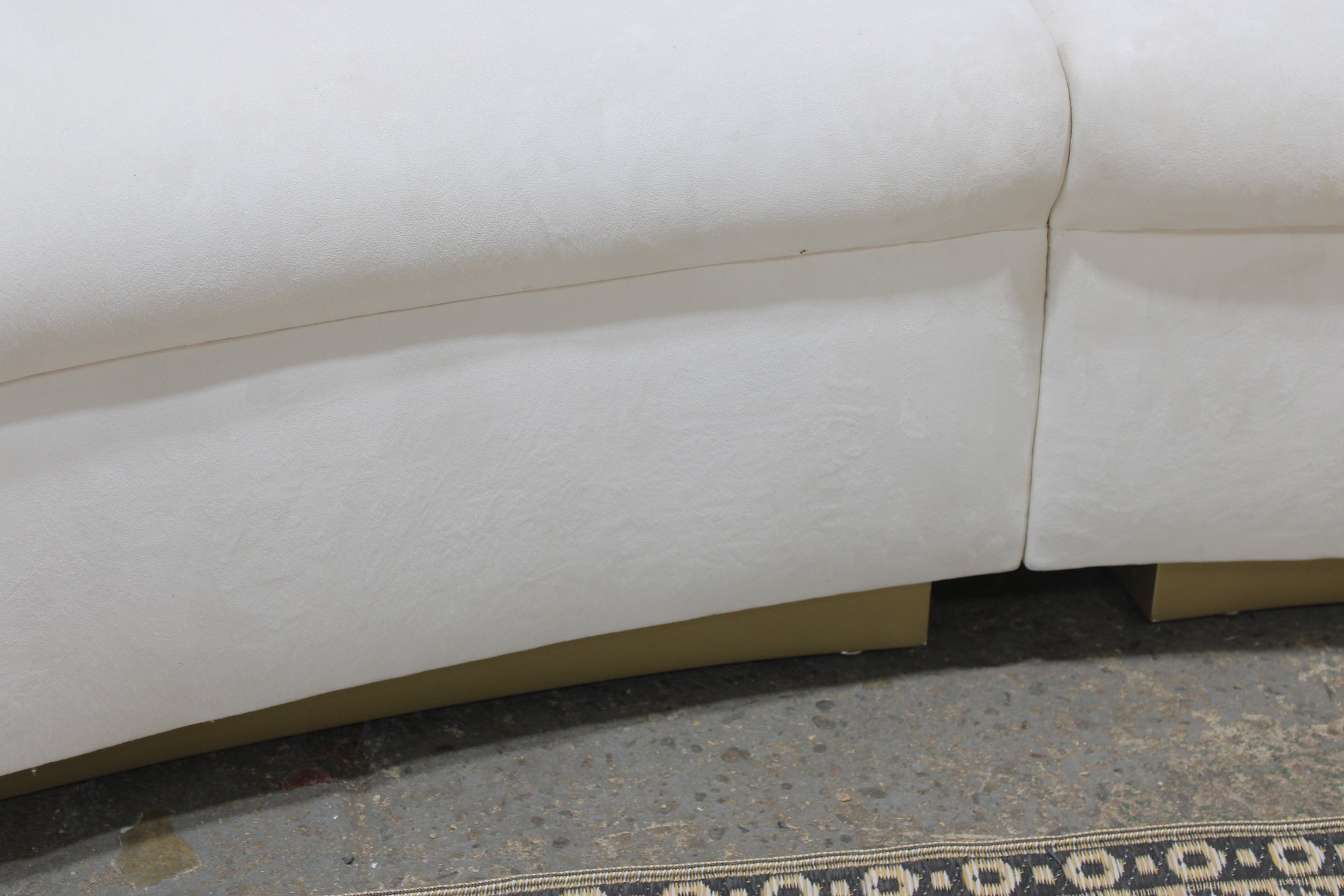 this stunning modern curved loveseat, featuring a sleek sculptural silhouette and elegant white upholstery. Designed with smooth, flowing lines, this piece brings a sophisticated, contemporary feel to any living space.