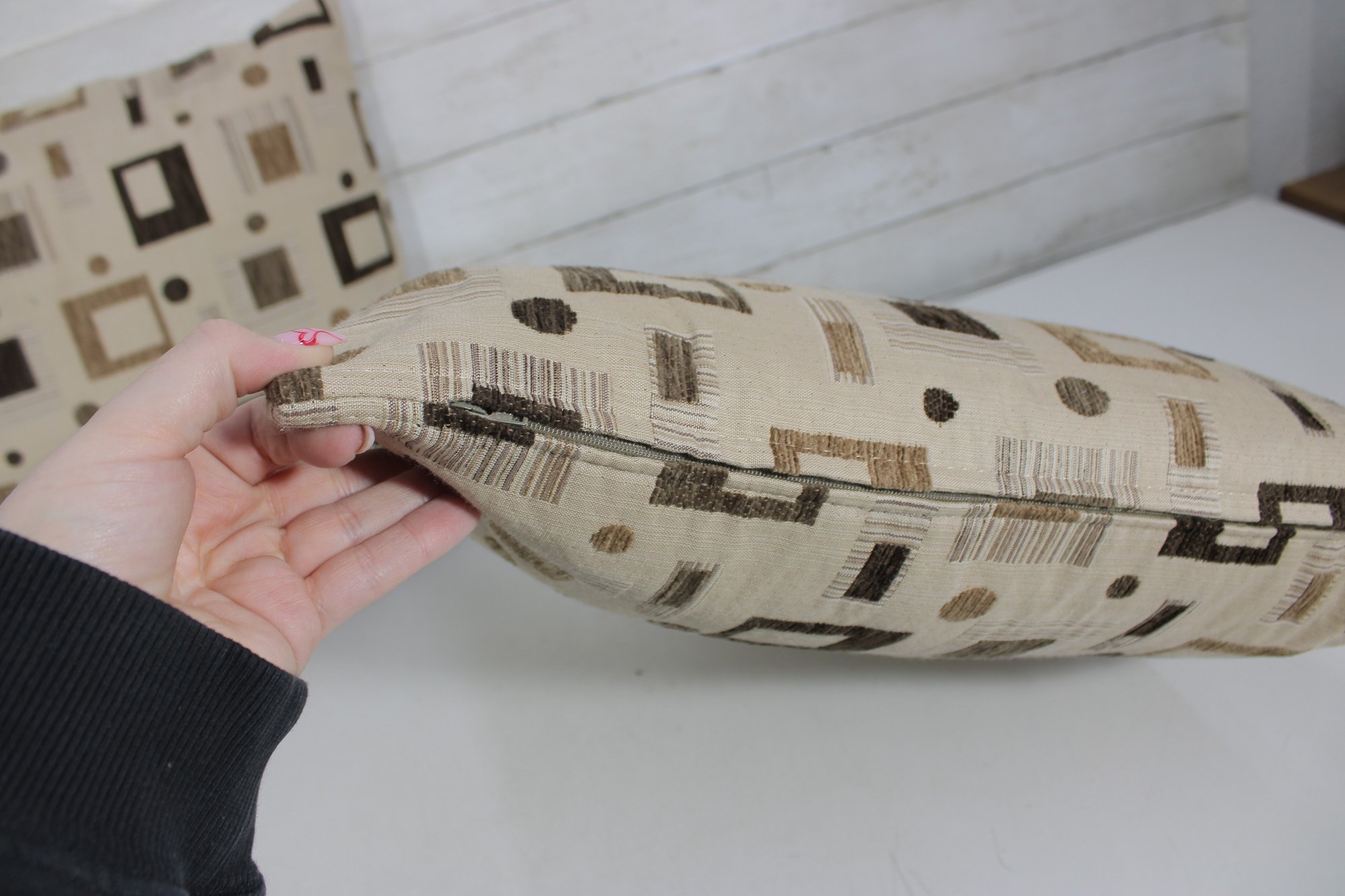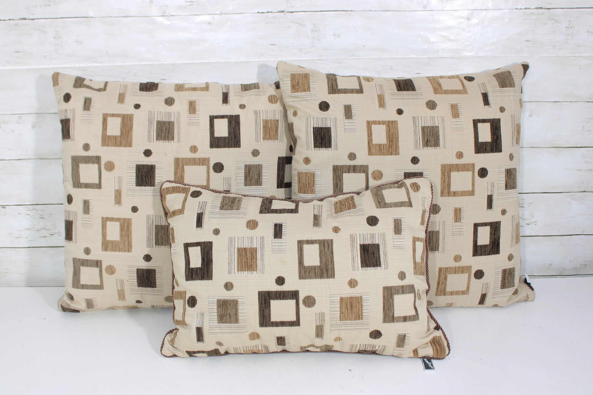 Modern Geometric Throw Pillows Set Of 3 Neutral Tones 18 X 18" & 12 X 17"
