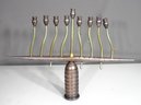 Celebrate Hanukkah with bold, artistic flair using this striking modern menorah featuring an industrial-style design inspired by a bullet and artillery shell motif. The piece merges tradition with contemporary sculpture, combining smooth metallic finishes, curved arms, and droplet accents for a dramatic, thought-provoking aesthetic.