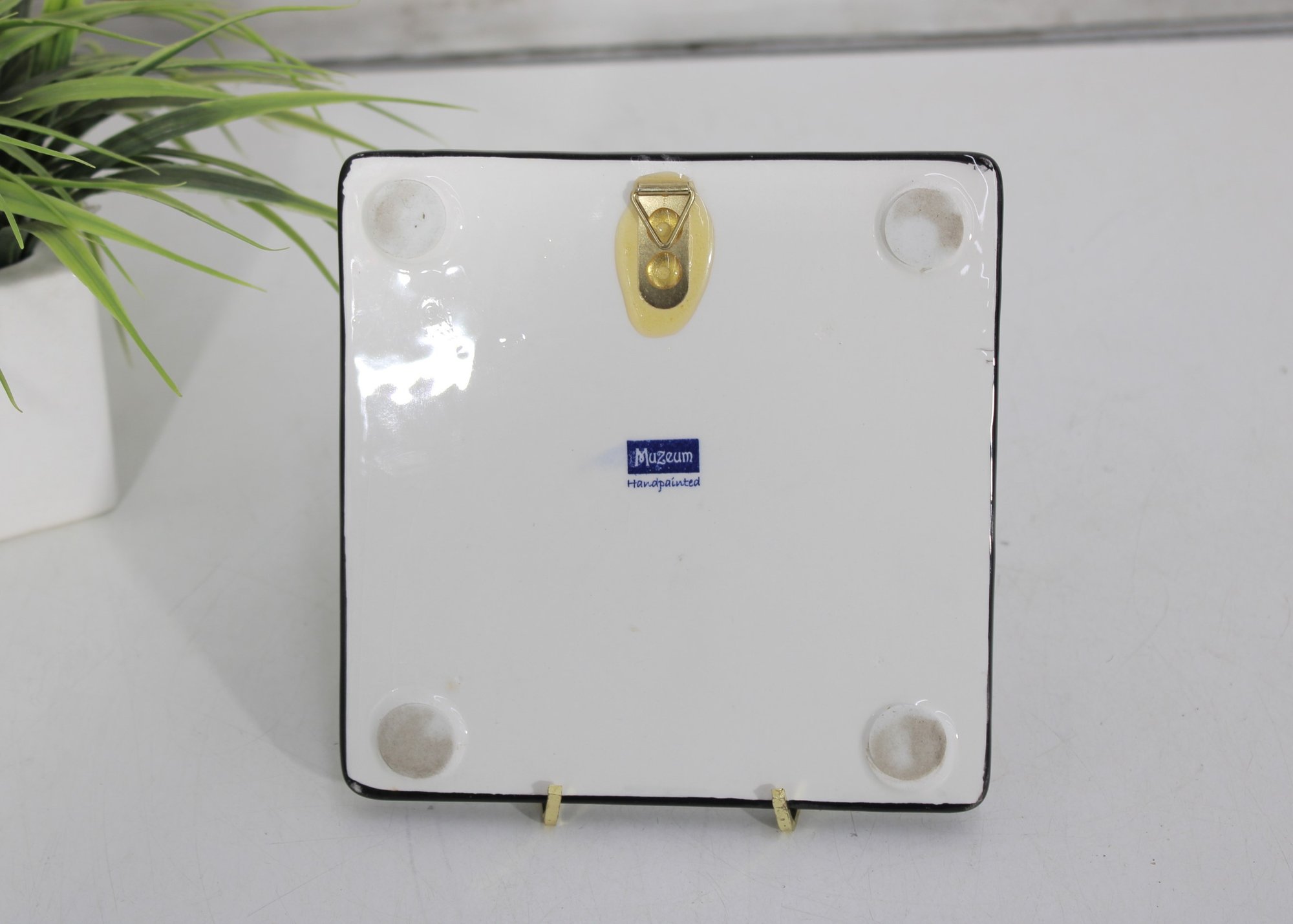 Framed with a black border, this striking decorative tile makes a wonderful wall accent for contemporary, eclectic, or mid-century inspired interiors.