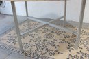 The minimalist metal base includes cross-bracing for added stability while maintaining a light, airy profile. Its generous 54" diameter comfortably accommodates multiple guests, making it perfect for dining rooms, kitchens, or open-concept spaces.