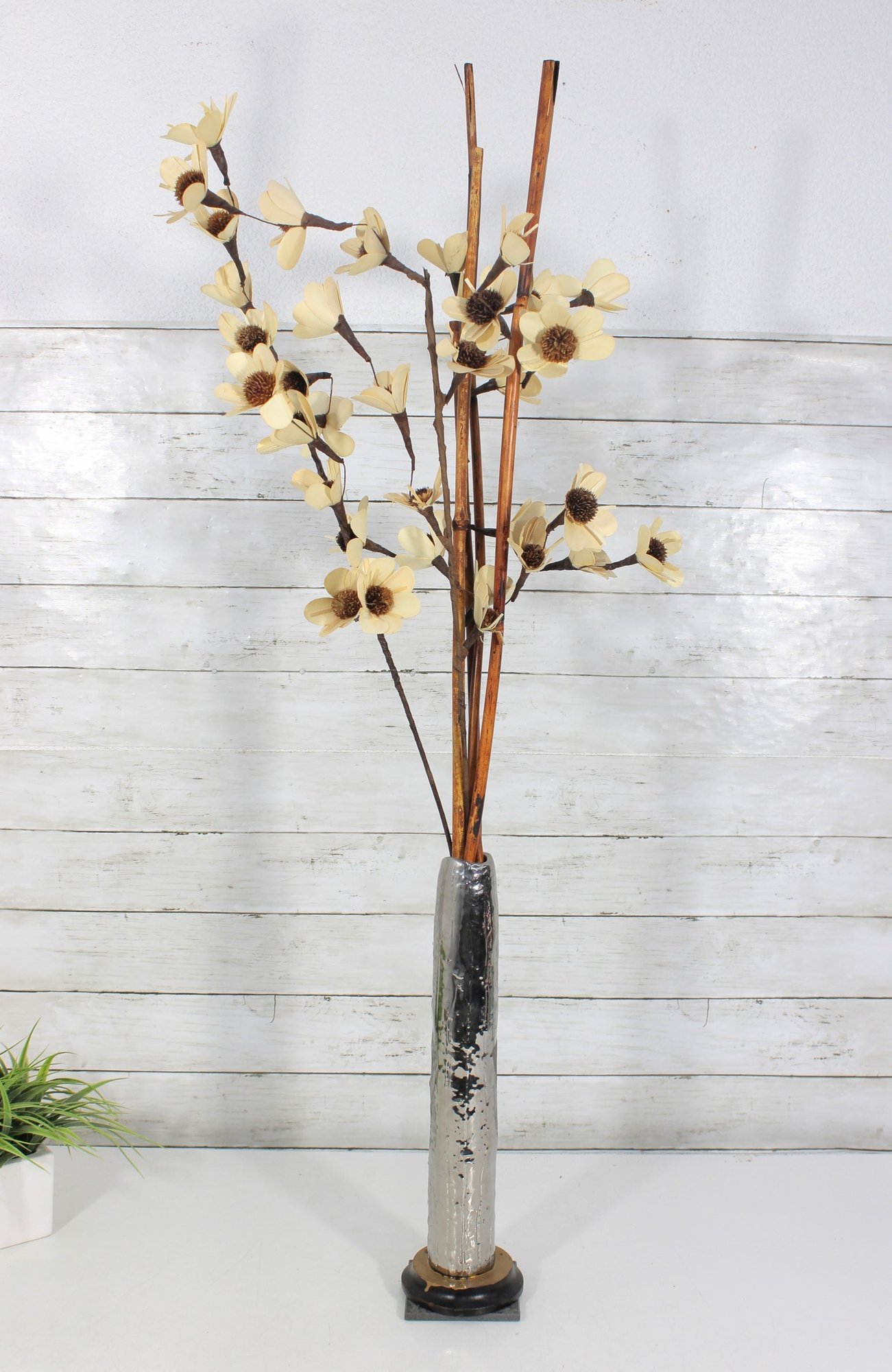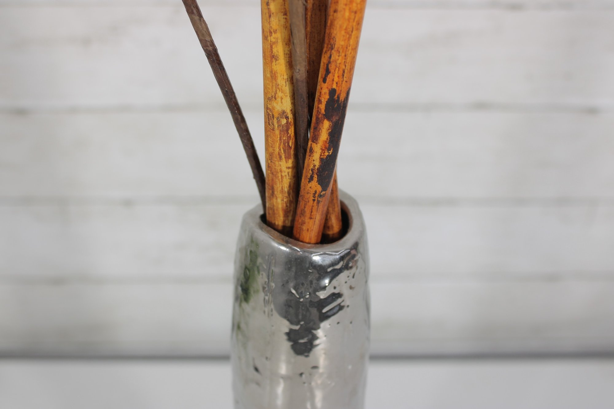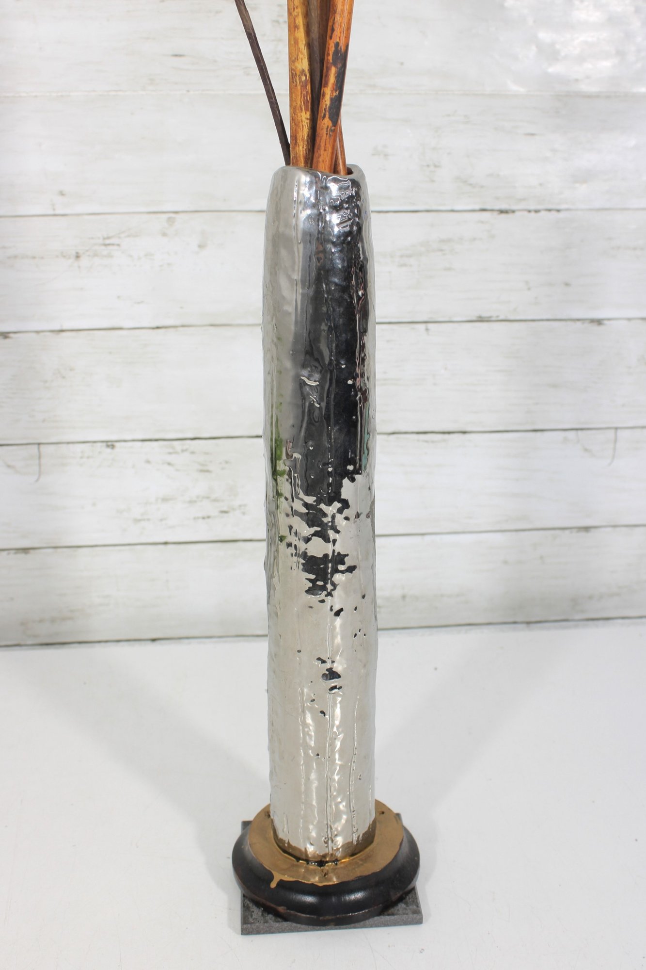Modern Silver Metal Floor Vase Tall Decorative Accent 15.5" H